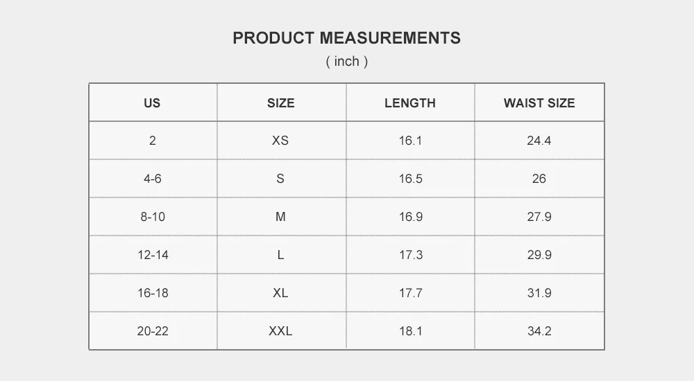 (S size refers to US size 2-4, M size refers to US size 6-8, L size refers to US size 10-12, XL size refers to US size 14-16)