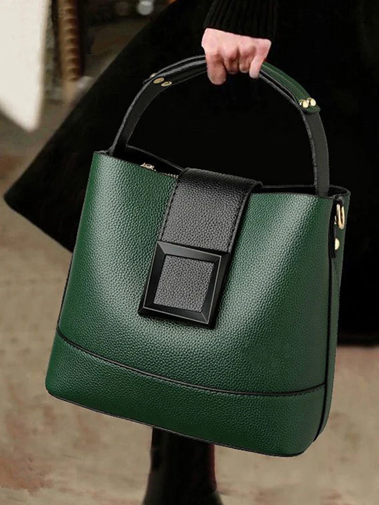 New York’s Fashion 1 Solid Color Simple Pu Decoration Elegant Hand-Held Bucket Bag Buckle Decoration Can Be Replaced with a Crossbody Bag Suitable