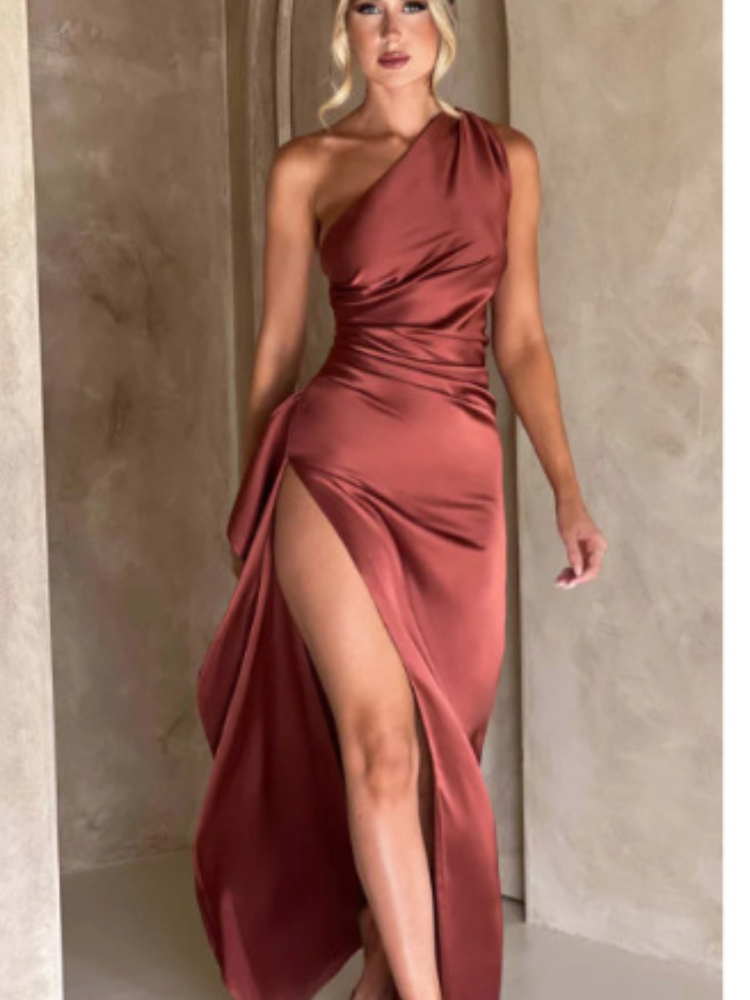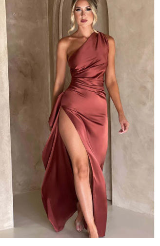 New York’s Fashion 2024 Summer Fashion Women’s Banquet Elegant Dress Sexy Strap Irregular Diagonal Shoulder Satin Party Style Long DressThere are no reviews yet