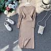 New York’s Fashion 2025 Autumn Winter Women Knitted Dress Luxury V-neck Slim Waist Shining Bodycon Dress Office Lady Sweater Vestidos