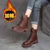 New York’s Fashion 2025 Genuine Leather Women’s Boots Velvet Autumn Winter Thick Heel Cowhide Shoes Handmade Retro Platform Booties