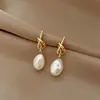 New York’s Fashion 2025 New French Elegant Gold Color Bean Spliced Flat Pearl Earrings for Korean Fashion Jewelry Party Women’s Sweet Accessories