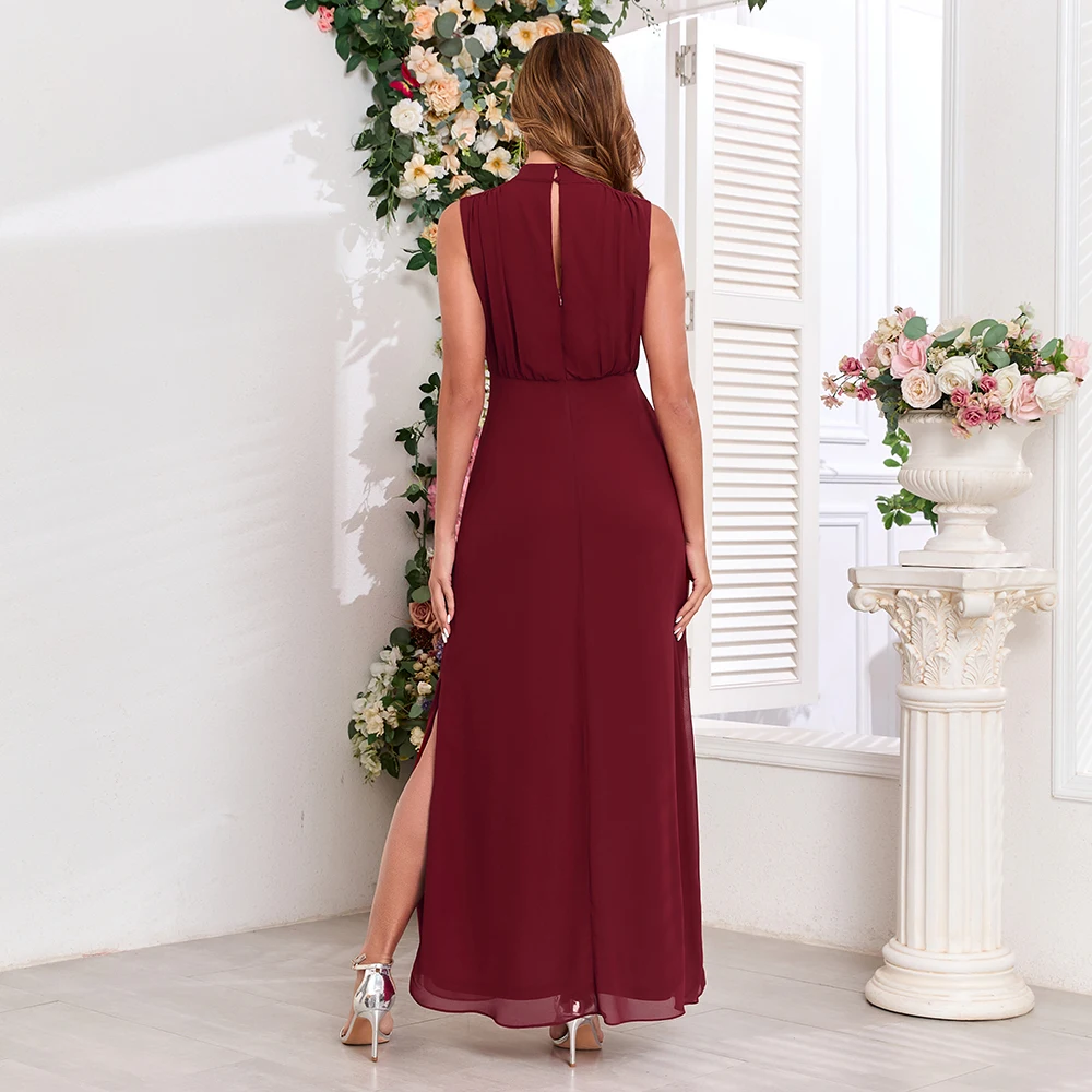 New York’s Fashion 2025 New Stand Collar Sleeveless Chiffon Party Dress Side Slit Casual Birthday Celebration Gown Women’s Fashion Eveningwear