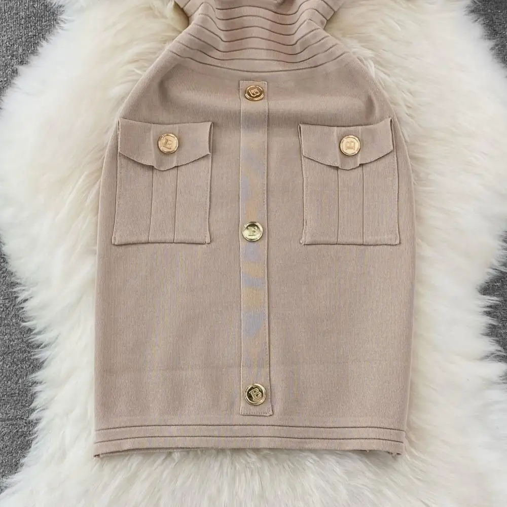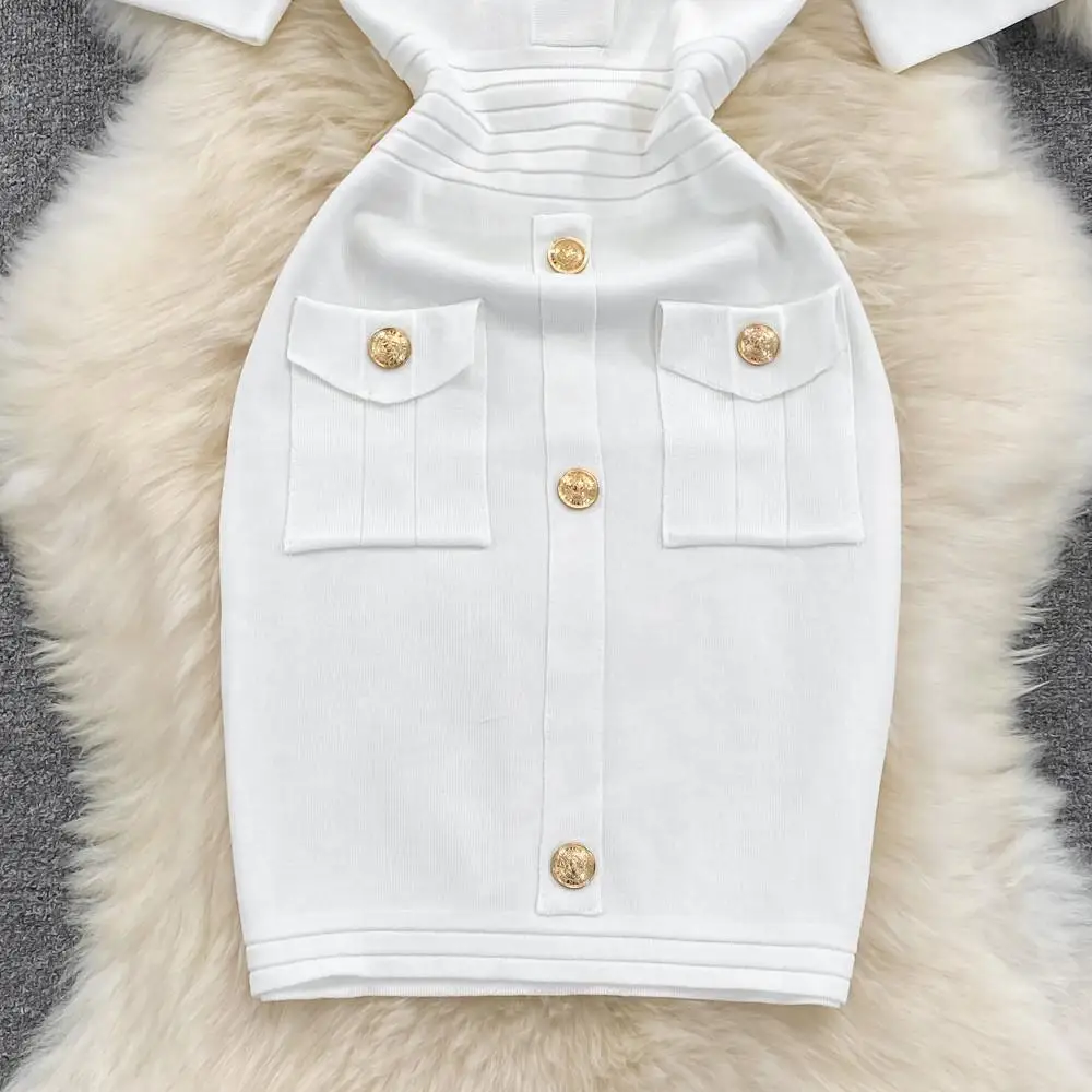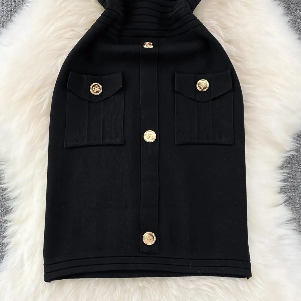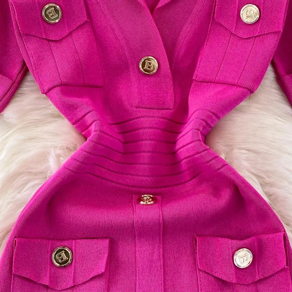 New York’s Fashion 2025 New Summer Buttons Vintage Knitted Women’s Dresses High Waist Solid V-neck Sheath Wrap Sexy Mini Dress Female