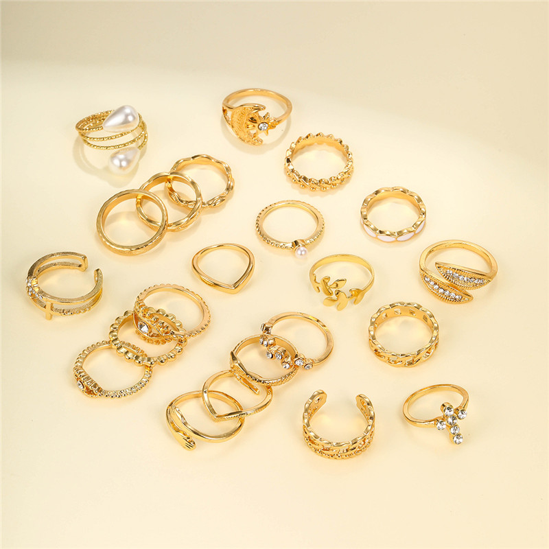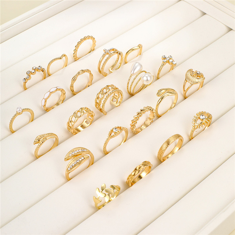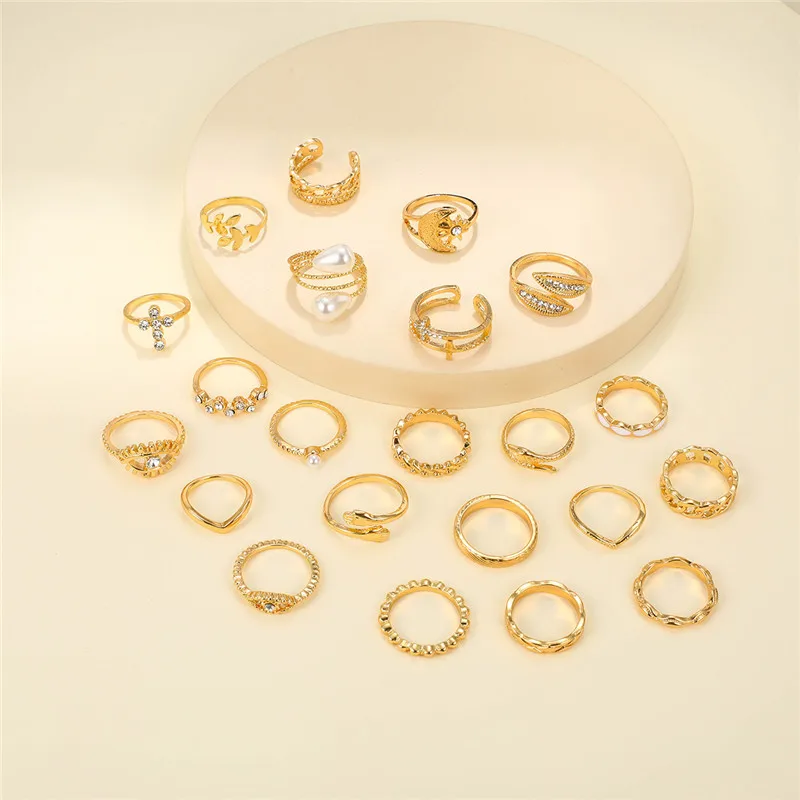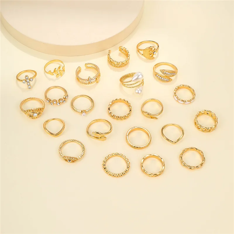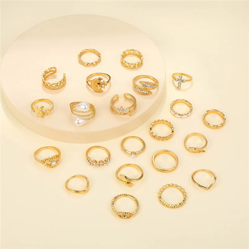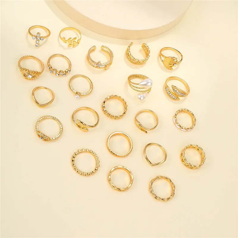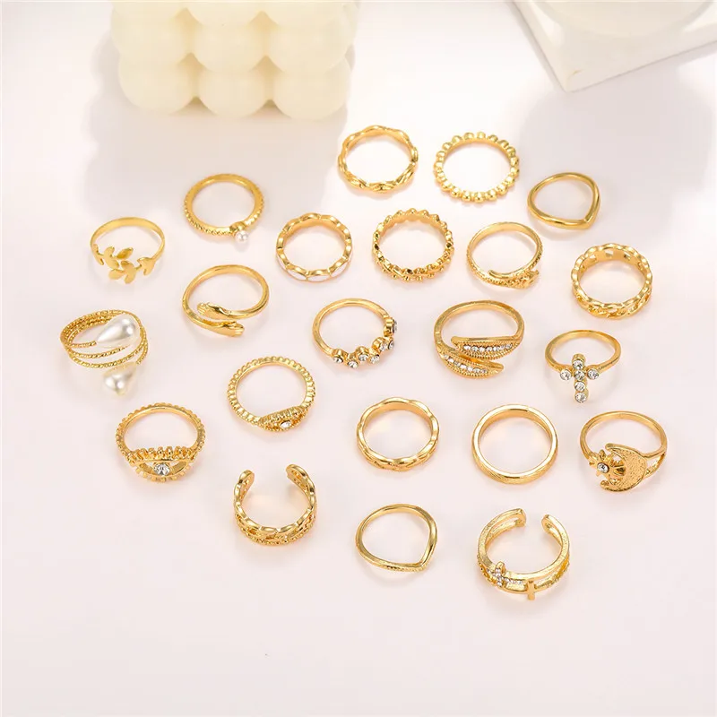 New York’s Fashion 23 Pcs Vintage Gold Color Rings Set for Women Boho Minimalist Heart Pearl Zircon Twist Finger Ring 2025 New Simple Jewelry Gifts