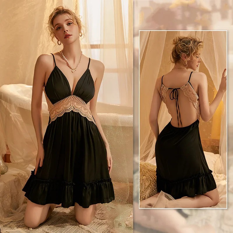 New York’s Fashion 2PCS Female Pajamas Set Satin Home Pyjamamas Lace Robe Sleep Suit V-Neck Wedding Nightwear Wear Robe and Nightgown set