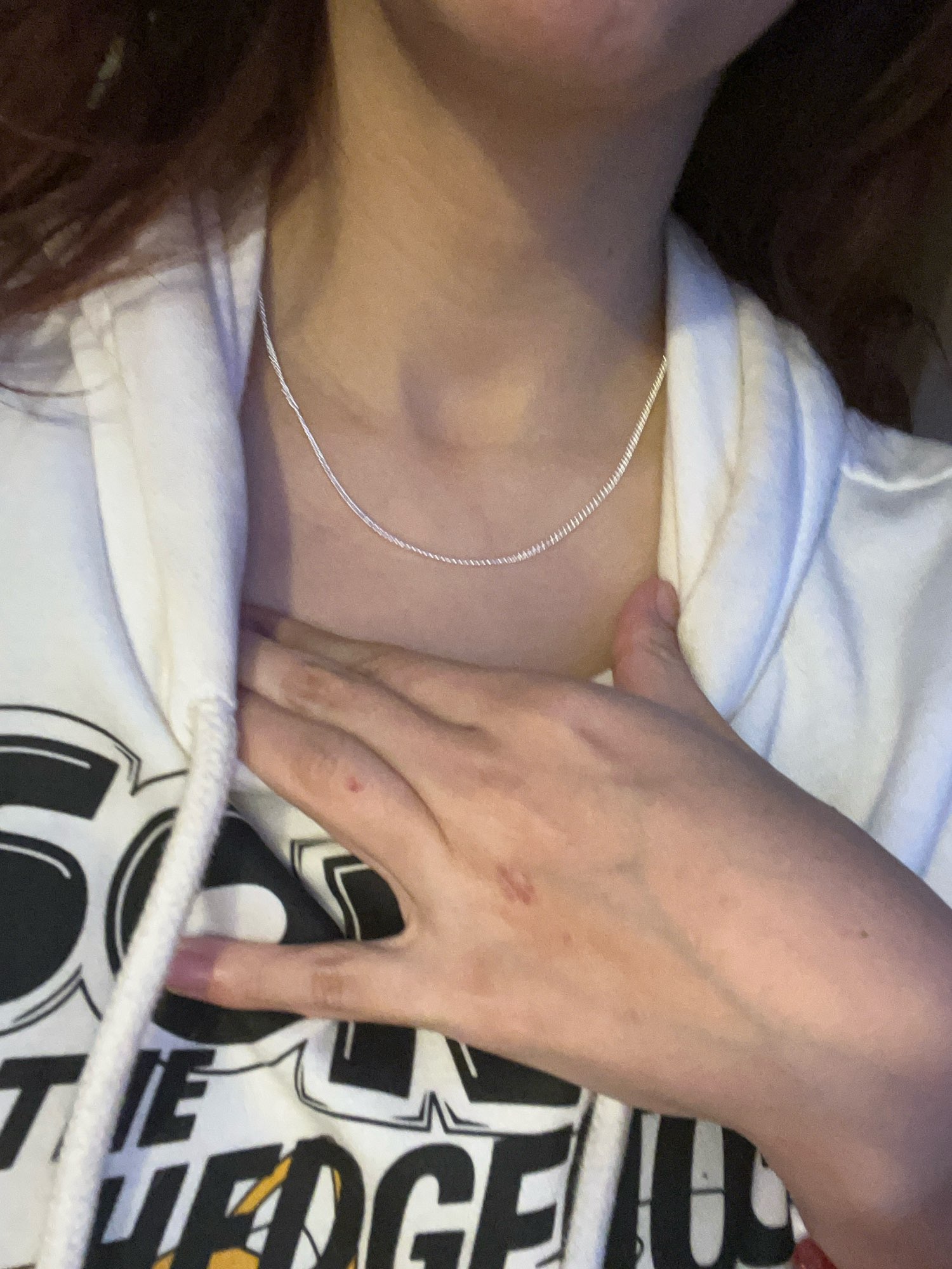 Se ve bastante bien, que si es como de plata y resistente, es algo más fina de lo que pensé pero me va mejor, es algo cortita pero se ve perfectamente