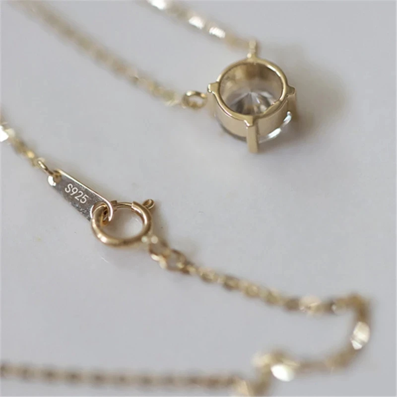 New York’s Fashion 925 Sterling Silver French Simple Crystal Pendant Clavicle Chain Necklace Women Light Luxury Party 14k Gold Jewelry