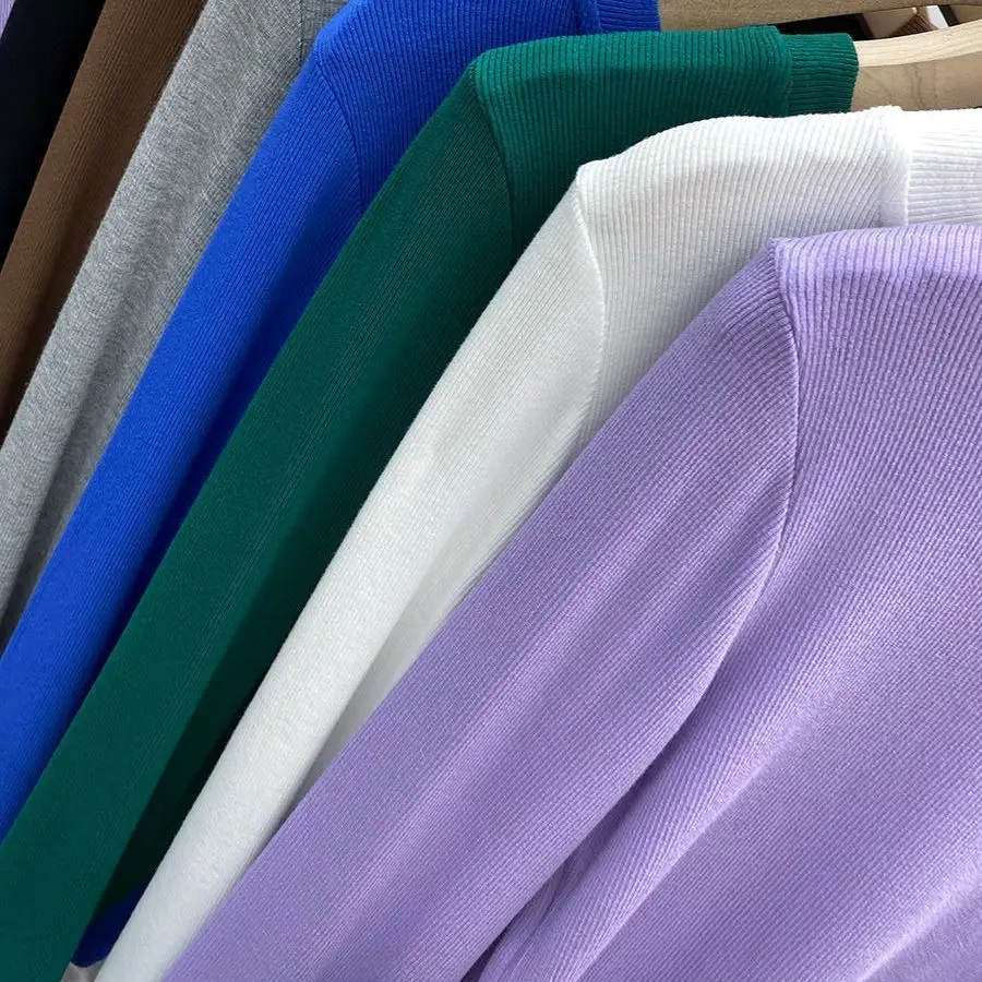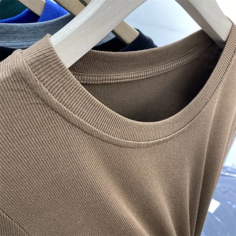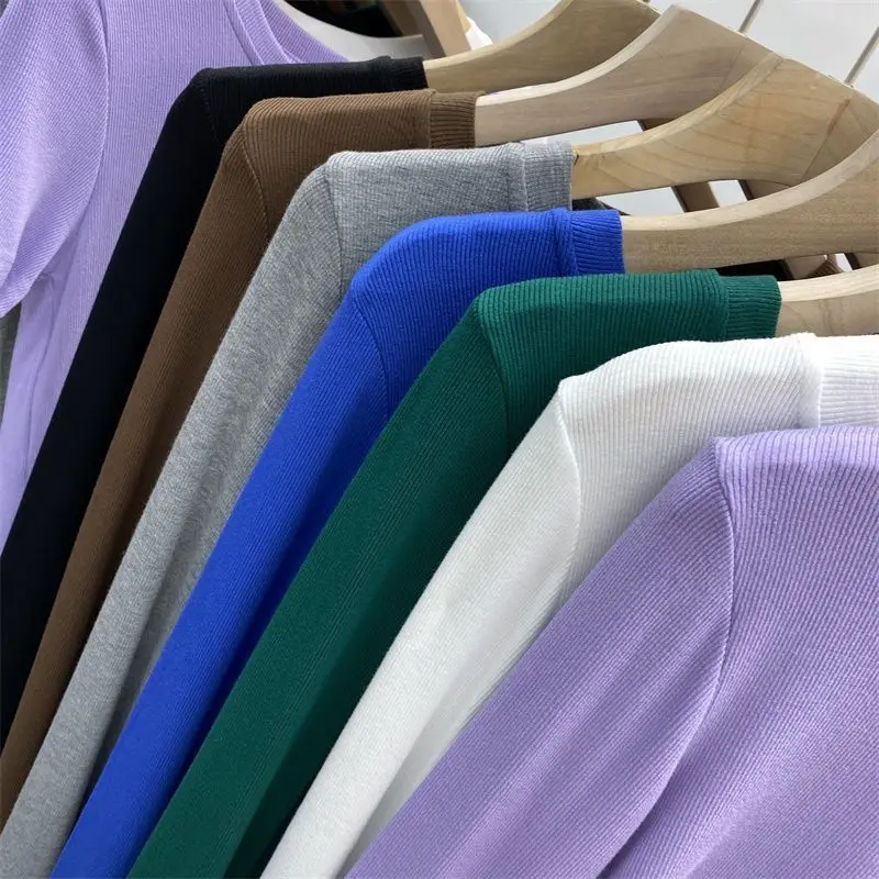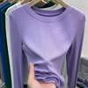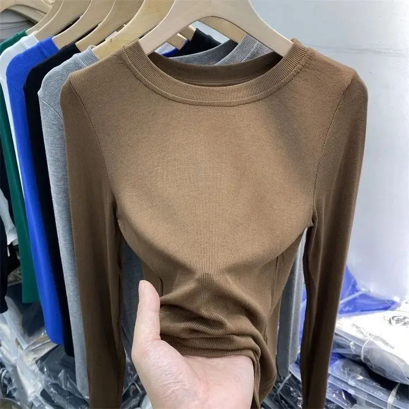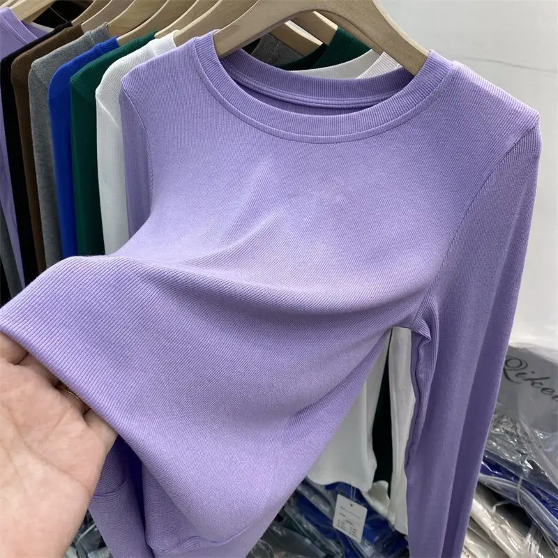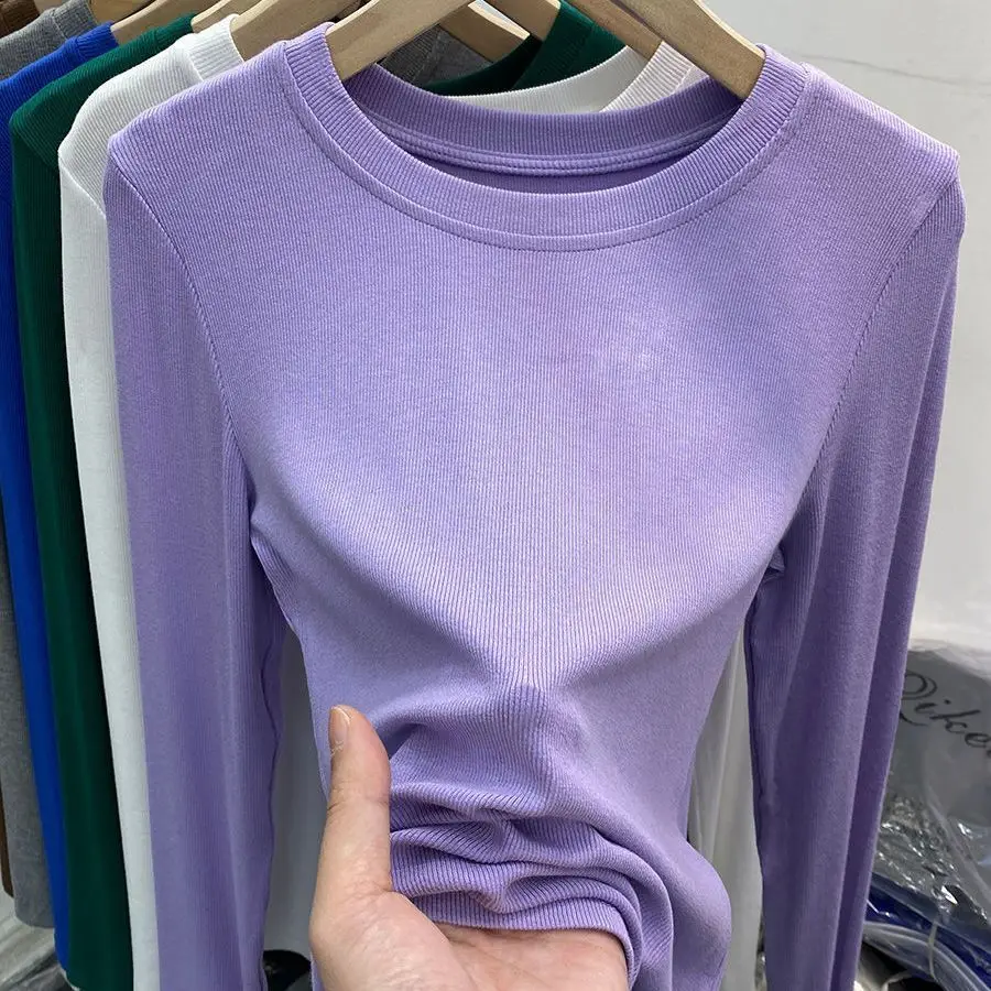 New York’s Fashion Autumn Office Lady O-Neck Elastic T-Shirt Women Base Layer Shirt Thin Slim Casual Top Screw Thread Long Sleeve Women T Shirt