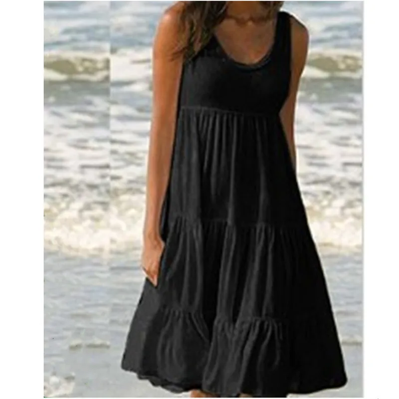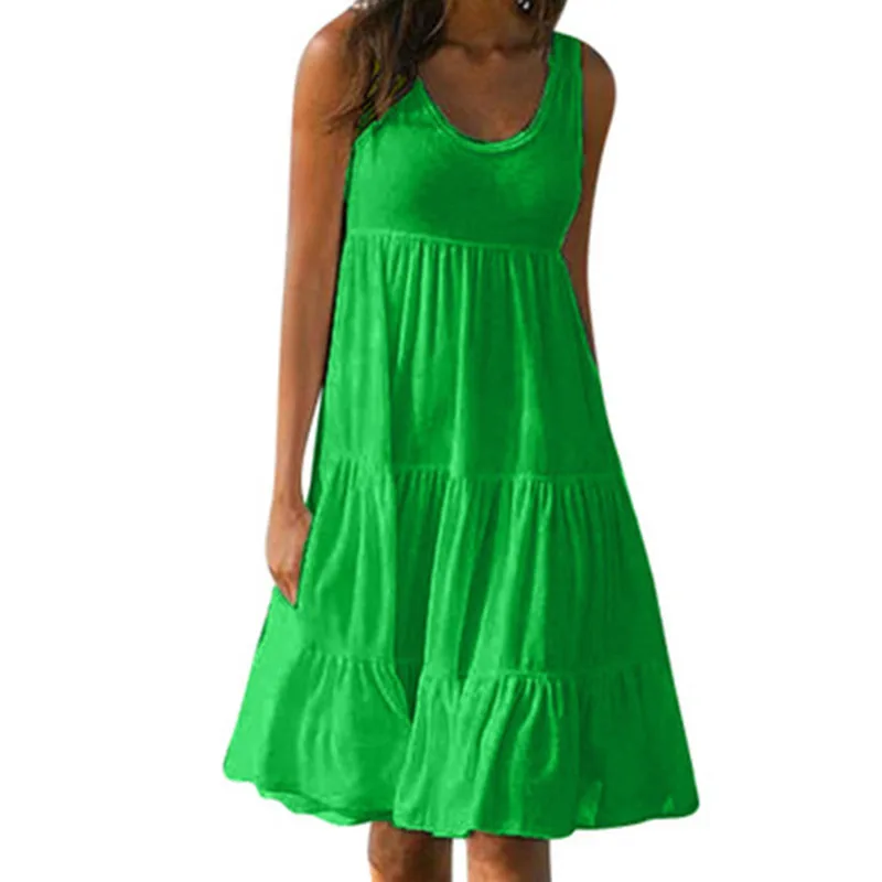 New York’s Fashion Bohemian Women’s Casual O Neck Sleeveless Ruffle Mini Dress Solid Color Beach Tank Top Oversized Loose Dress Plus Size Women