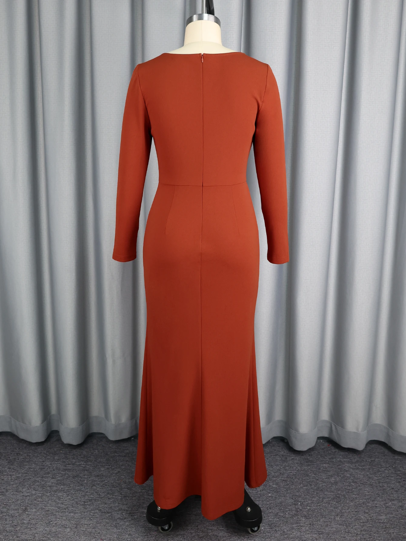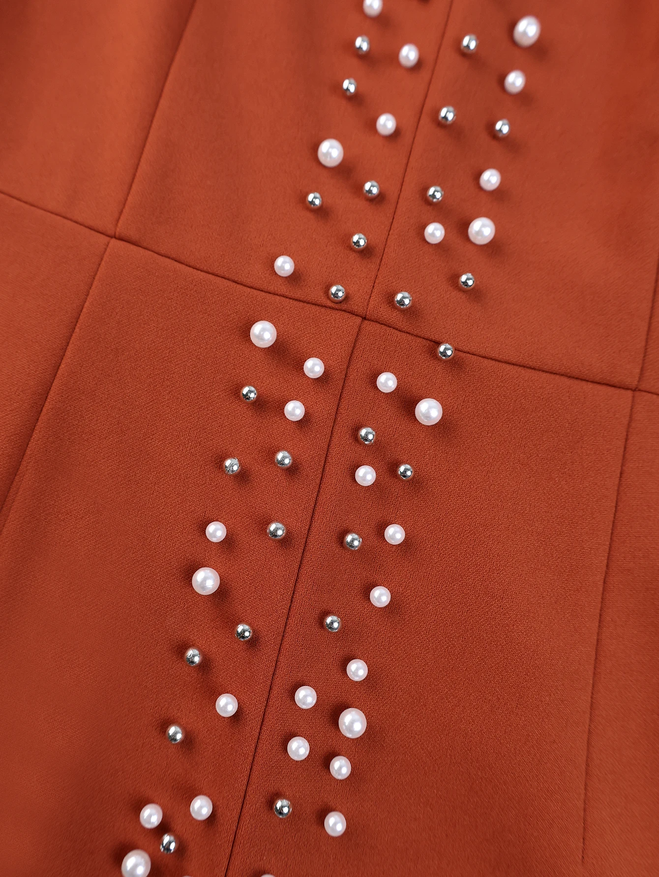New York’s Fashion Brick Red Elegant Trumpet Dress Beading Patchwork Mesh Long Sleeve Sheer Dress Autumn Winter Slim Fit High Waist Party Dress