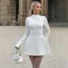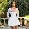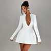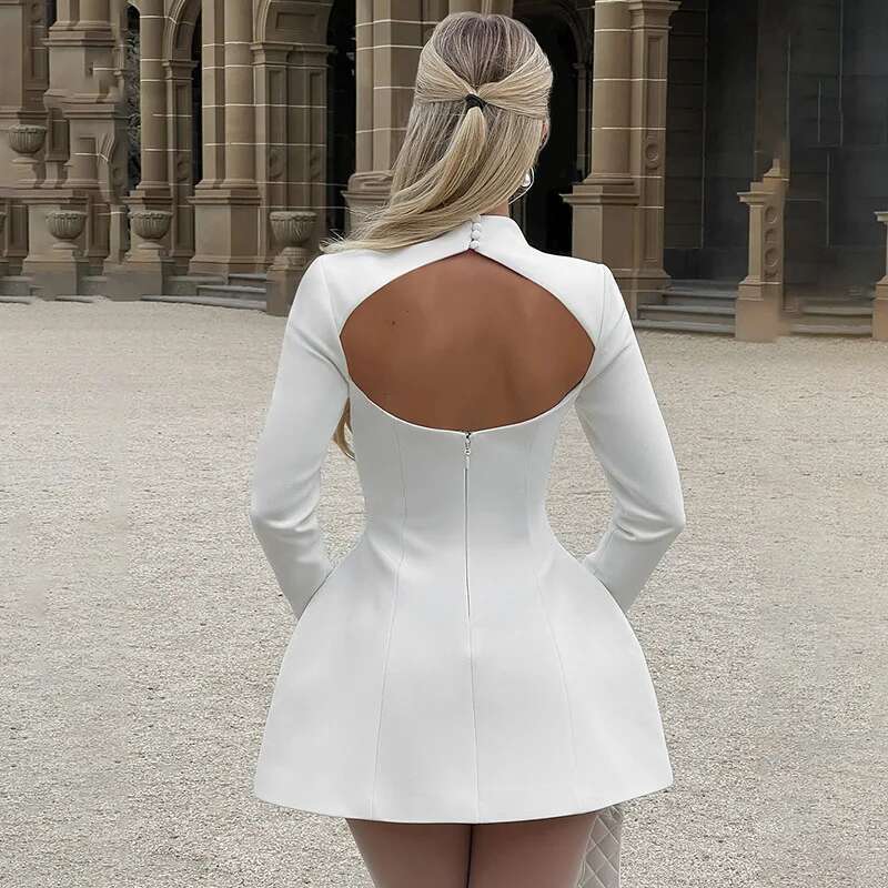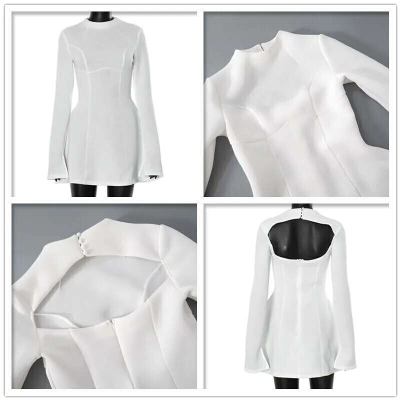 New York’s Fashion Button Backless Bodycon Short Sexy A-line Dress Women Nightclub Party Dress Long Sleeve Mini Autumn Dress Vestidos