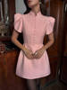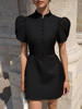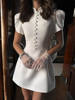 New York’s Fashion Button Patchwork Elegant Dress For Women Fashion Pleated Short Sleeve Short Dresses Femme Office Commuter A-Line Dress