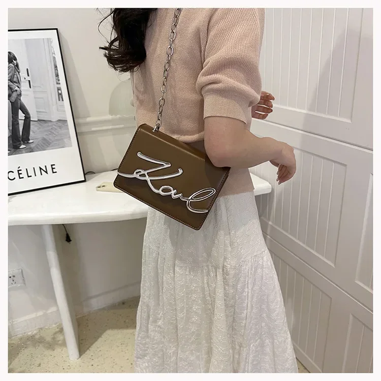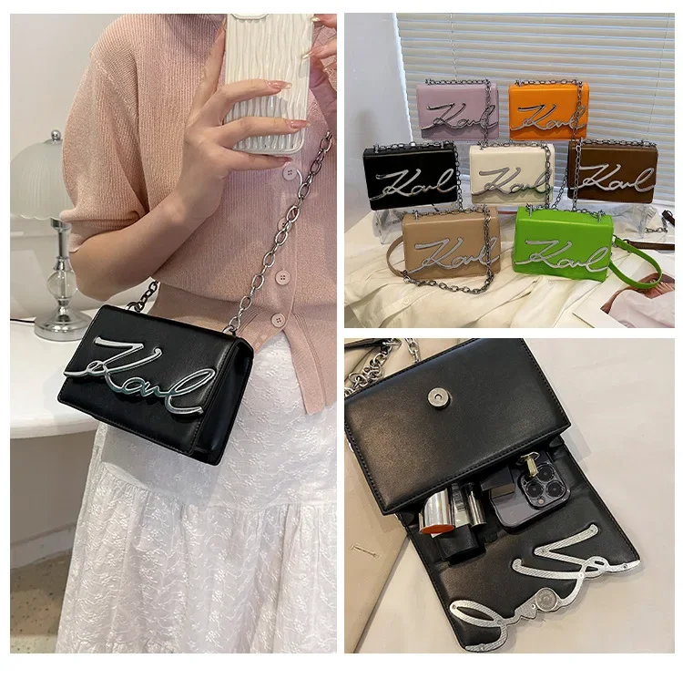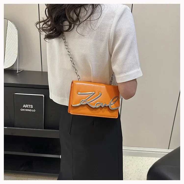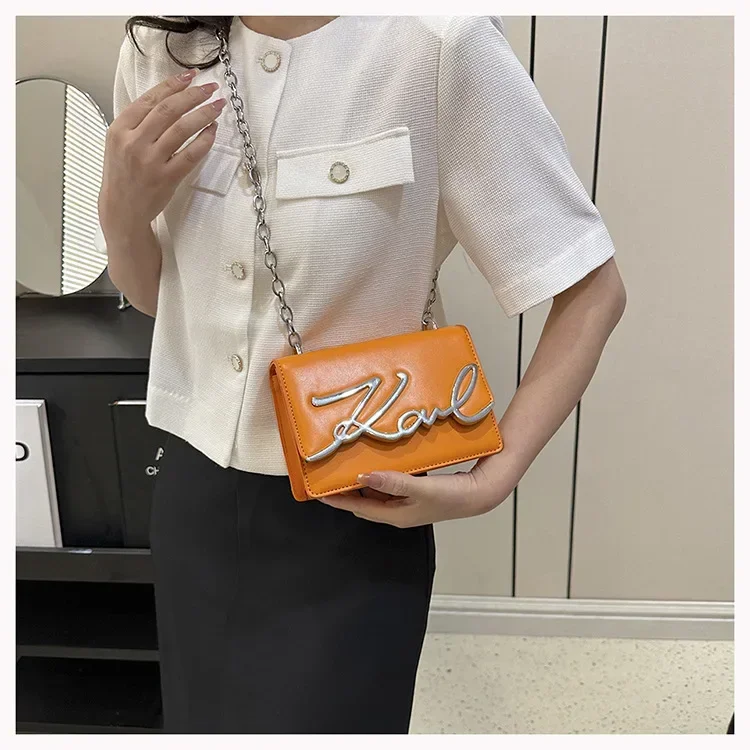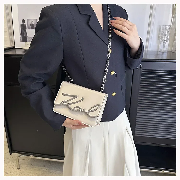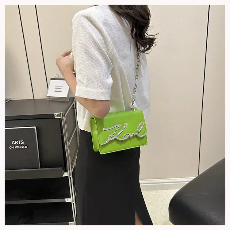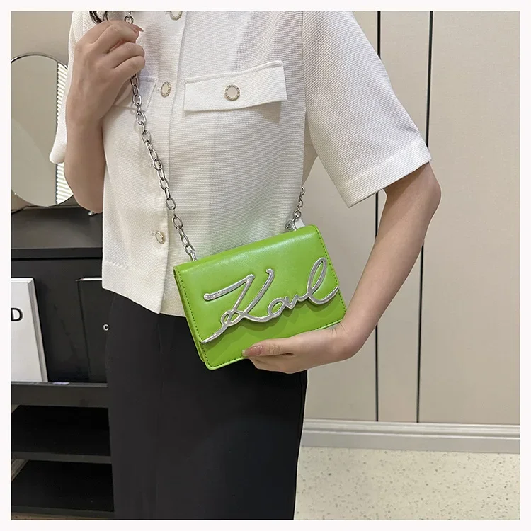 New York’s Fashion Candy Colored Fashionable Ladies Chain Crossbody Bag Versatile Commuter Shoulder Bag PU Leather Medium Hardness Zipper Opening