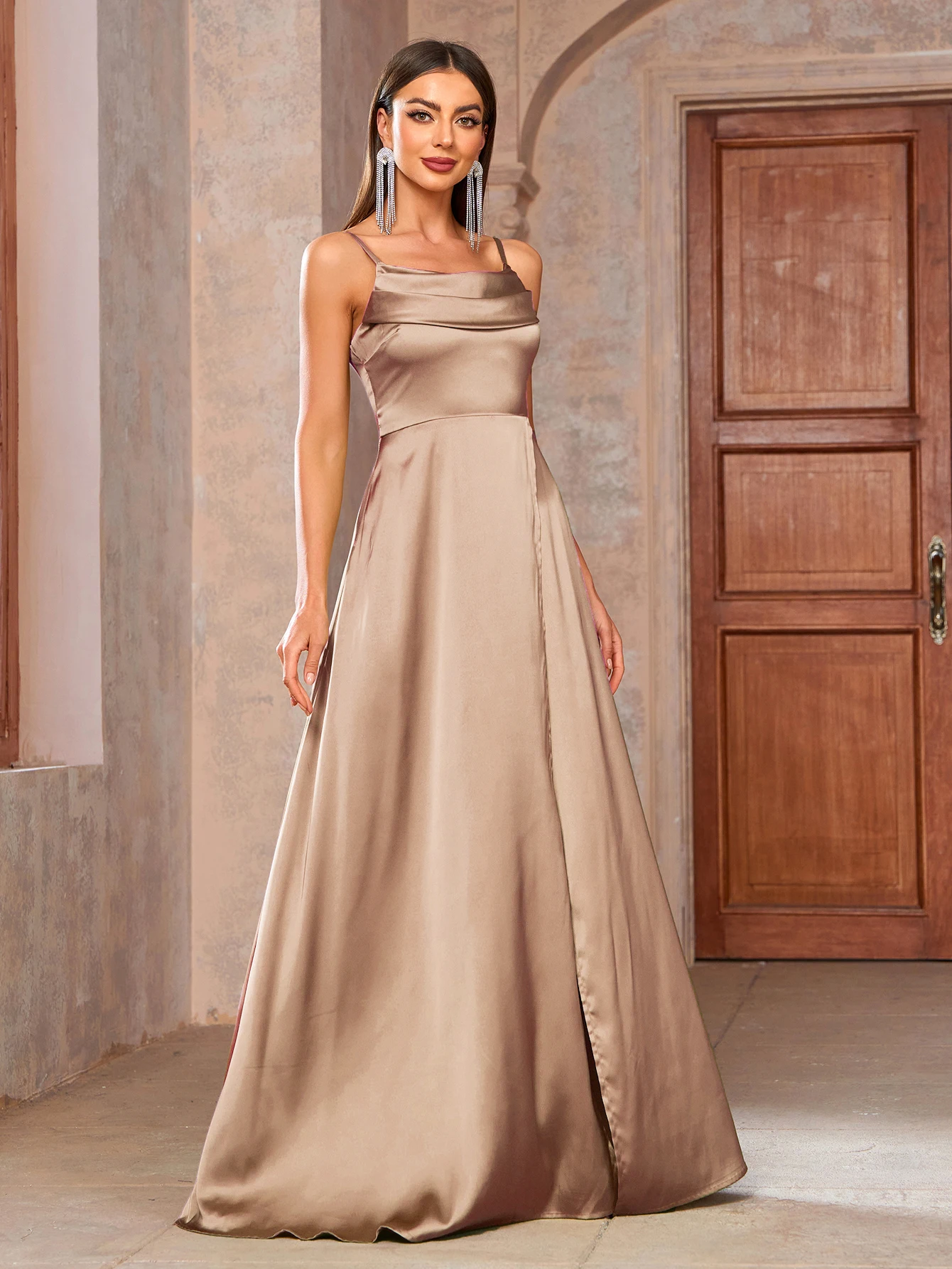 New York’s Fashion Champagne-Colored Backless Dress, Family Gathering Birthday Party Dress, Elegant and Fashionable Dress, Women’s Long Dress, Party Dress, New Dress, Women’s Evening Dress, Host Performance Dress, Bridesmaid Dress, Prom Evening Dress, Concert Performance Dress, Award Ceremony Dress, Fashionable Boutique Dress, Holiday Dress, Graduation Dress, Holiday Date Dress