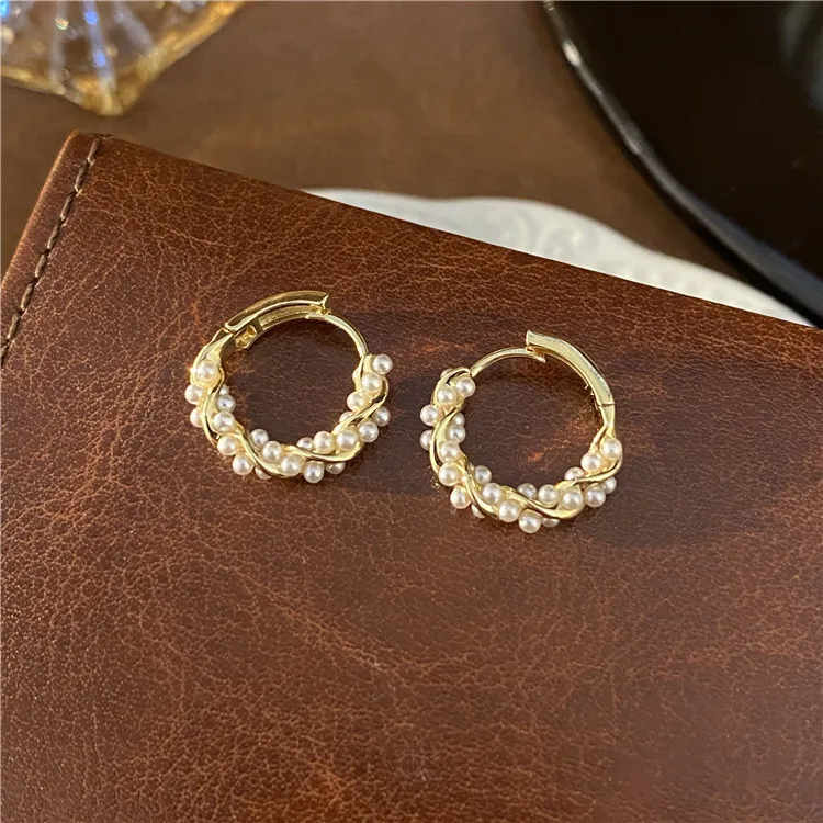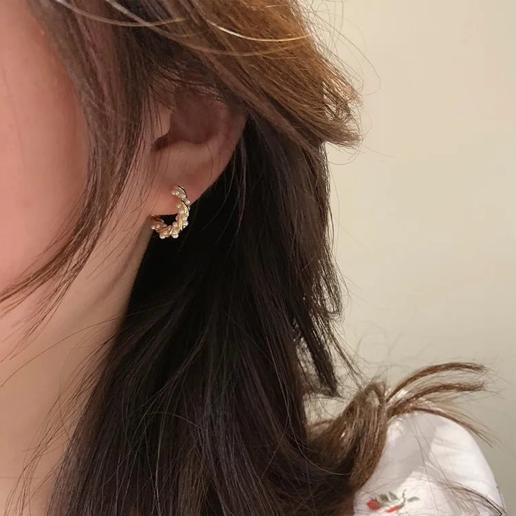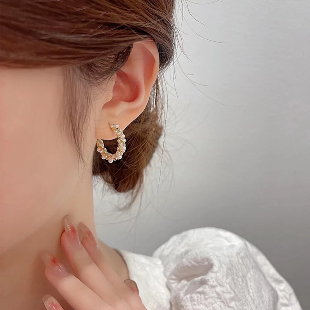 New York’s Fashion Charm Fashion Baroque Pearl Hoop Earrings for Women Temperament Small Versatile Piercing Stud Earrings Jewelry Accessories Gift