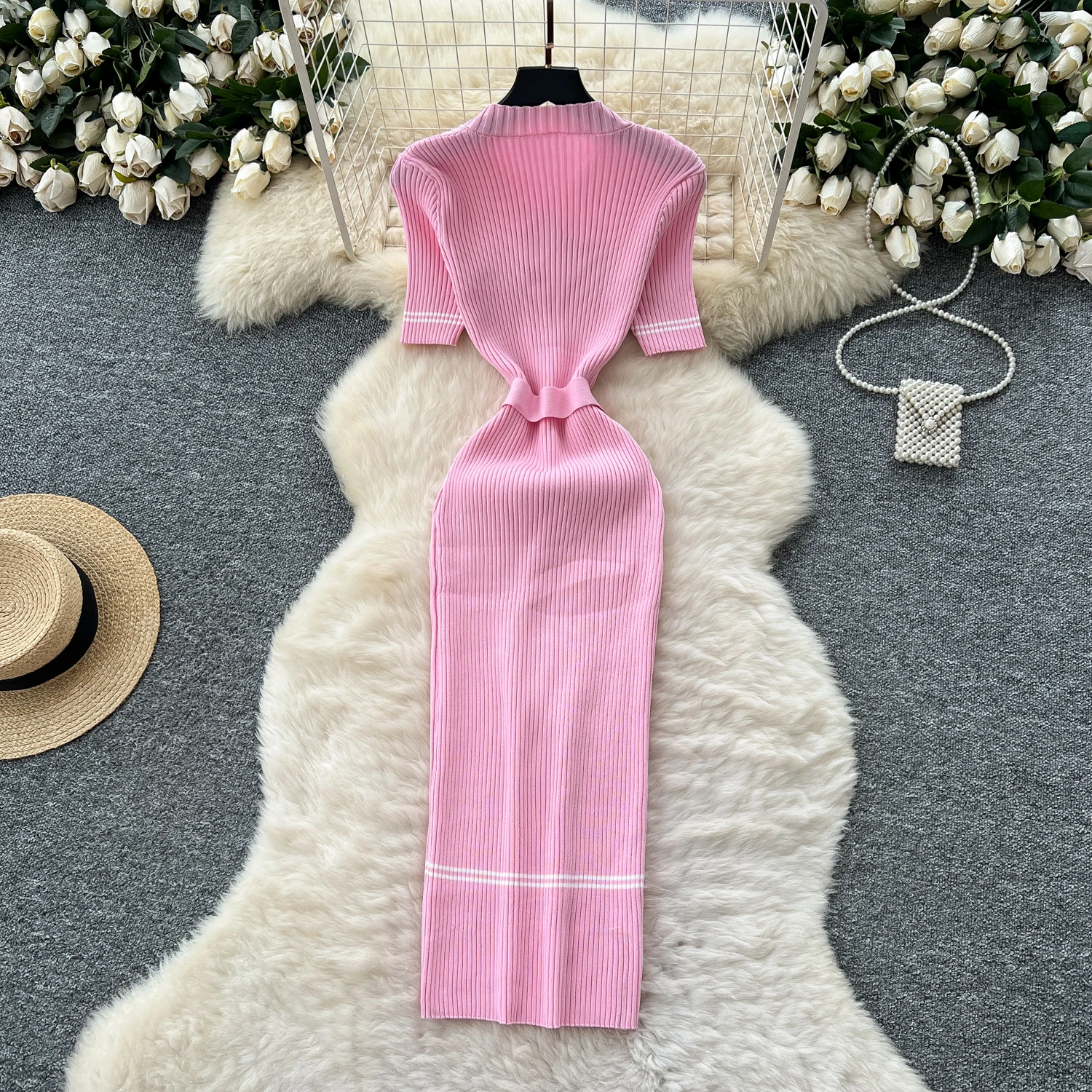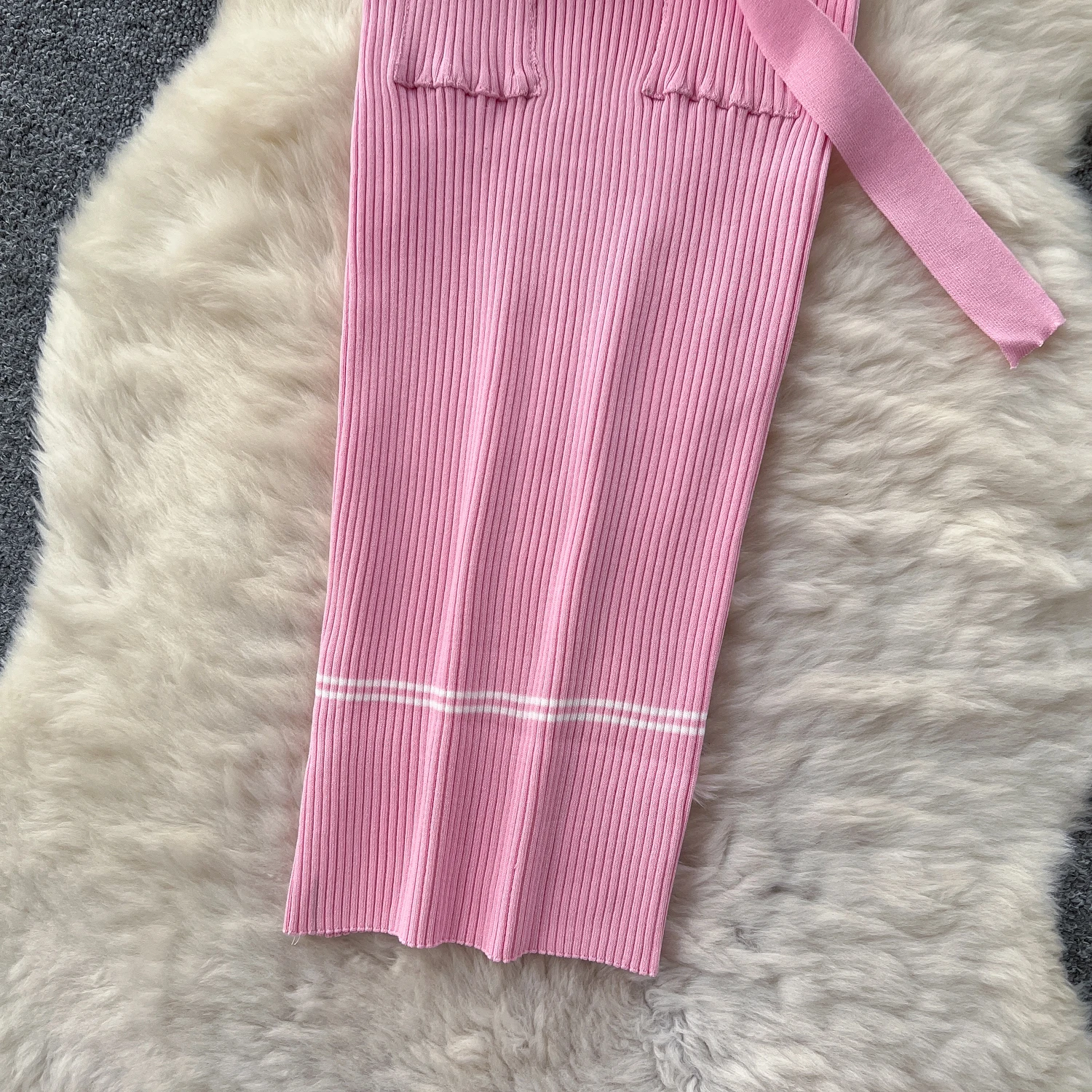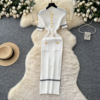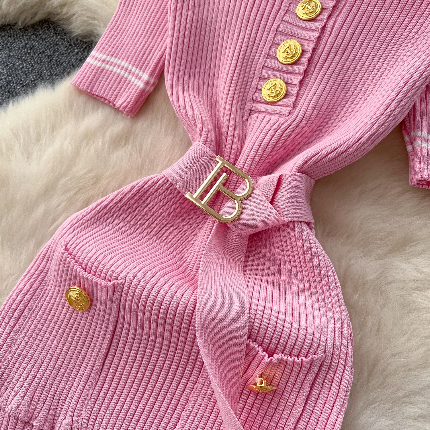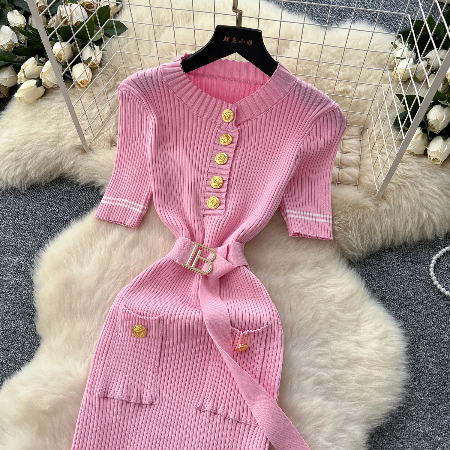 New York’s Fashion Chic Fashion Sexy Package Hips Knitted Long Dress Spring Summer Elegant O-neck Buttons Office Lady Belt Sweater Dress