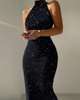 New York’s Fashion Dresses for Women 2025 New Fashion Sexy Night Out Wedding Guest Plain High Neck Sleeveless Glitter Bodycon Party Midi Dress