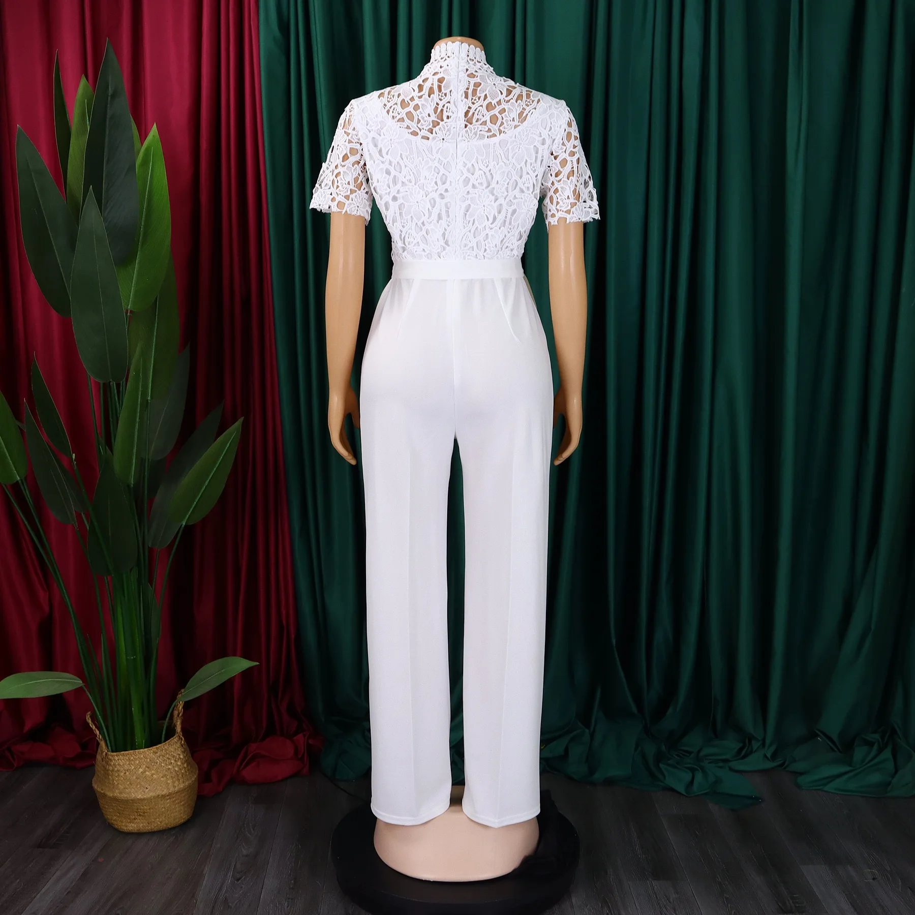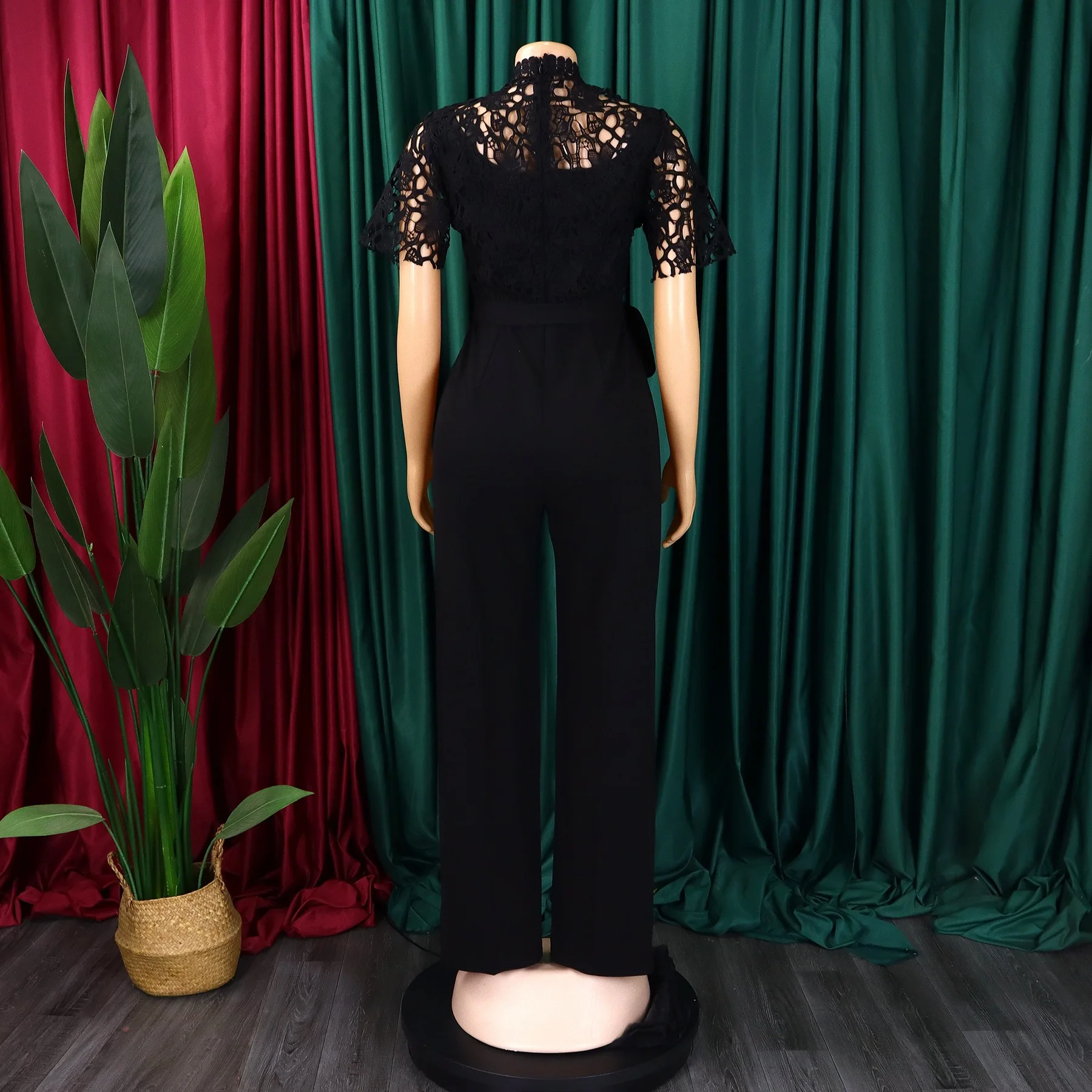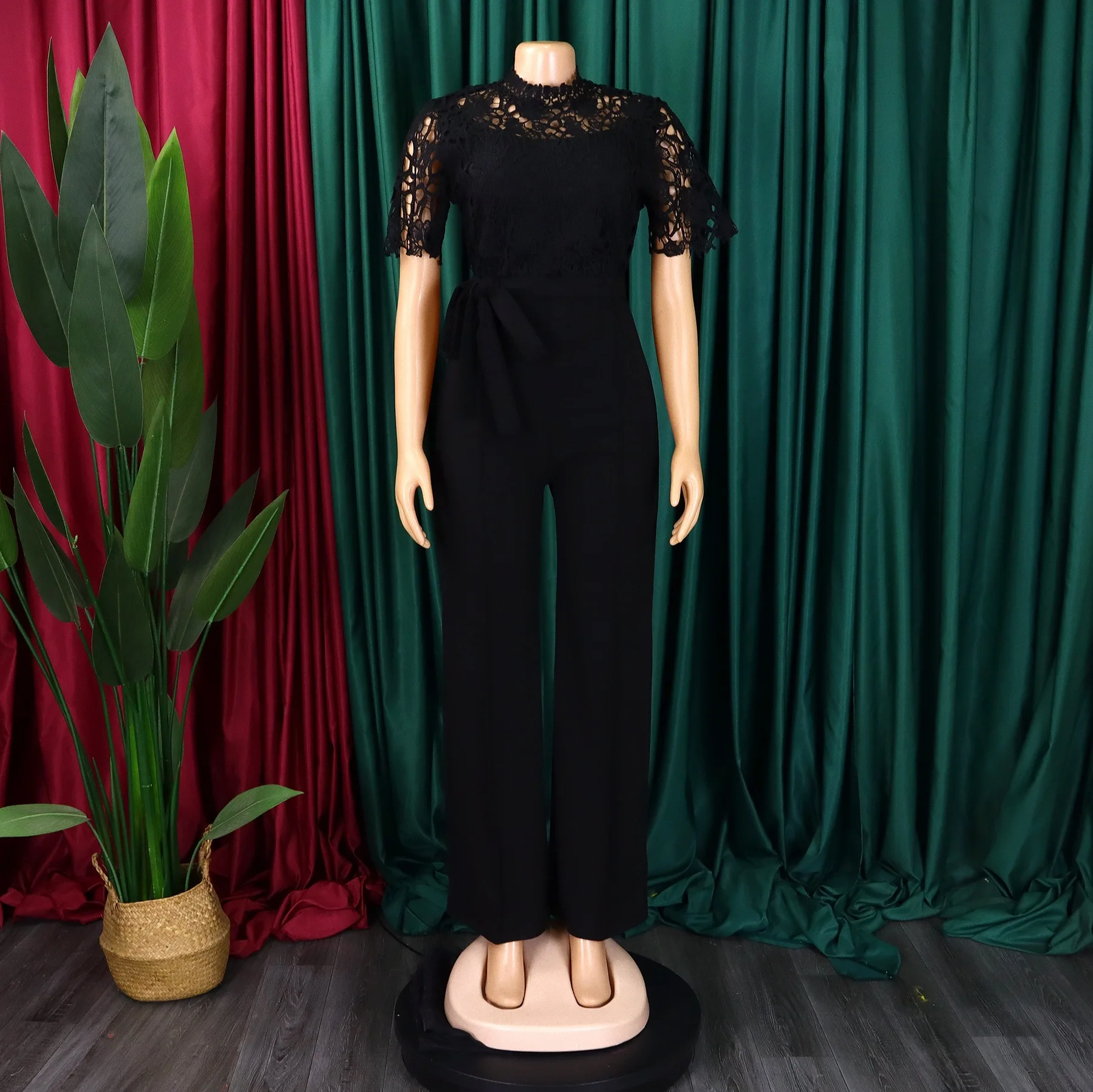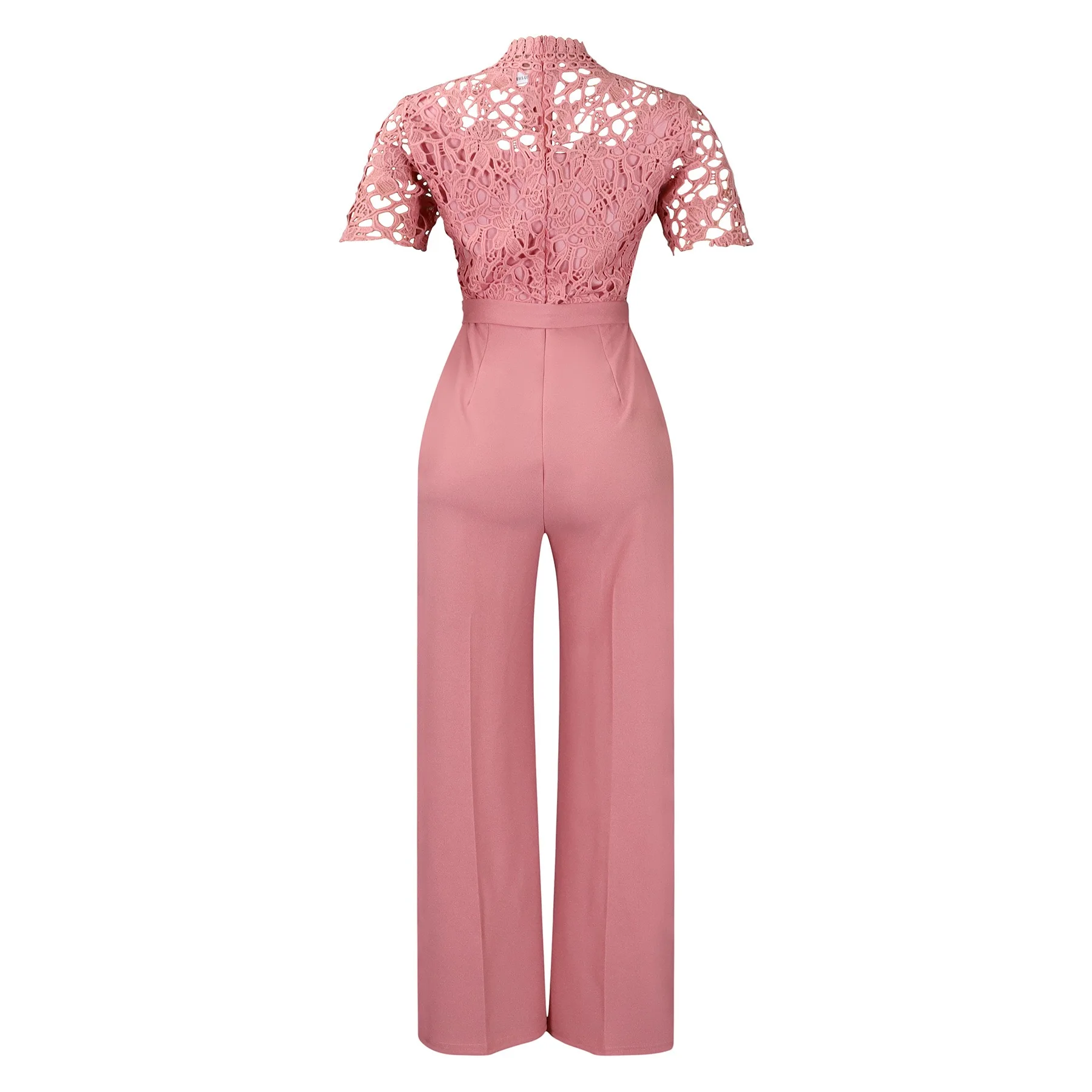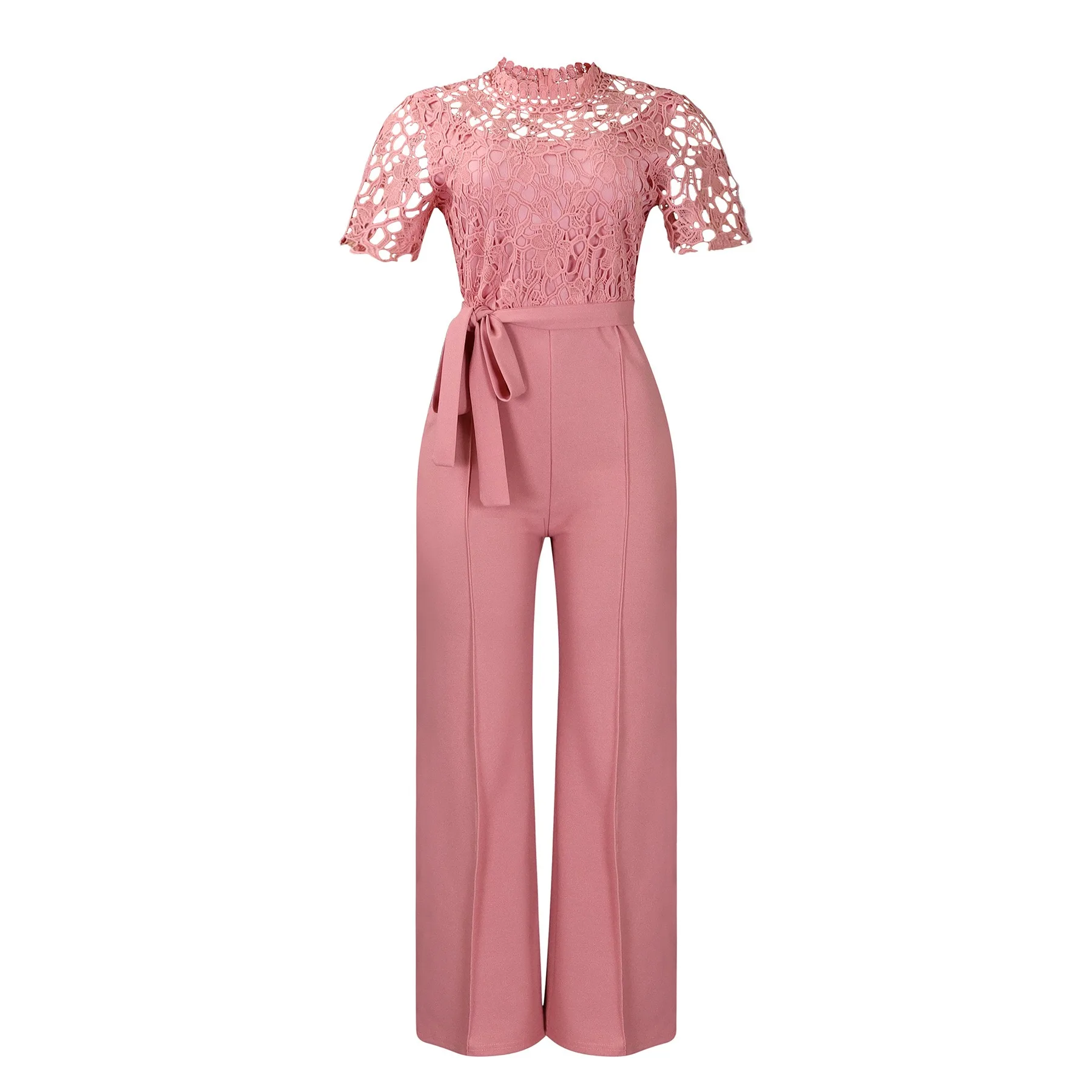 New York’s Fashion Elegant Jumpsuits & Rompers for Women O Neck Lace Patchwork Short Sleeve Sashes High Waisted Luxury Birthday Party Dinner Outfit