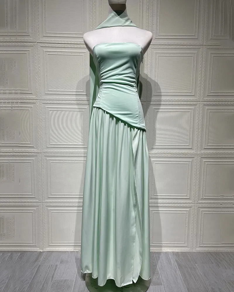 New York’s Fashion Elegant Strapless Sexy Maxi Dress Women Gown Scarf Collar Bandage Backless High Split Club Party Evening Long Dress