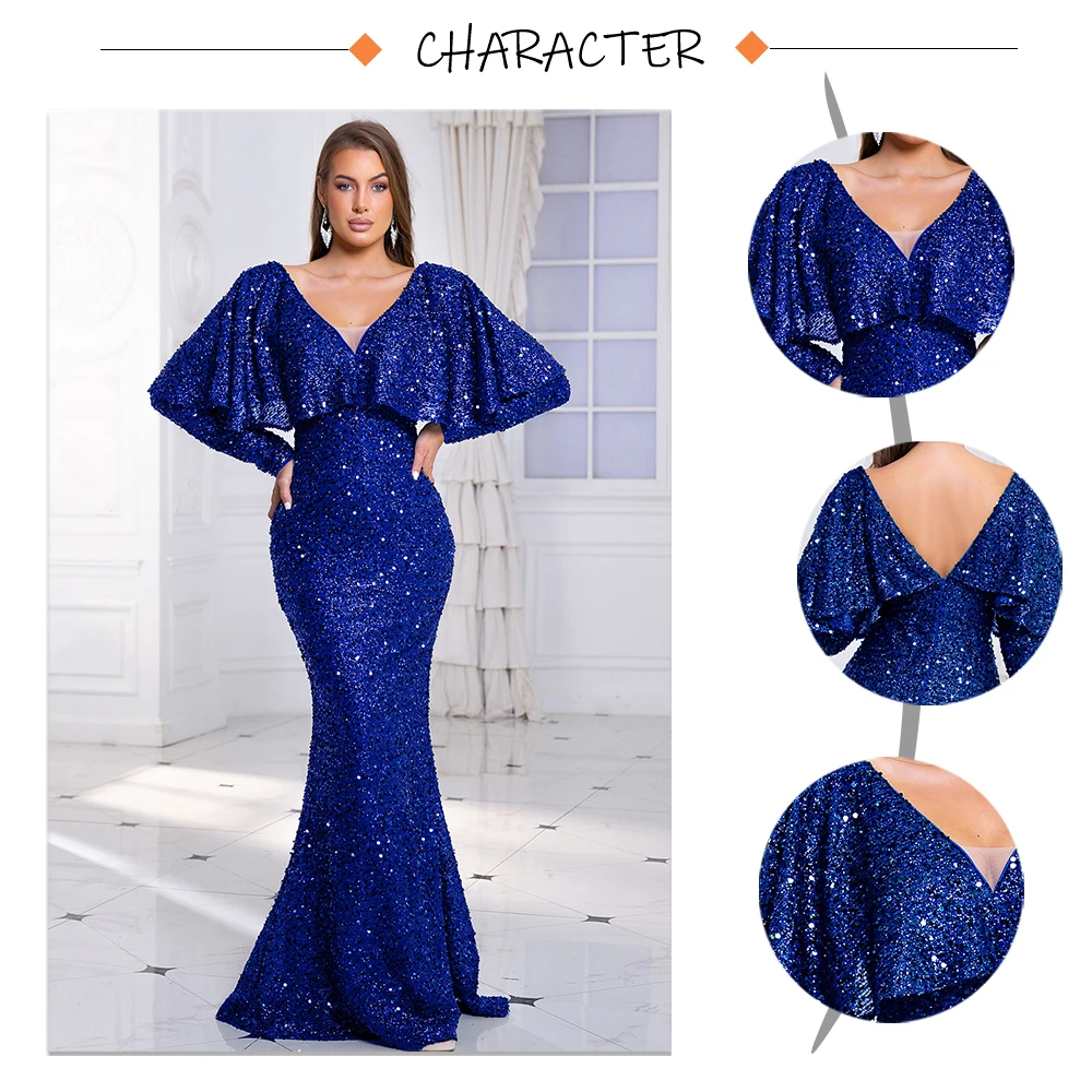 New York’s Fashion Elegant V Neck Long Cape Sleeves Cocktail Party Dress Modest Women Evening Gown Sexy Backless Floor Length Dresses 2025