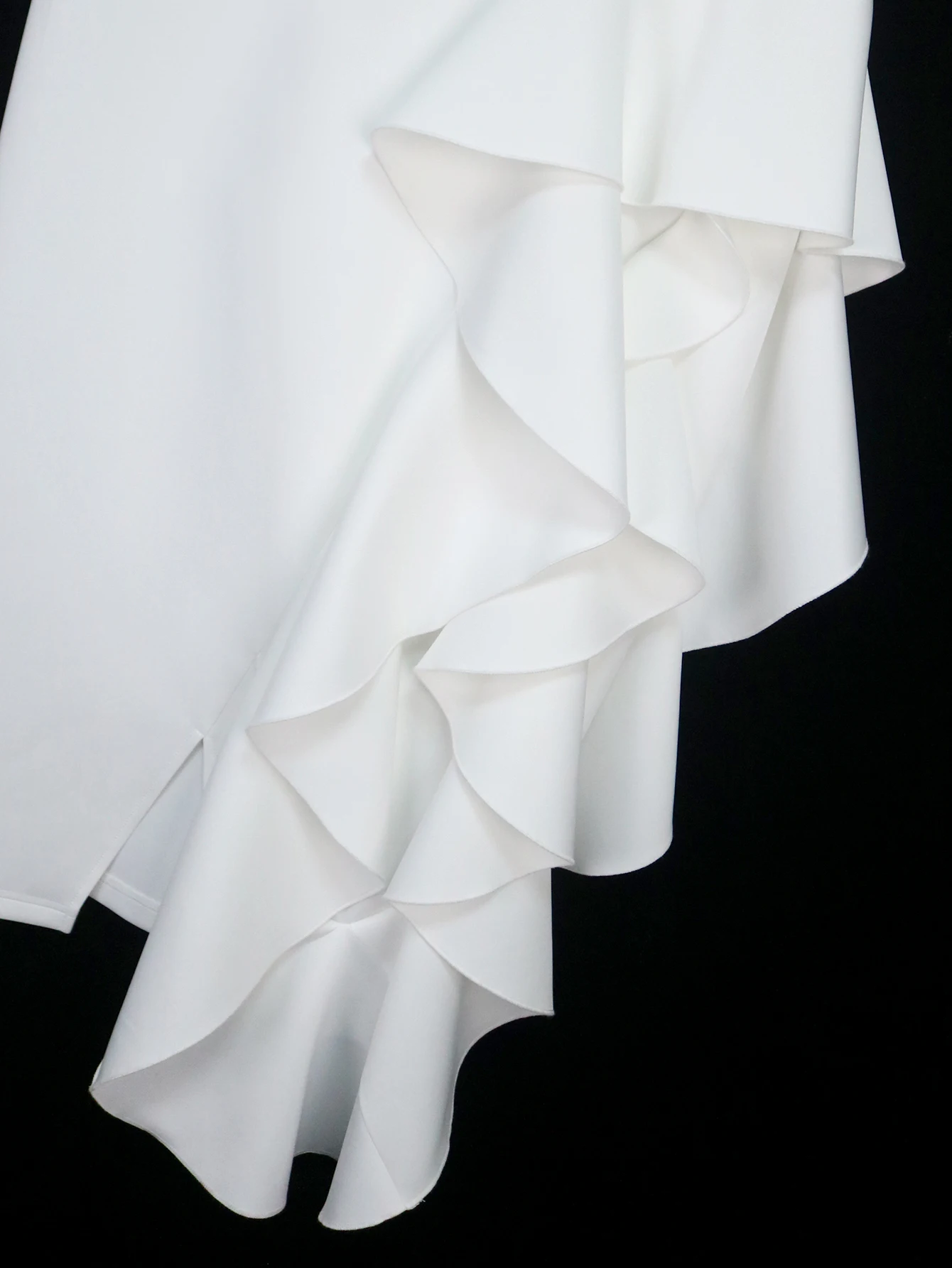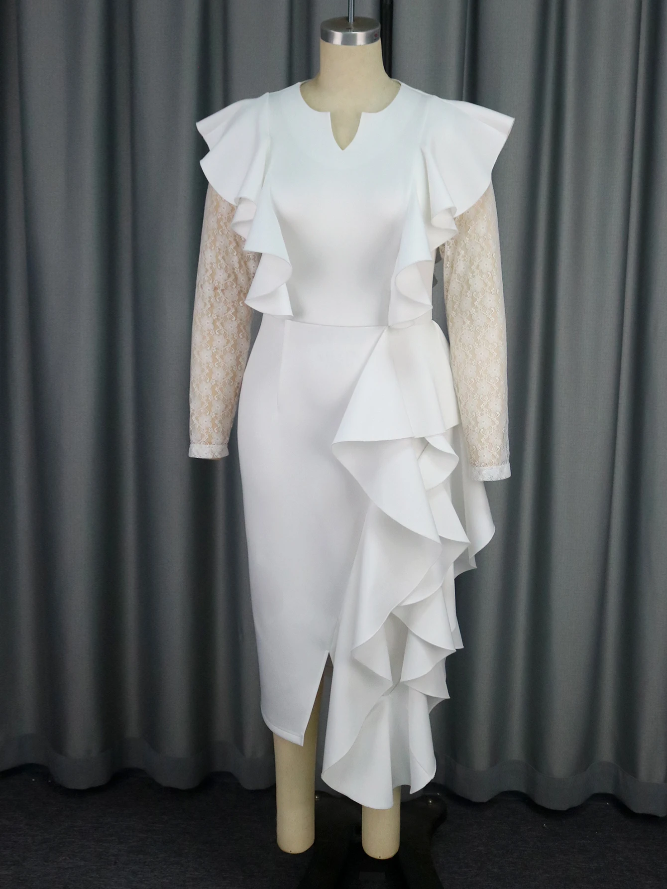 New York’s Fashion Elegant White Party Dress V Neck Lace Long Sleeve Ruffles High Waist Bodycon Women’s Birthday Evening Dresses for Ladies New