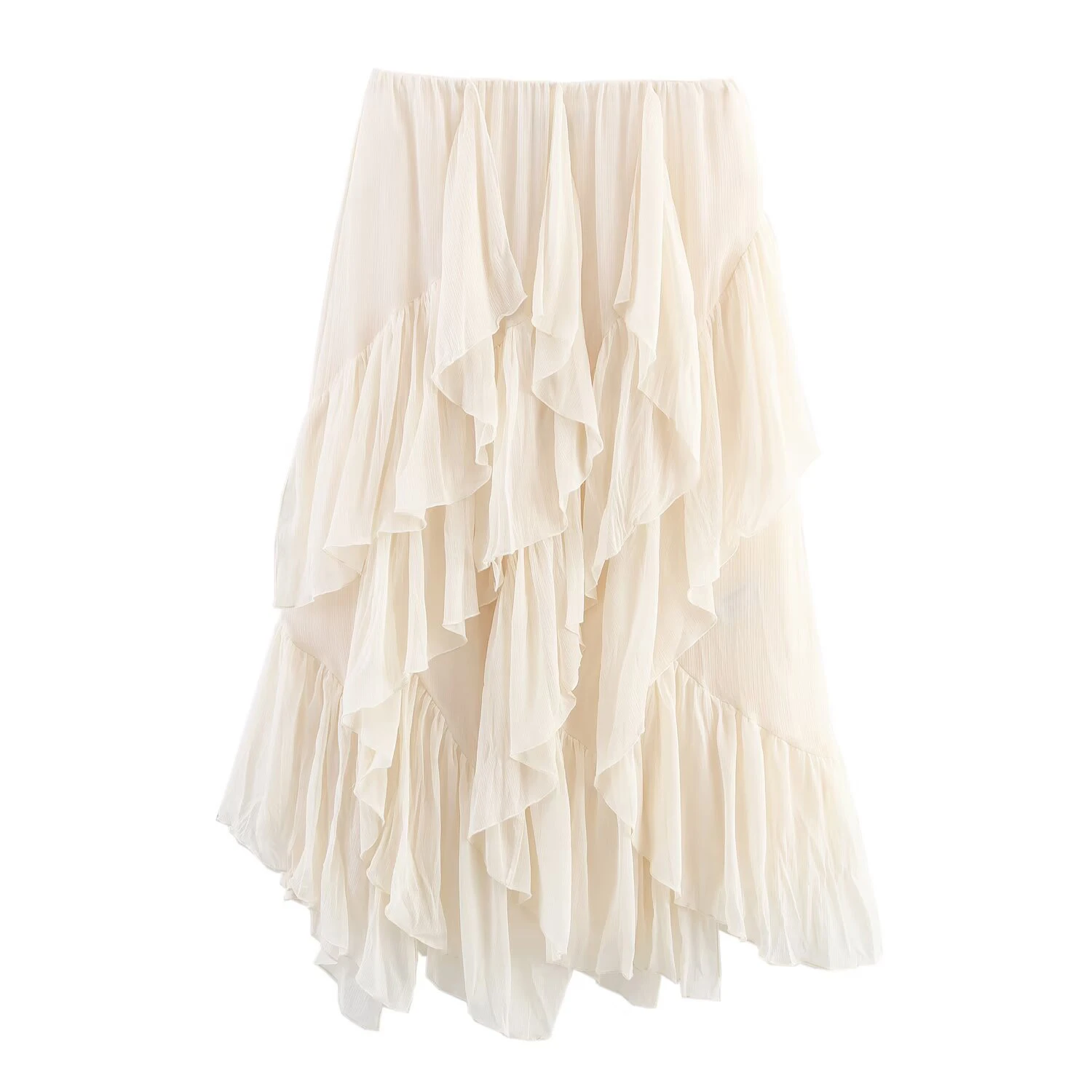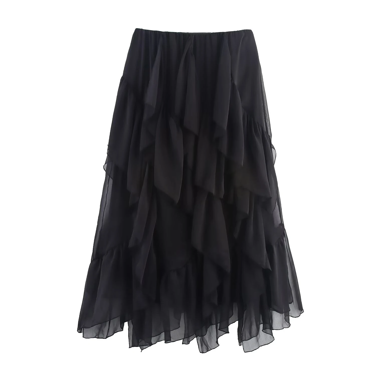 New York’s Fashion European and American style 2025 summer new product women’s clothing design sense layered decoration mid waist MIDI skirt