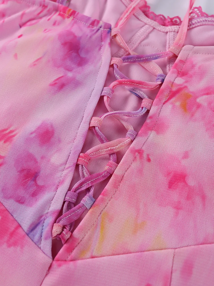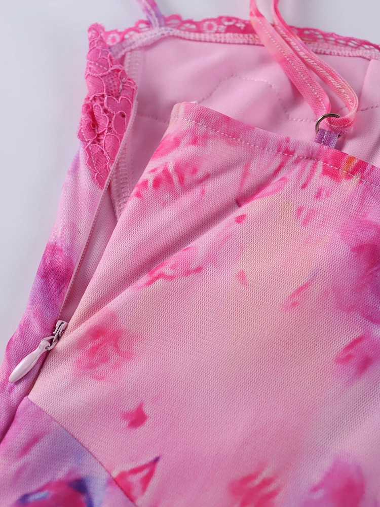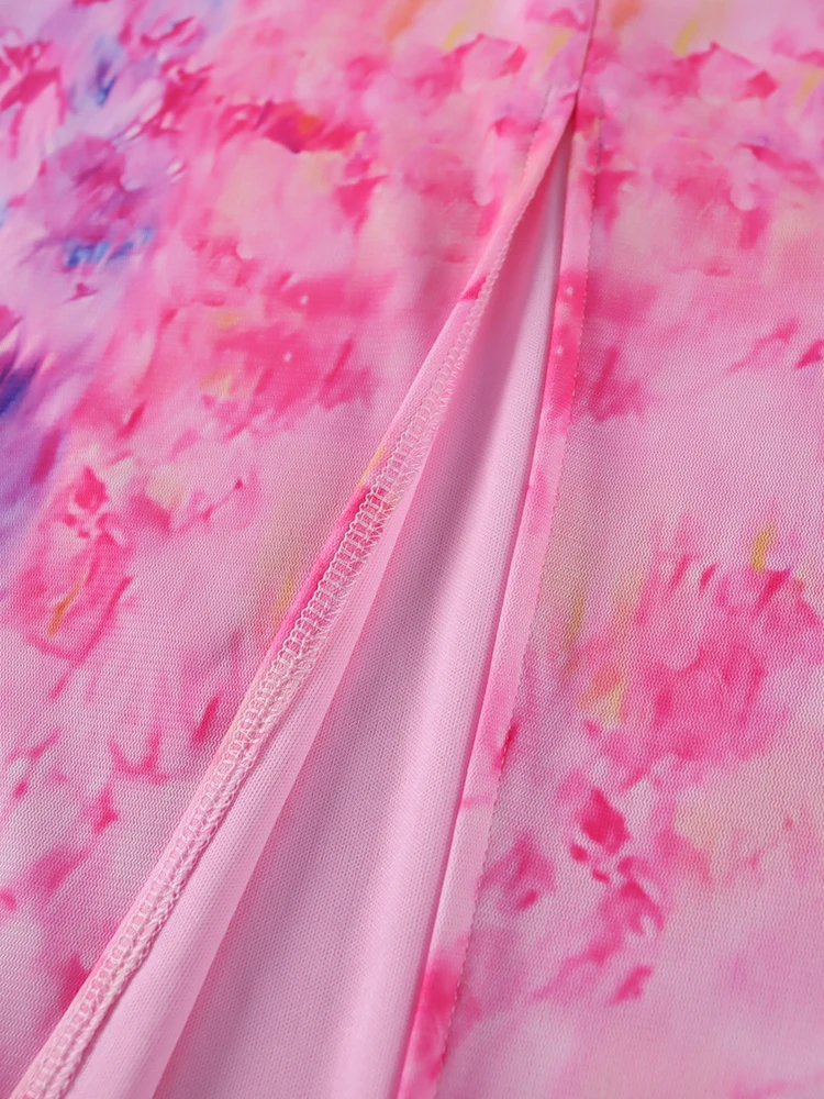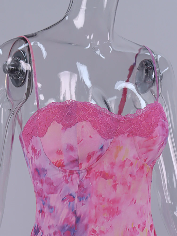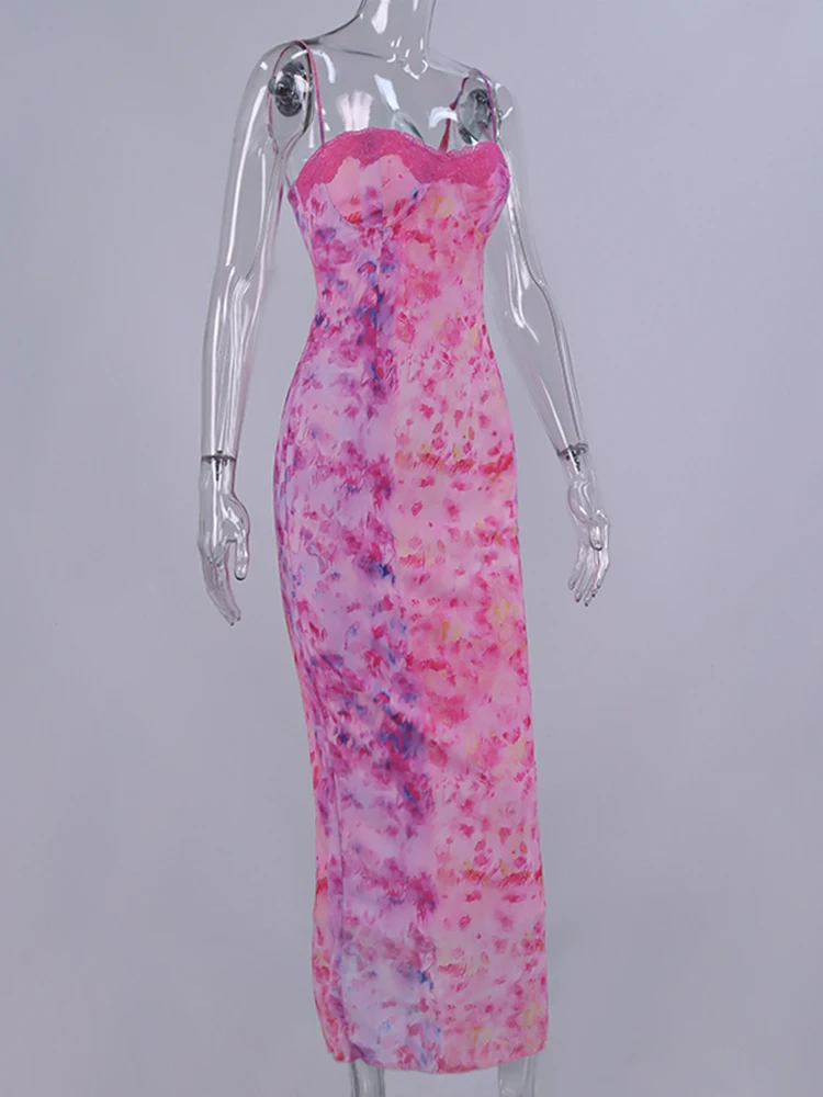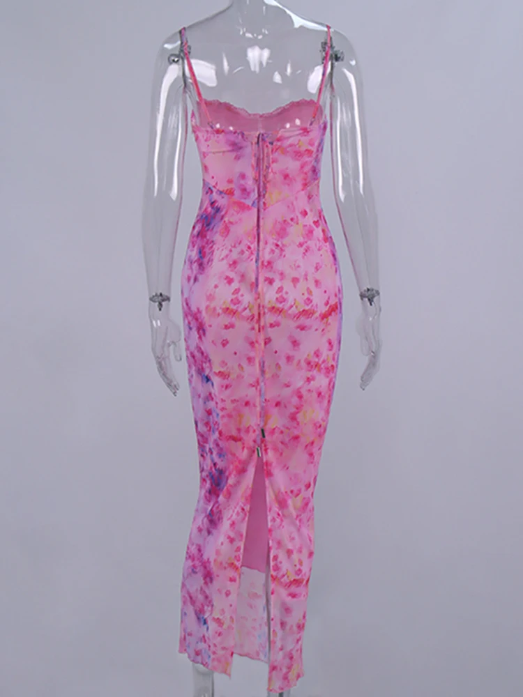 New York’s Fashion Floral Mesh Camisole Long Dress For Women 2025 Summer Back Hollow Out Split Sheath Vestidos Beach Holiday Sundress Femme