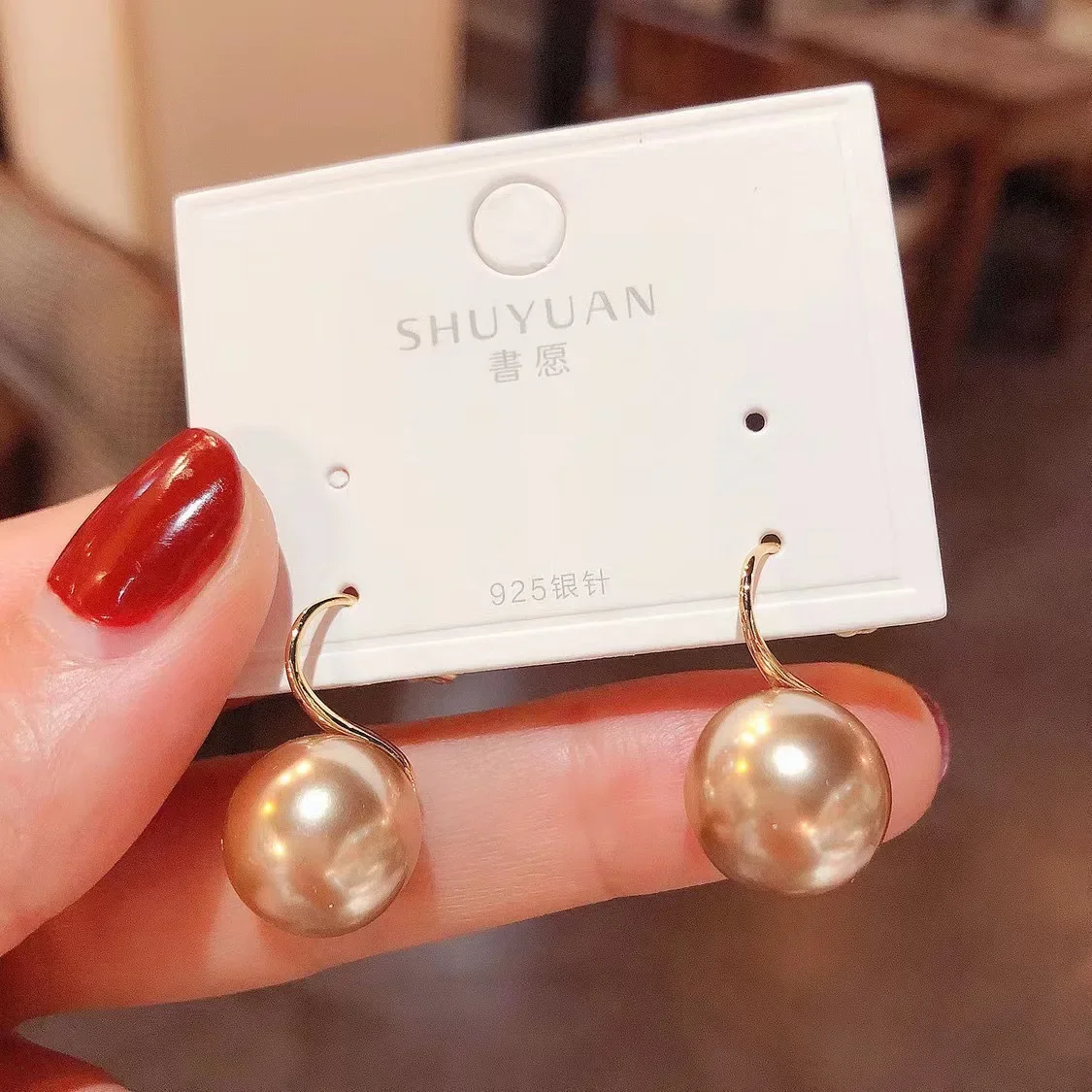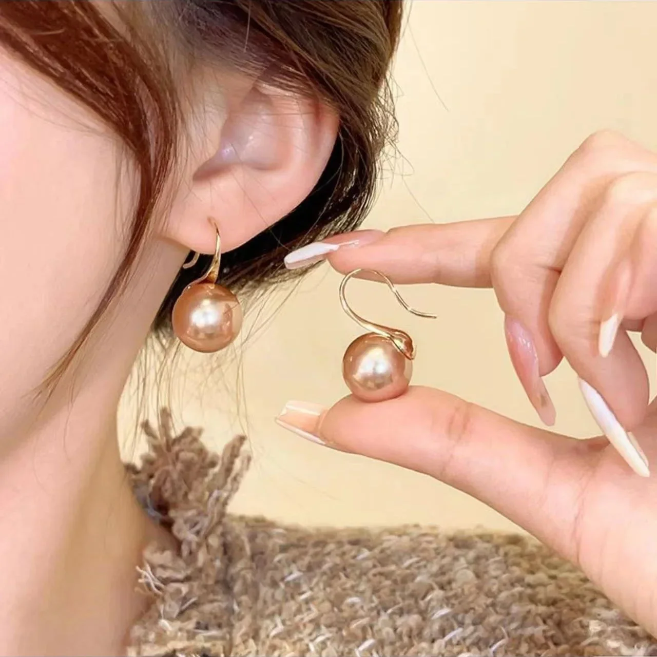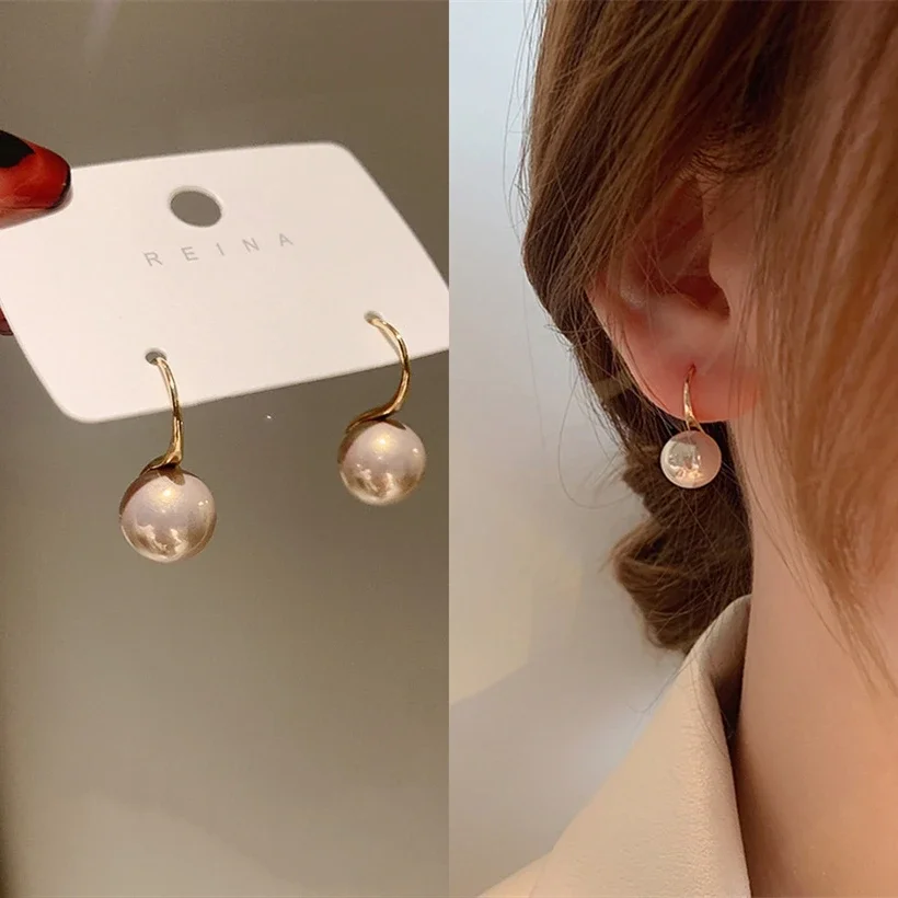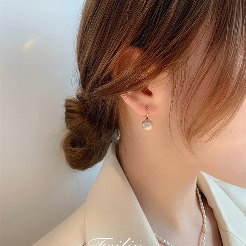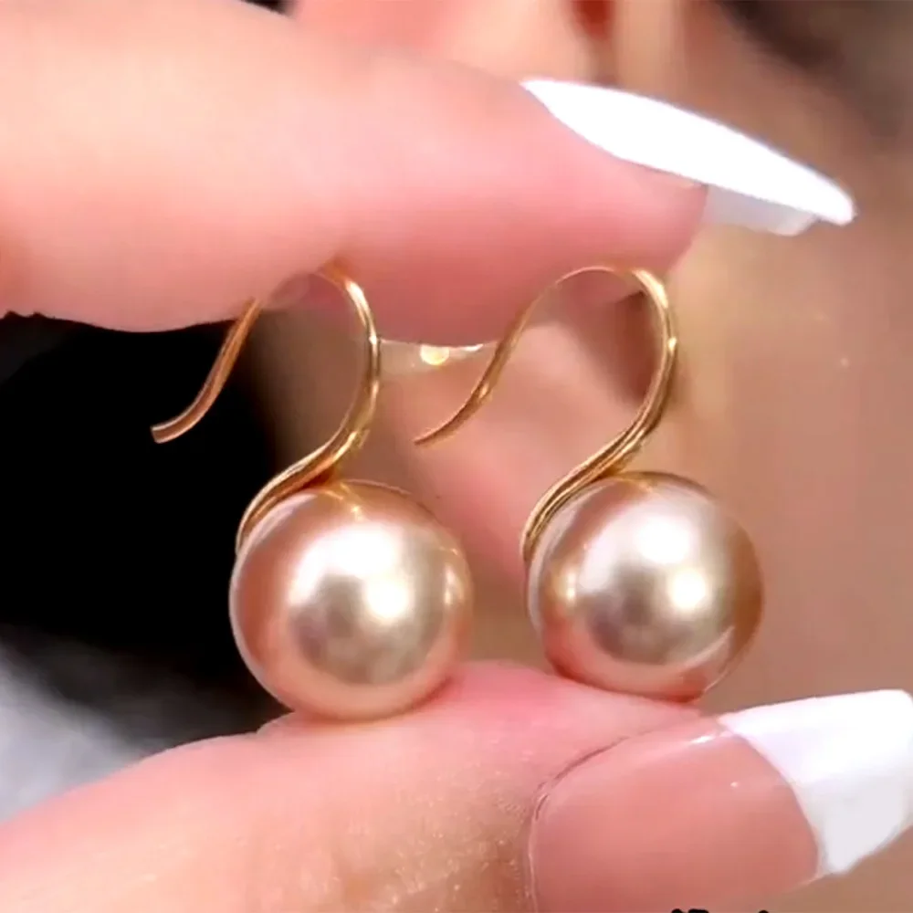 New York’s Fashion French 12mm Big Champagne Imitation Pearl Ear Hook Earrings for Women Personalized Wedding Jewelry Wholesale
