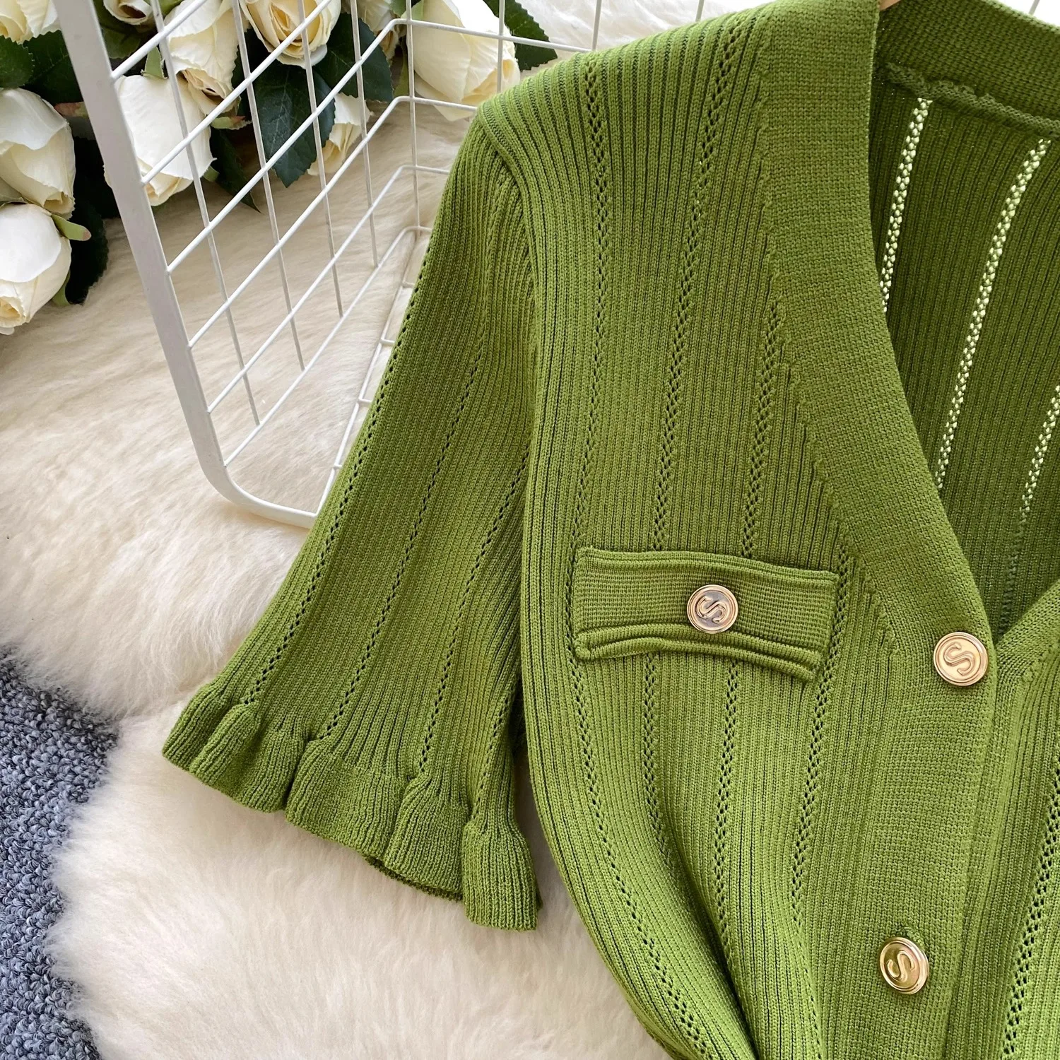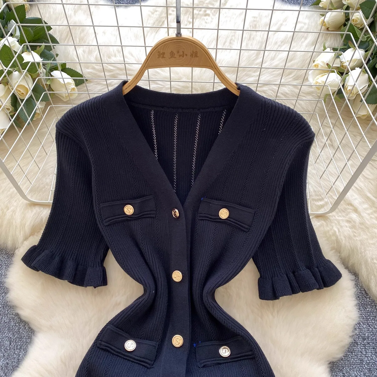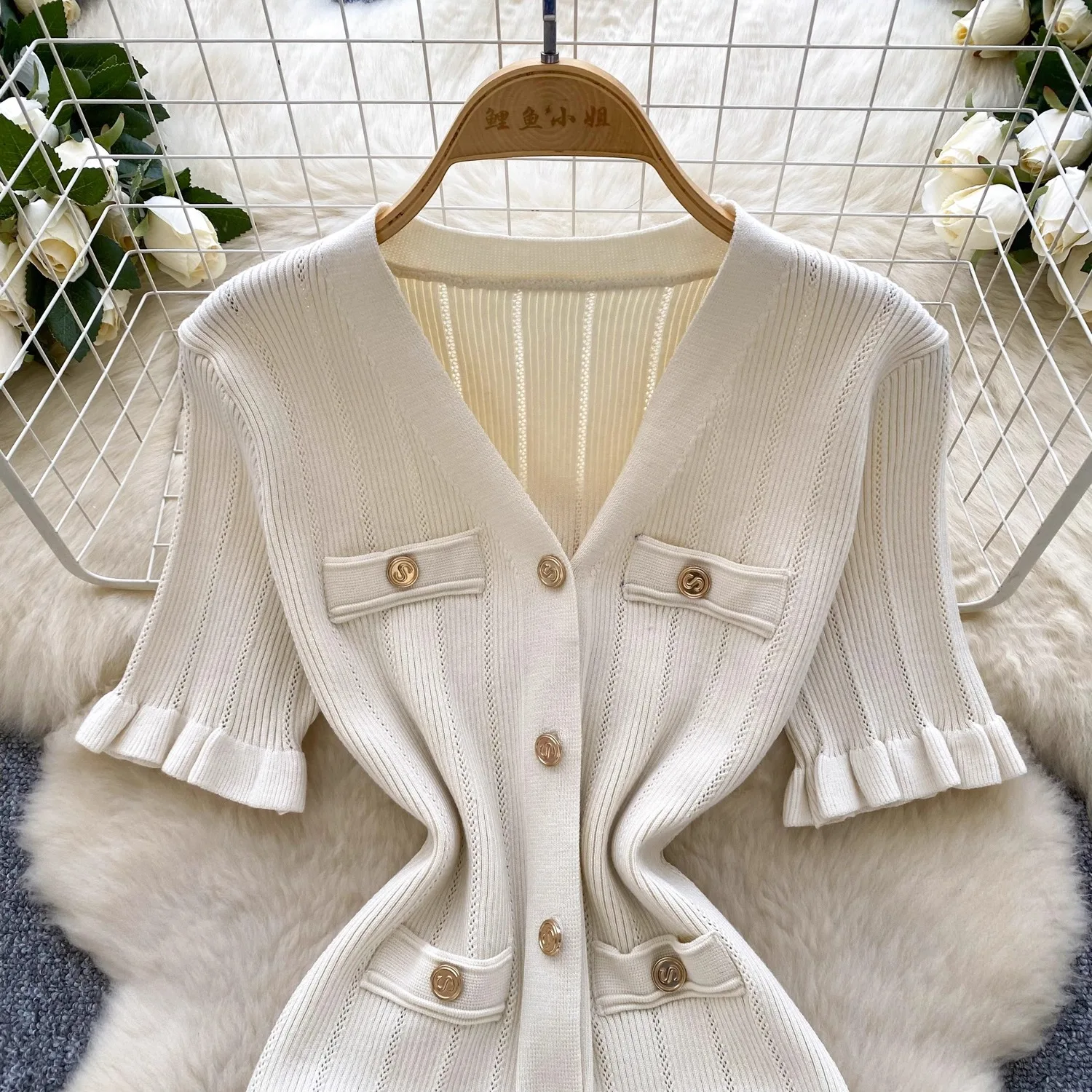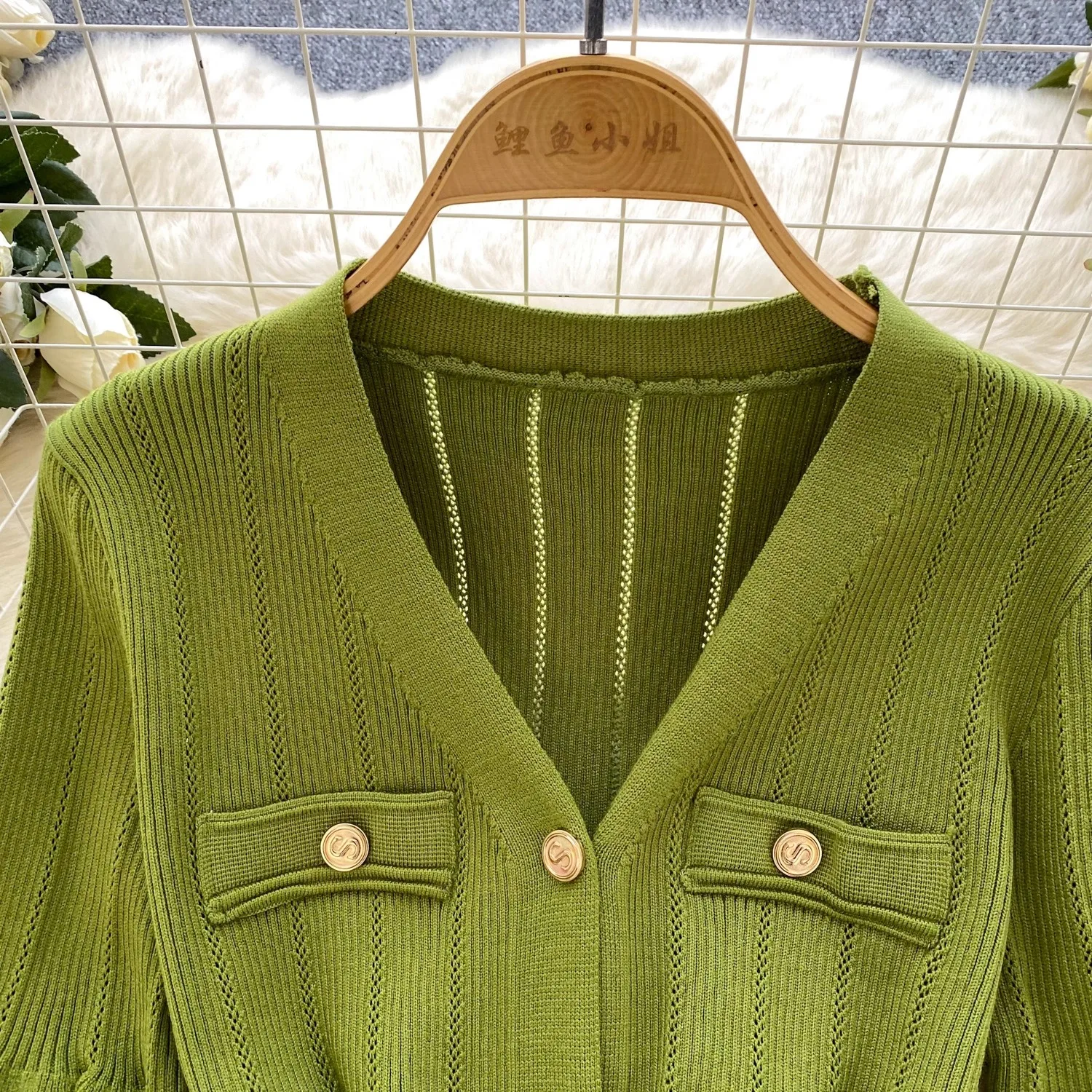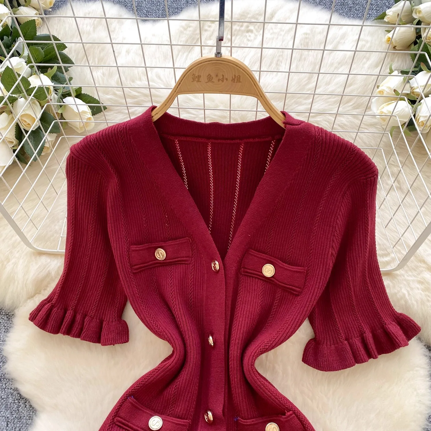 New York’s Fashion French Vintage Women Luxury Knitted Long Dress Chic Designer Ruffles Single-breasted Long Sweater Dress Lady Party Robe