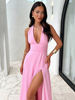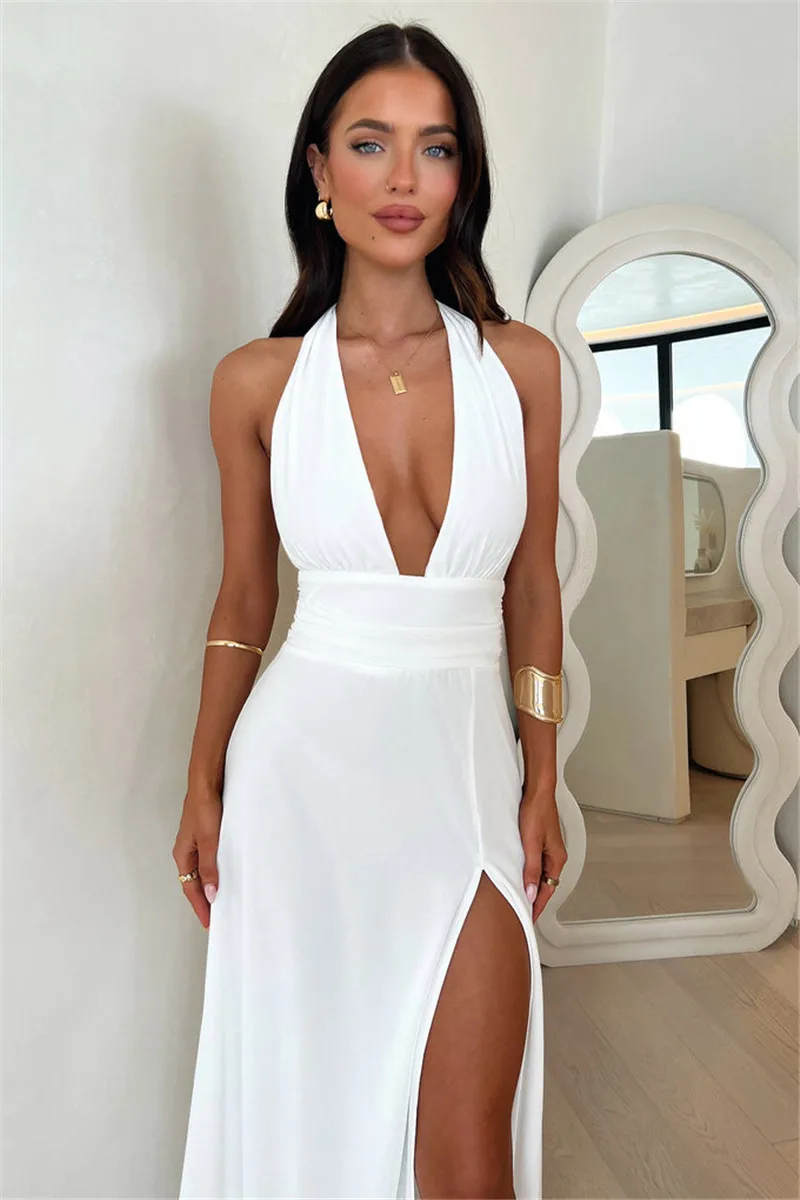 New York’s Fashion Halter Deep V Neck High Split Maxi Dress For Women Fashion Sleeveless Backless Bodycon Club Party Sexy Long Dress New
