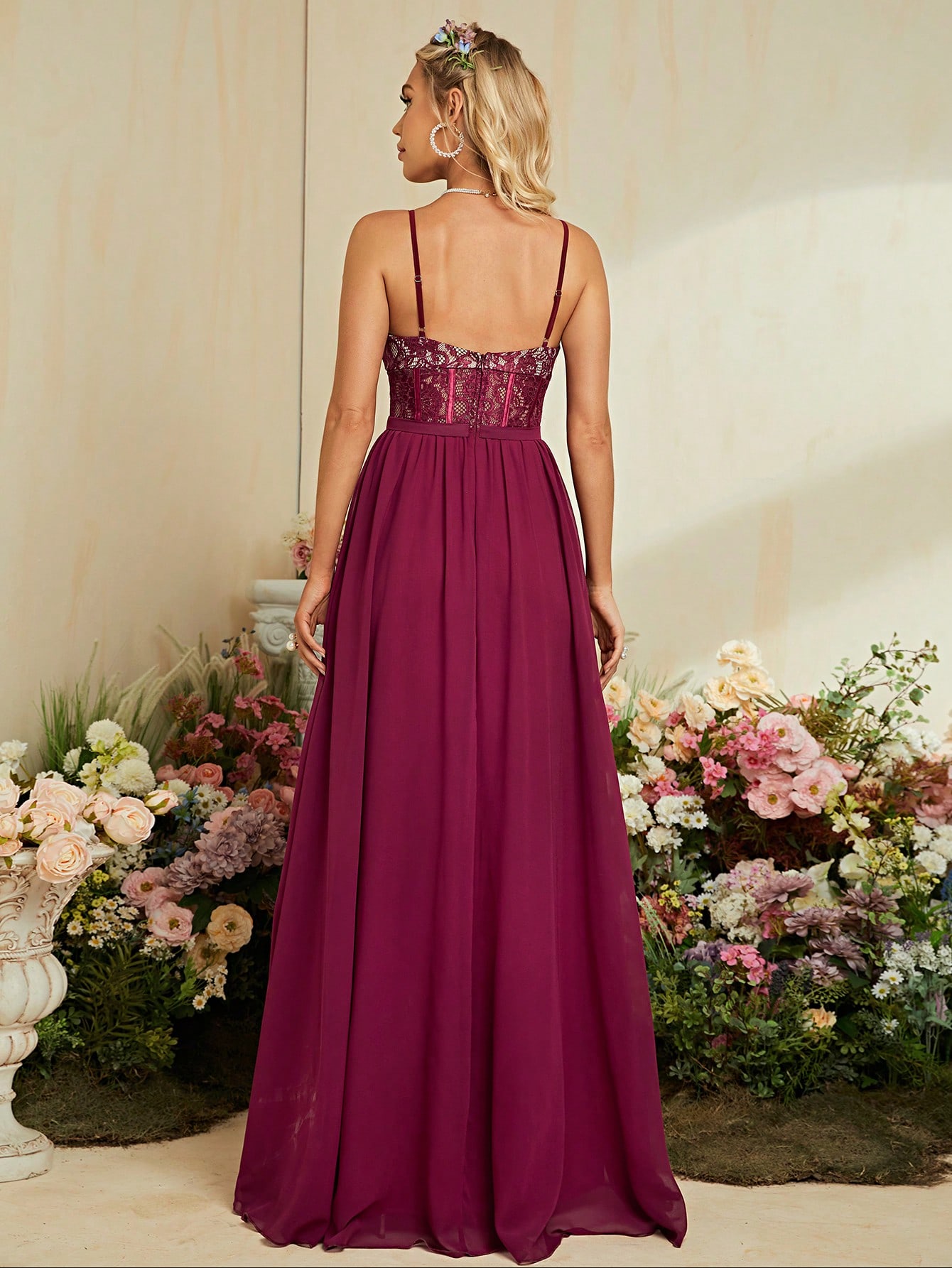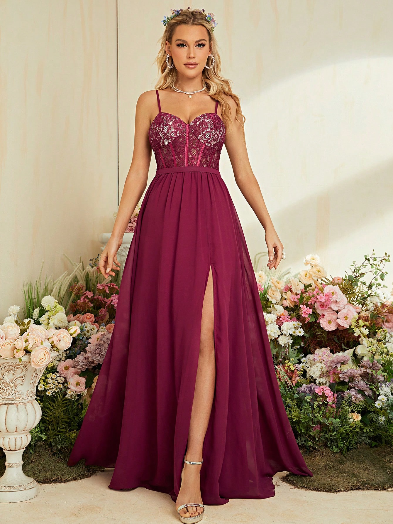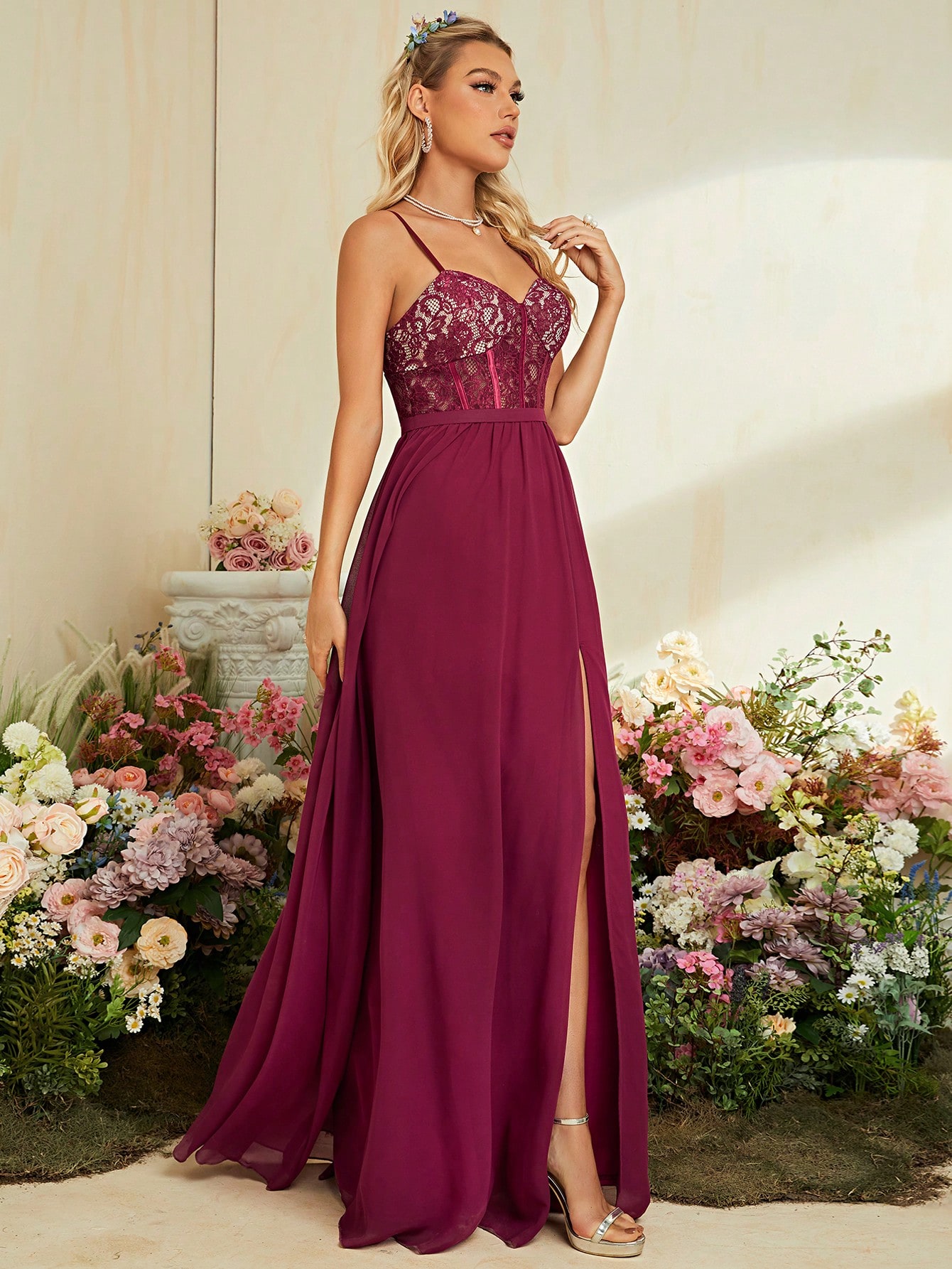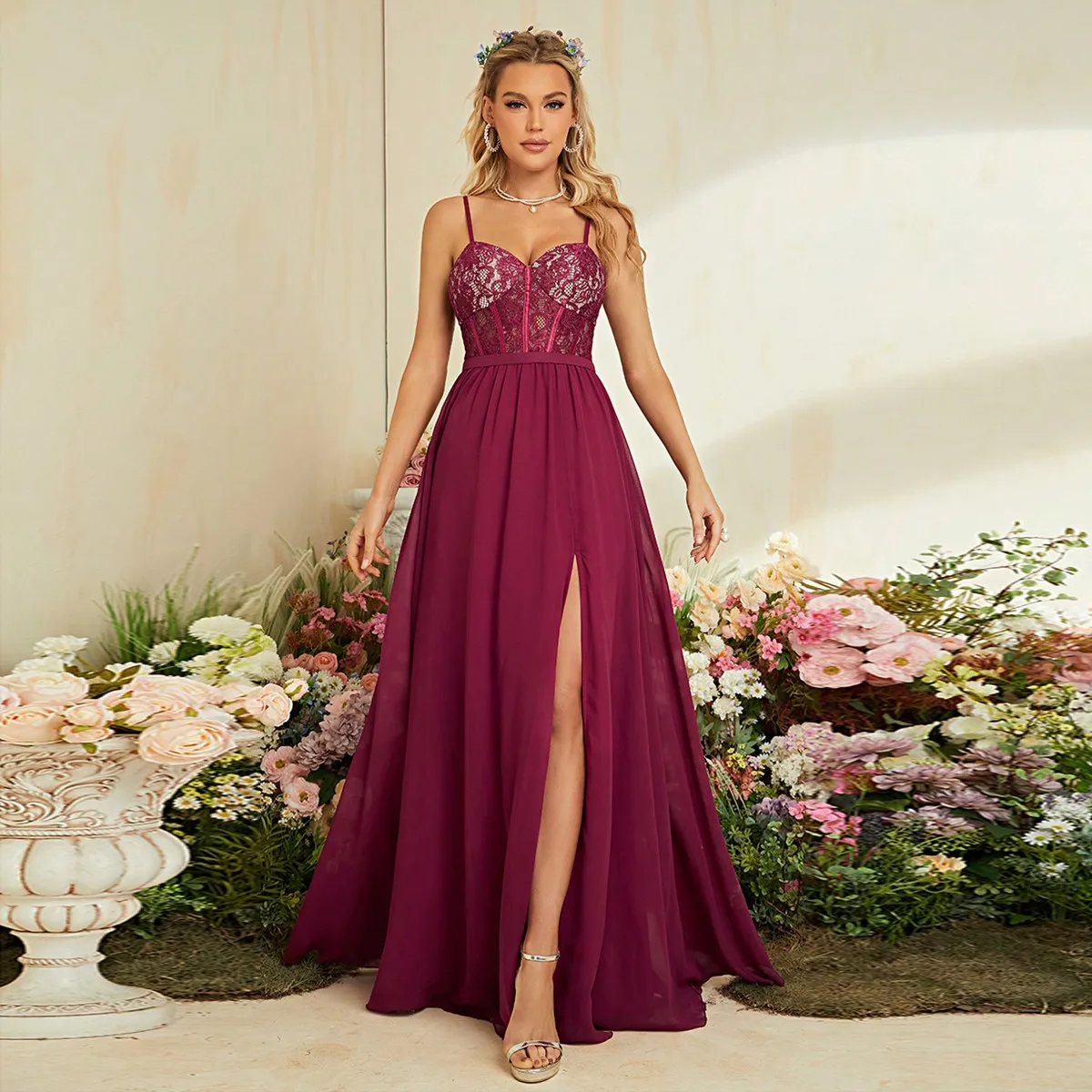 New York’s Fashion Halter sexy lace hem chiffon slit dress Ball dress Party dress Bridesmaid dress