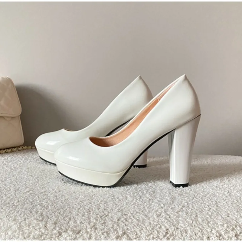 New York’s Fashion High Heels Shoes Women White Wedding Shoes Thick High Heels Fashion Party Pumps Footwear Black Red Big Size 34-42