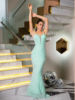 New York’s Fashion Hollow Out Padded Mint Wedding Party Evening Dress Sleeveless Spaghetti Strap Sequins Long Cocktail Prom Dresses Summer