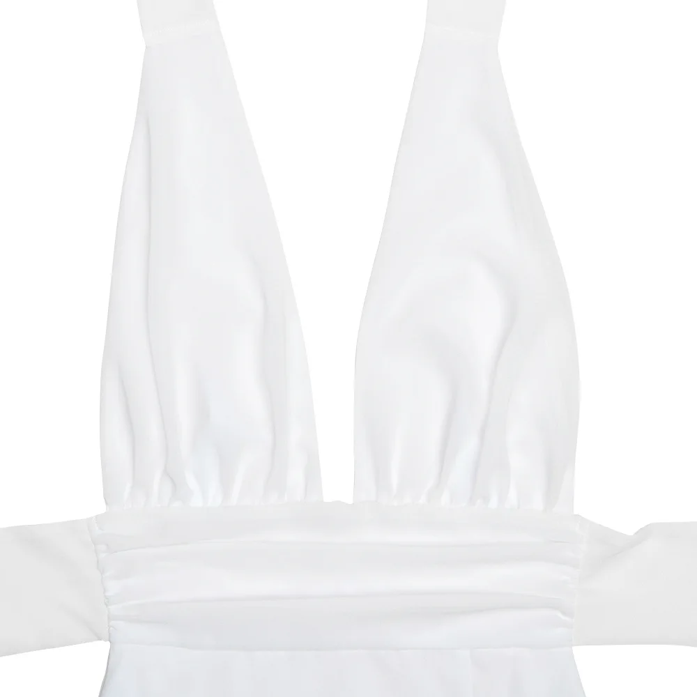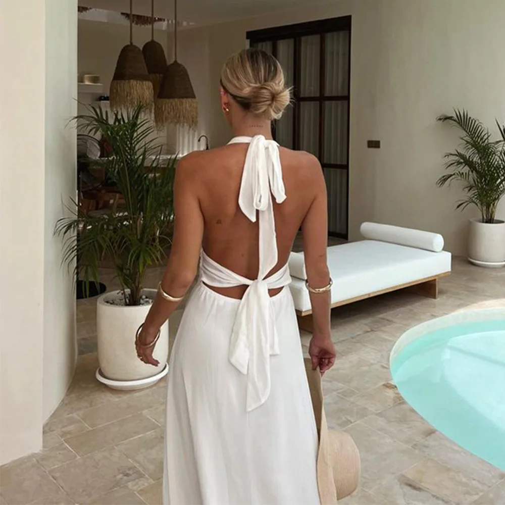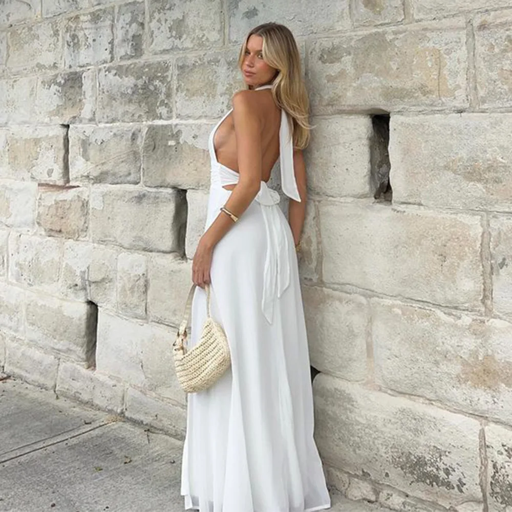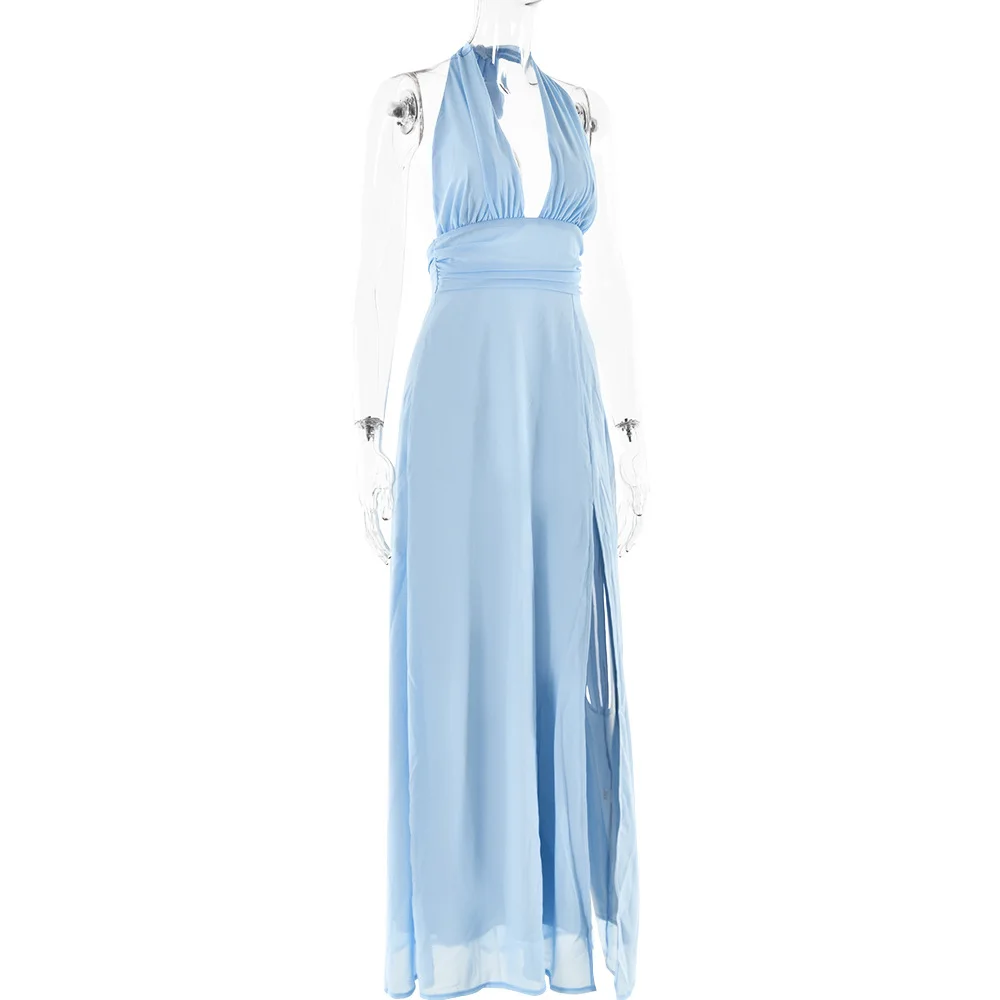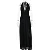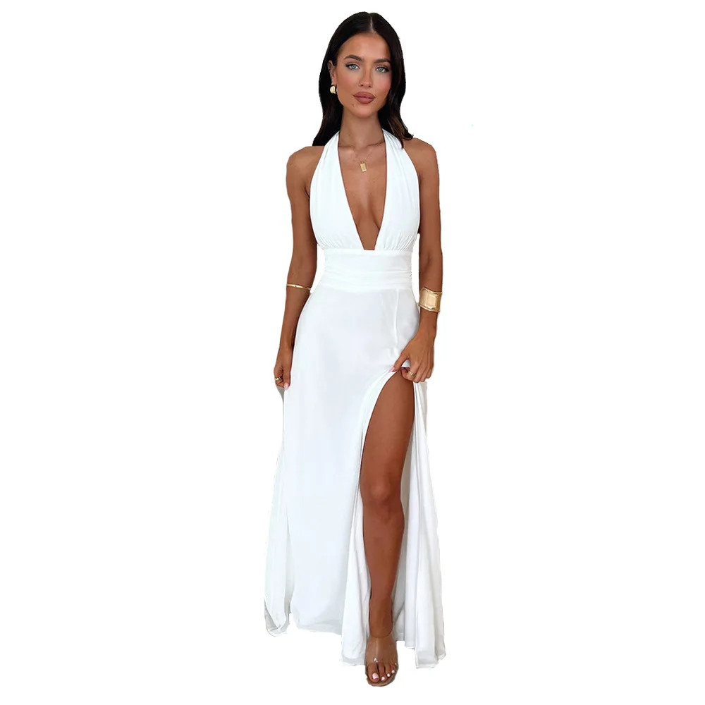 New York’s Fashion Hot And Sexy Evening Party Dress Women’s Clothing Solid Color Neck-Mounted V-neck Dress For Women Backless Slit Dress