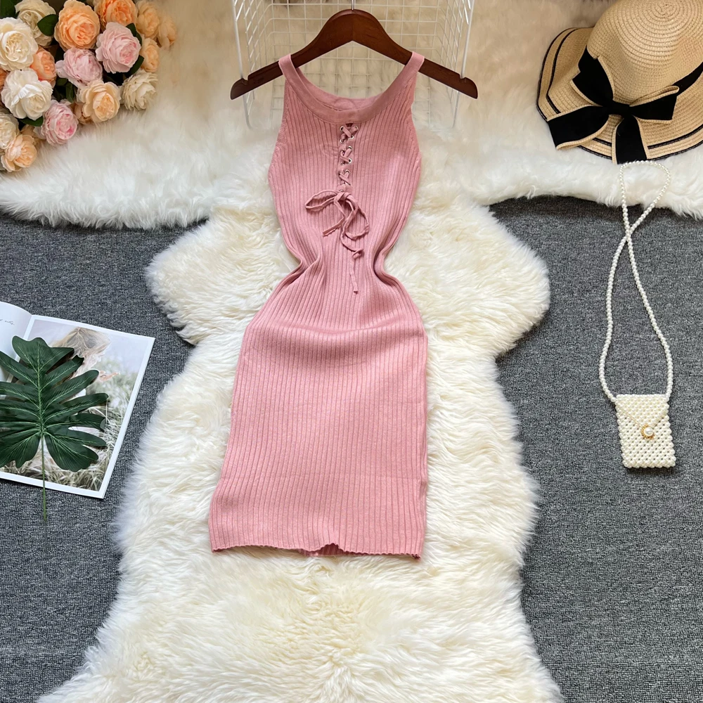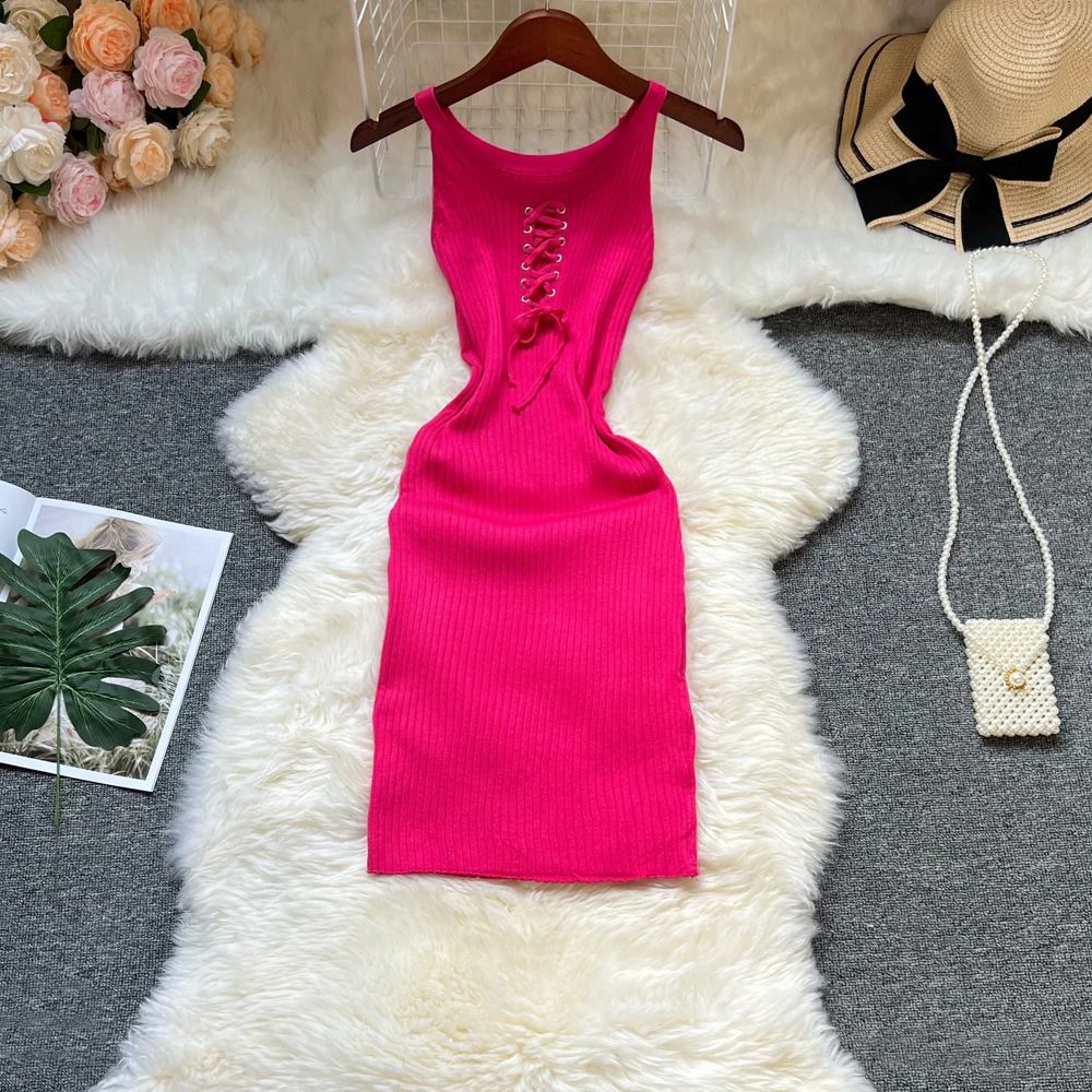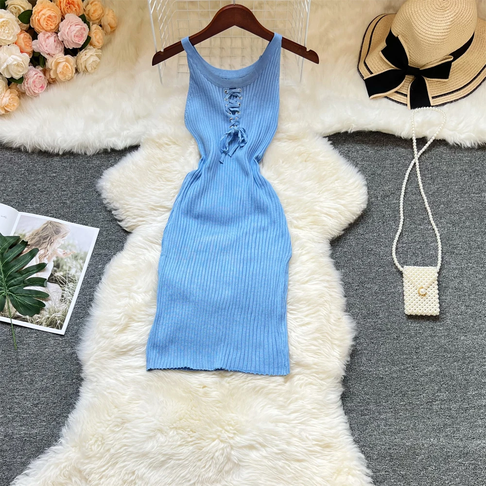 New York’s Fashion Hot Sexy Bandage Knitted Mini Dress Summer Slim Elastic Bodycon Women Dress Streetwear Sexy Package Hips Vestidos
