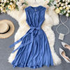New York’s Fashion Korean Fashion Women Dress 2025 Summer Casual Solid Sleeveless Sash Bandage Black Dress Vintage Elegant Lady Vestidos