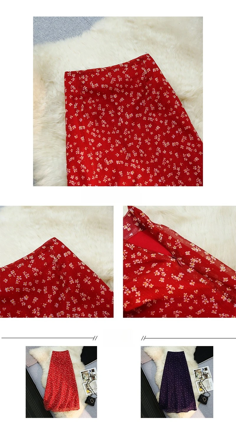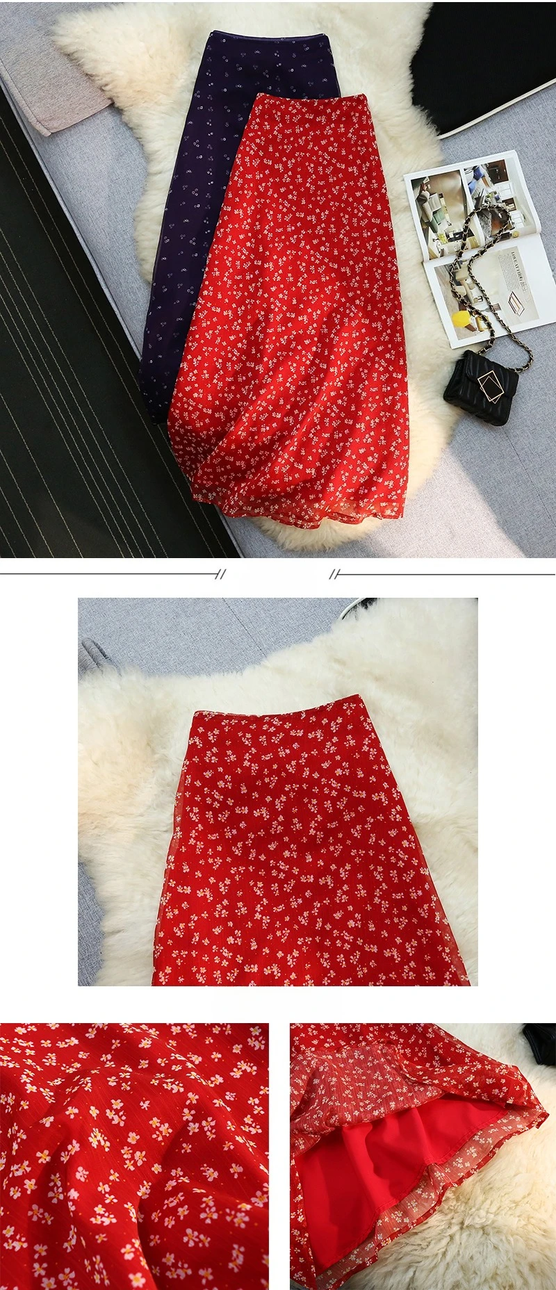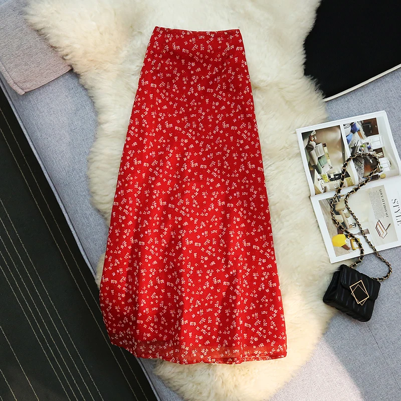 New York’s Fashion Korean Retro Floral Midi Skirts for Women 2025 New Spring Summer Elegant High Waist Casual Mid Length Women’s Skirts