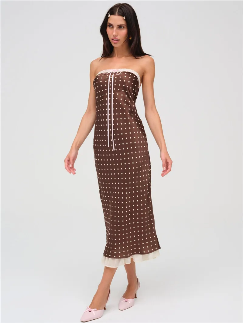 New York’s Fashion Lace Strapless Backless Sexy Midi Dress For Women Fashion Off-shoulder Sleeveless Bodycon Polka Dot Dress Elegant