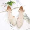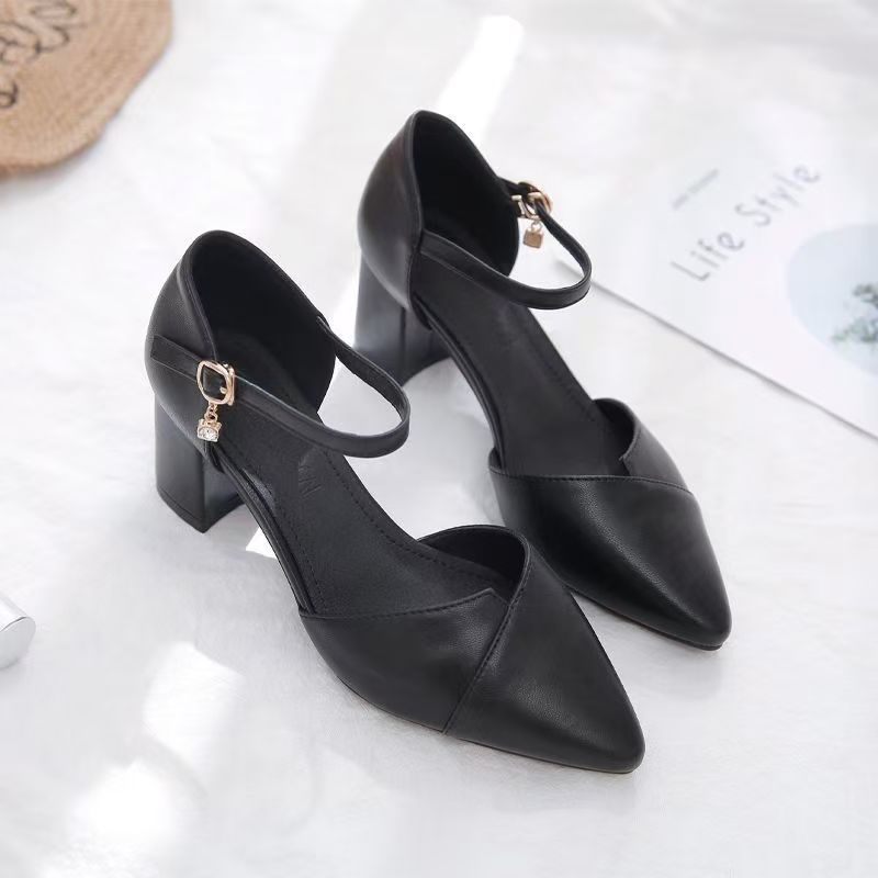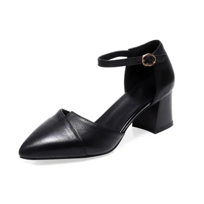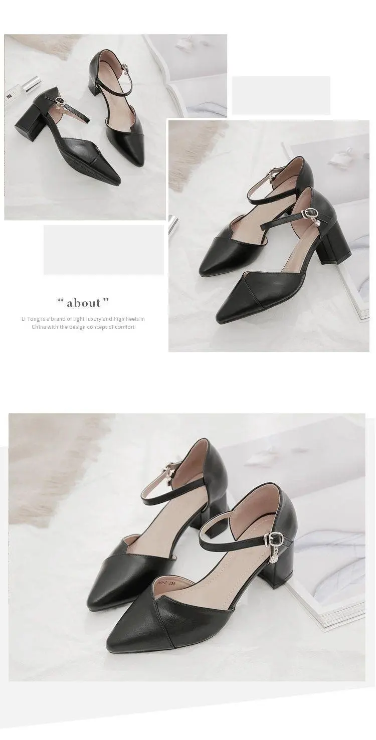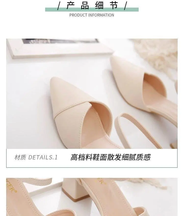 New York’s Fashion Ladies Elegant Beige Pointed Toe Thin Strap Cross Buckle Mid Heel Sandals Daily Office Shoes