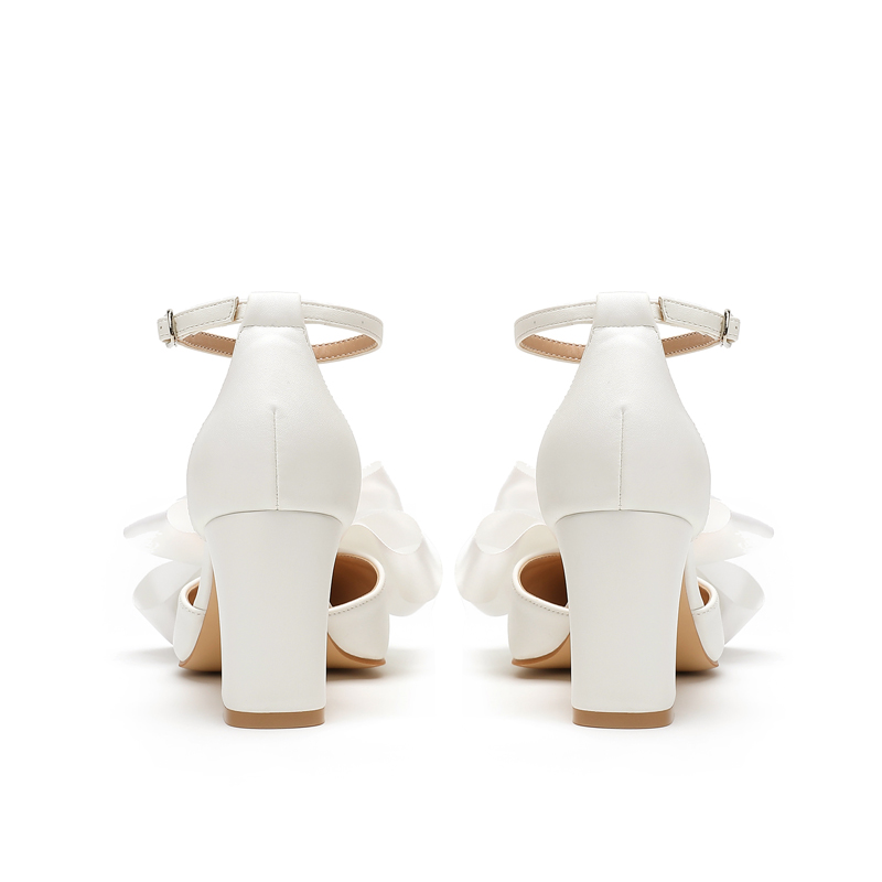 New York’s Fashion Leather Solid Snow White Wedding Banquet Ball Thick Heel Pointed Hollow High Quality BowKnot High Heel Sexy Women’s Shoes