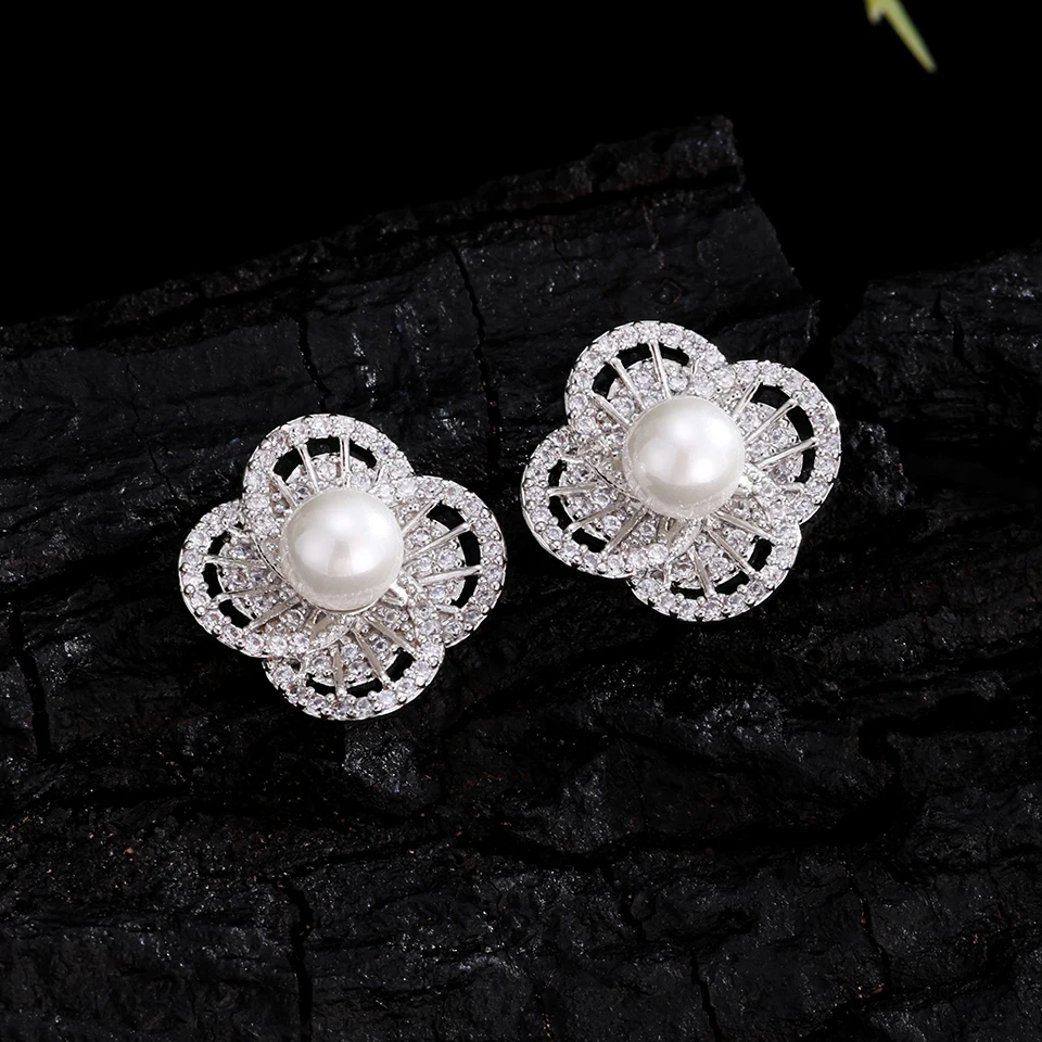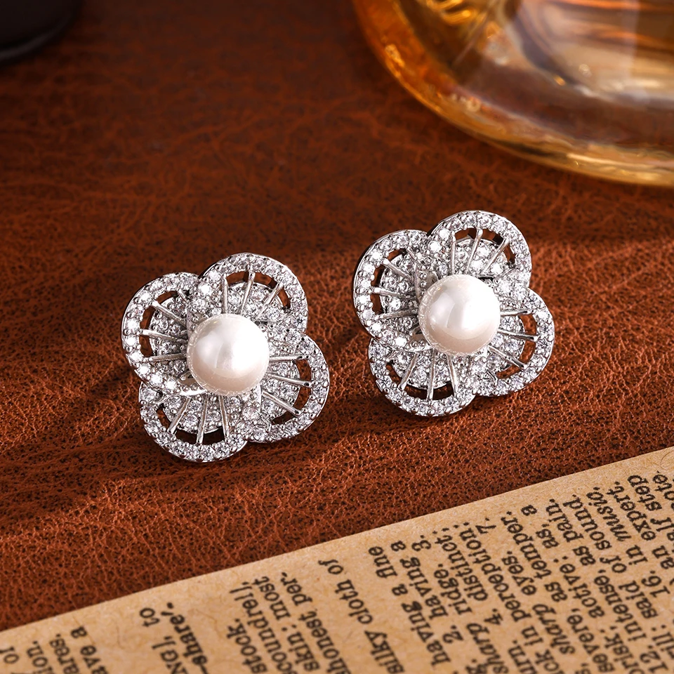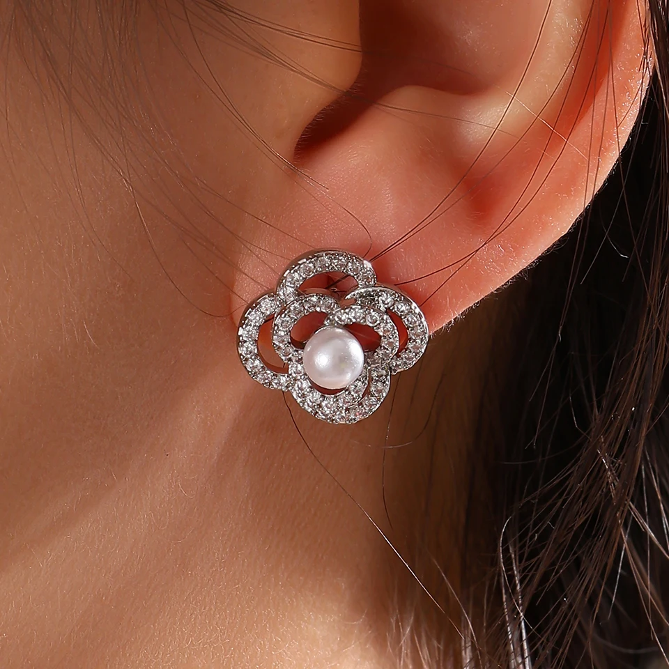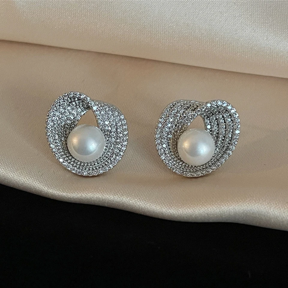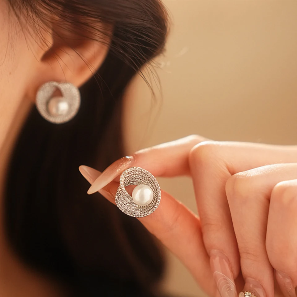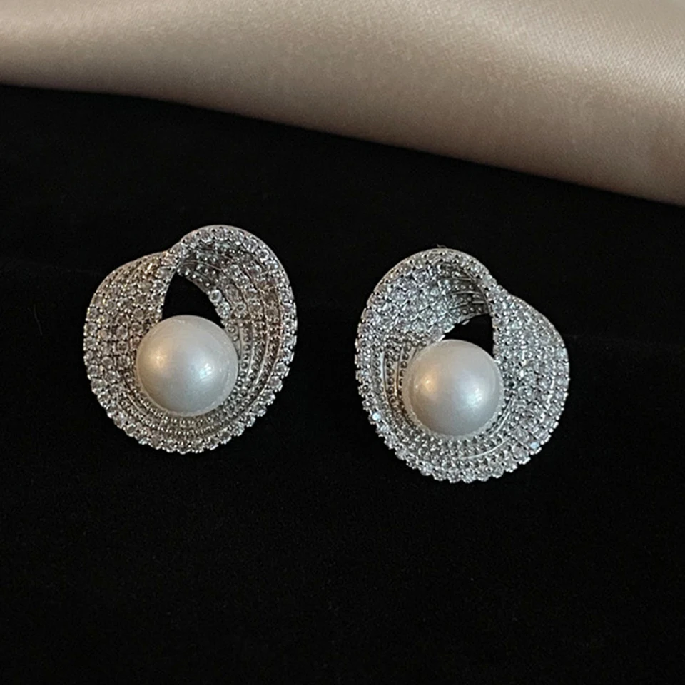 New York’s Fashion Luxury AAA Zircon Round Pearl Earrings for Women Irregular Stud Earring Temperament Wedding Party Jewelry