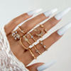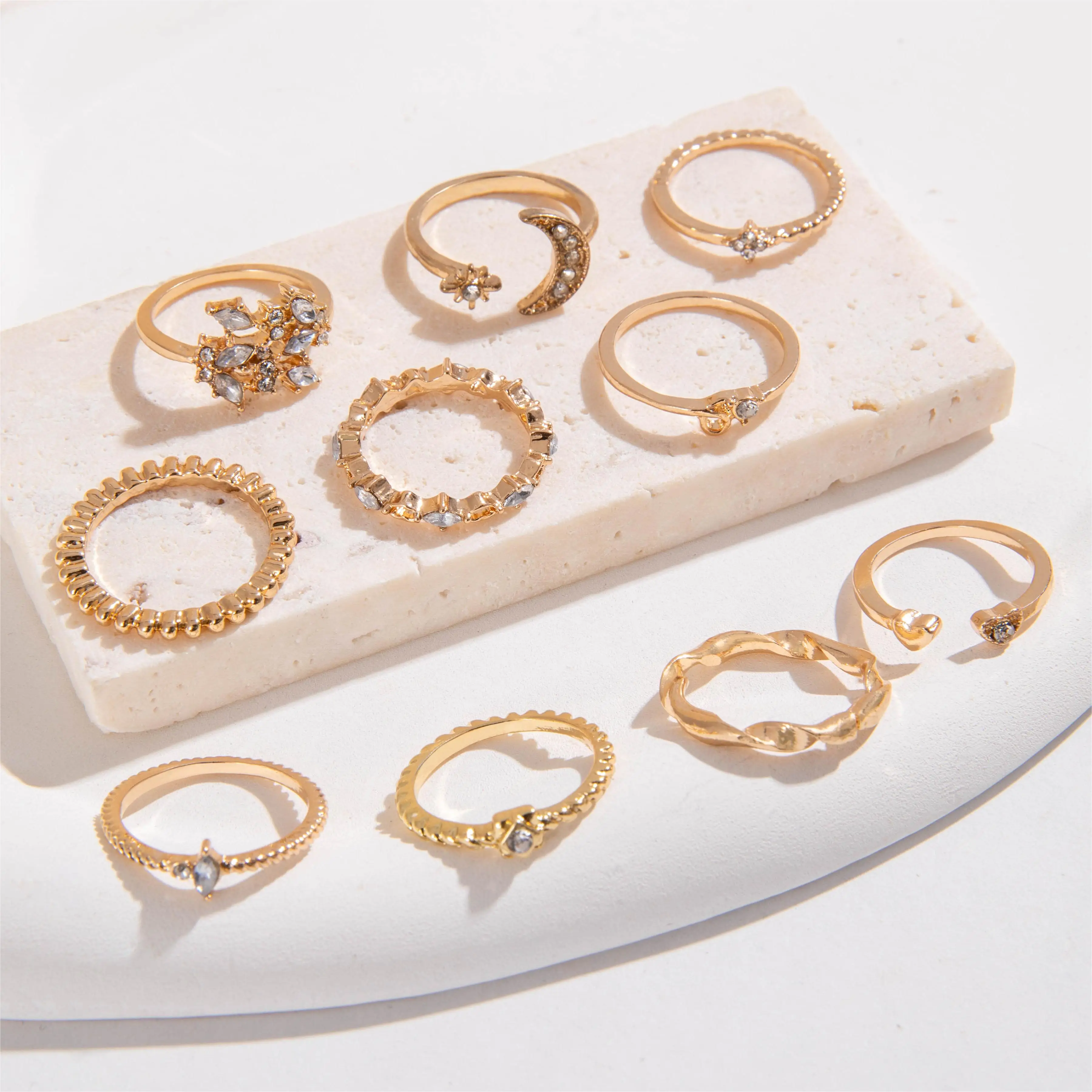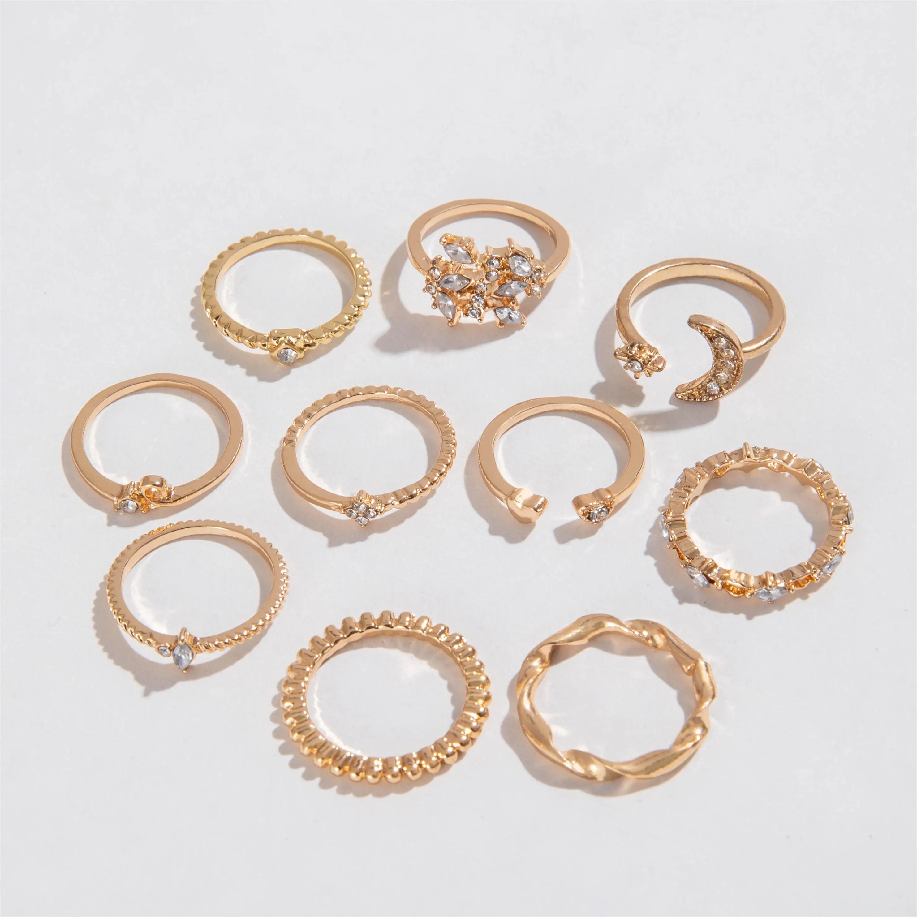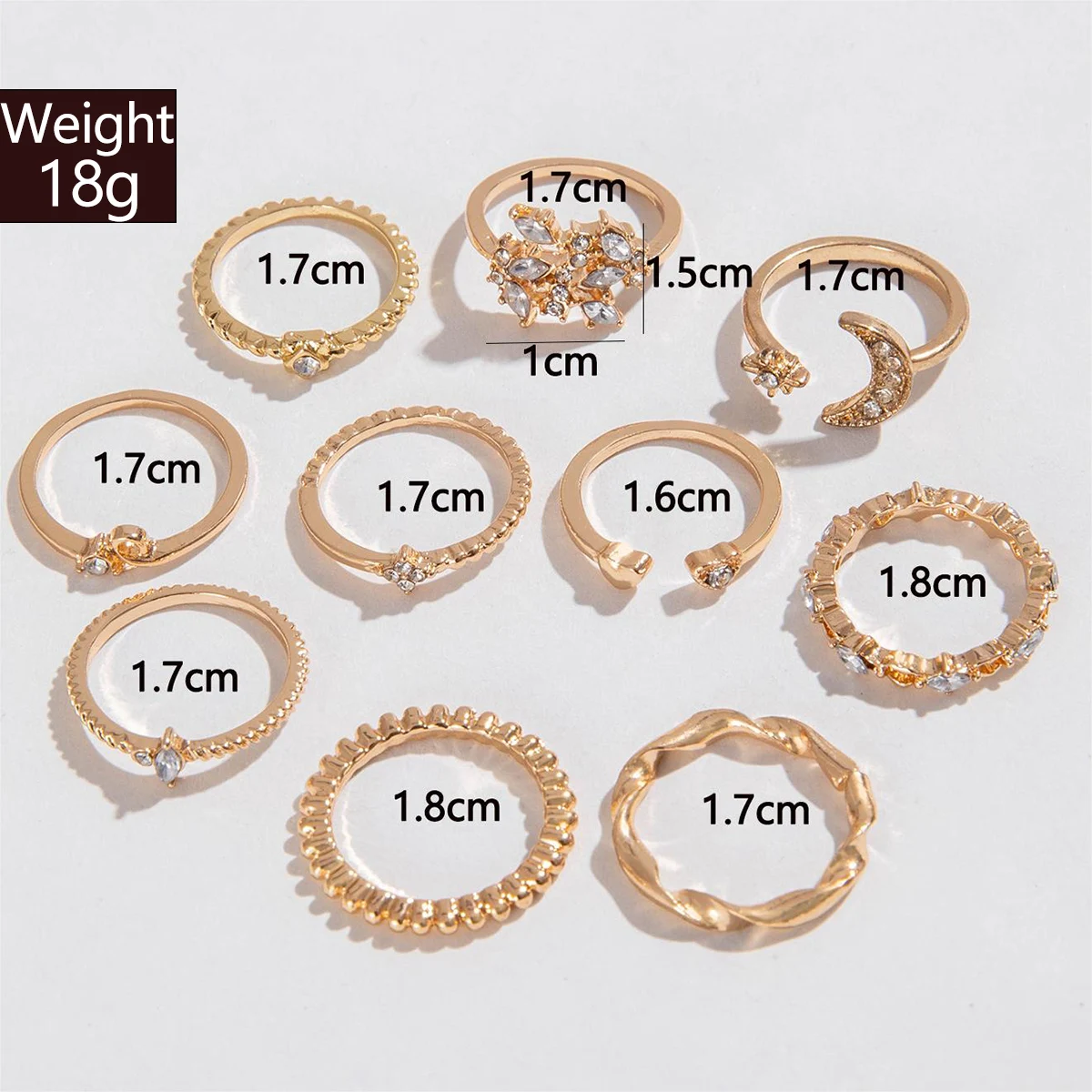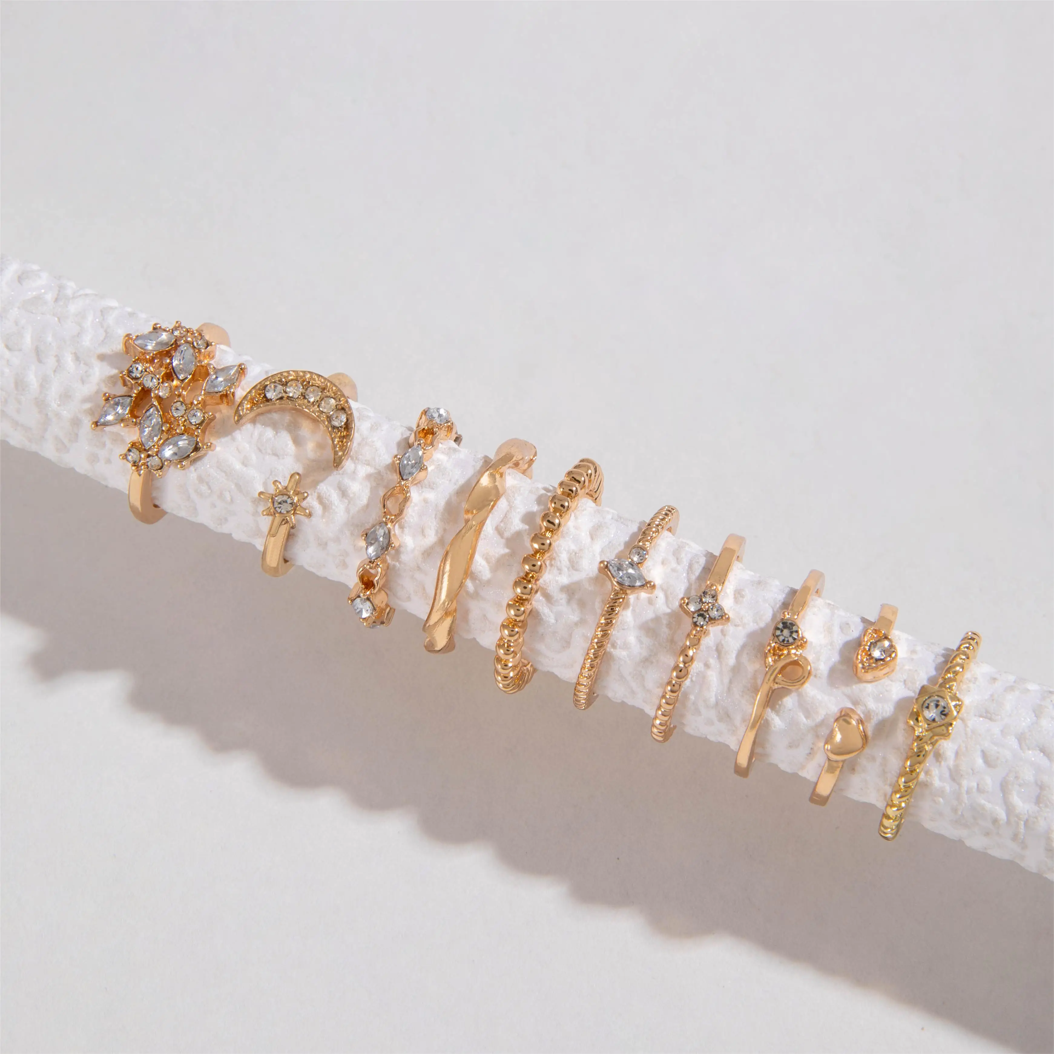 New York’s Fashion Luxury Crystal StoneMoon Heart Joint Rings for Women Trendy Gold Color Lrregular Rings Set Jewelry Party 10pcs/sets