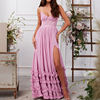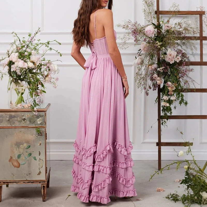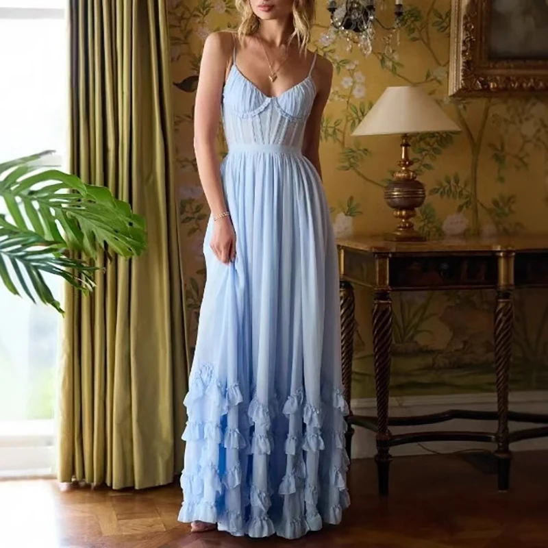 New York’s Fashion Luxury Sexy Strapless Ruffle Pleated Maxi Dress Women Spring Solid High Waist Slit Long Dress Summer Backless Tie-up Sling Dress