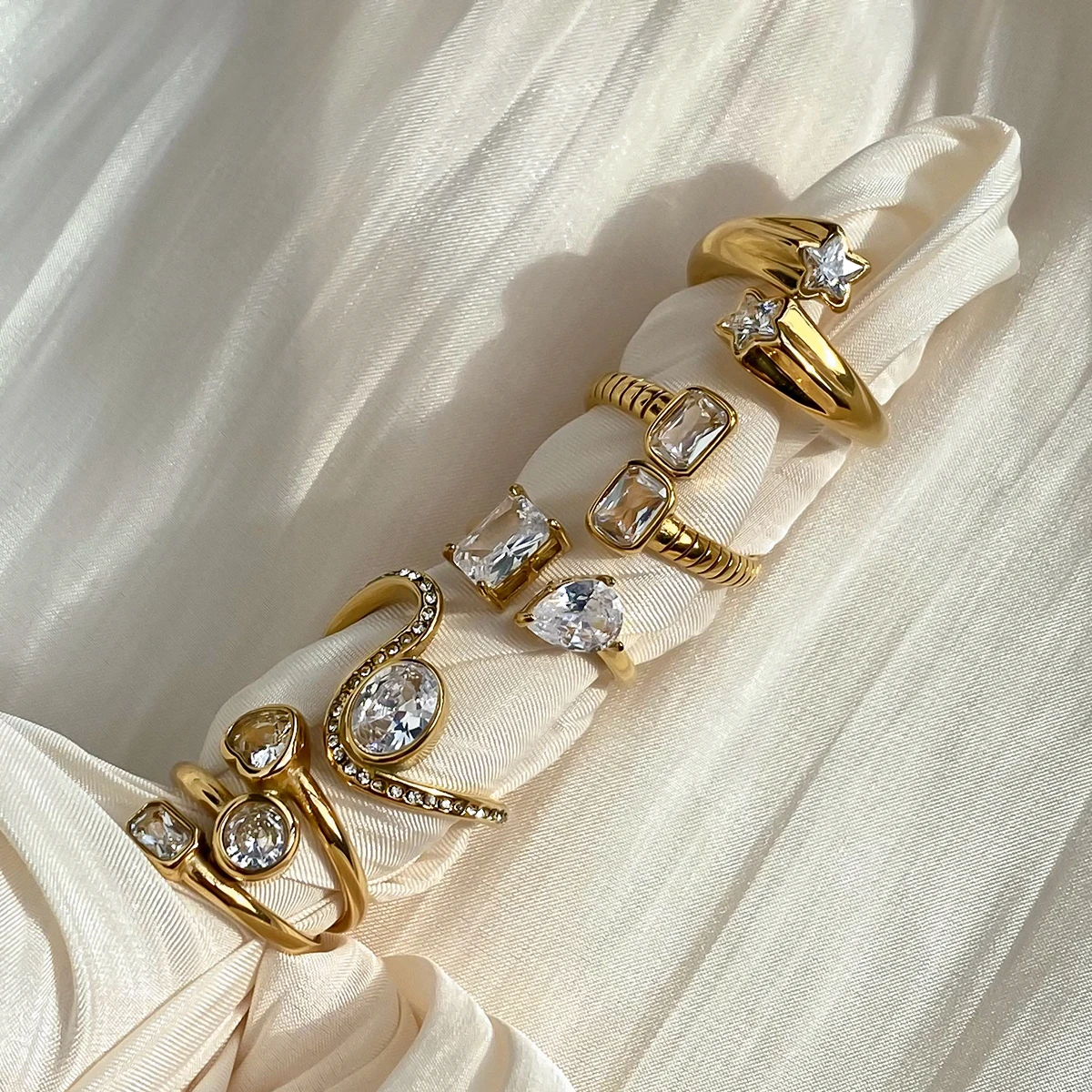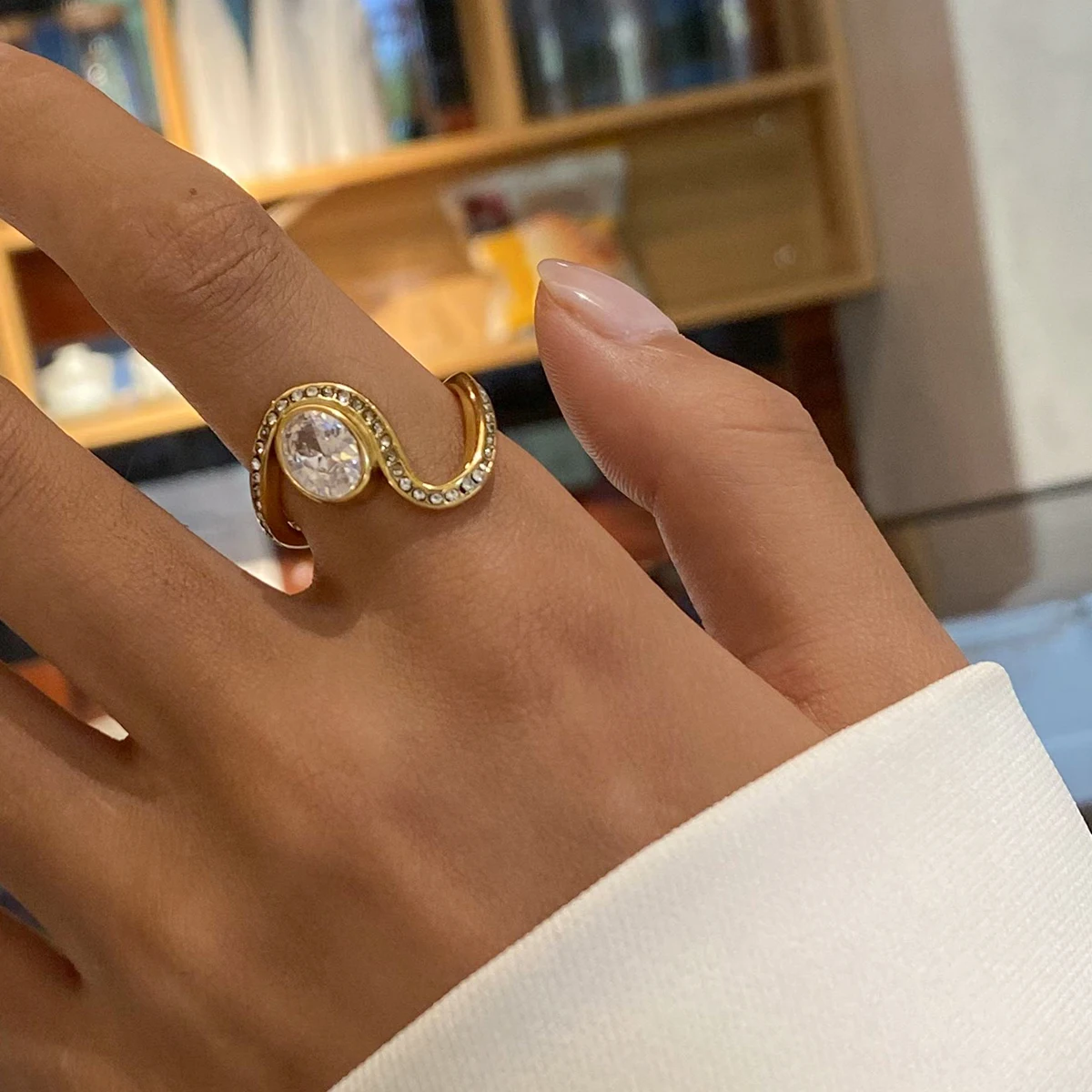 New York’s Fashion Luxury Shiny AAA Cubic Zirconia Stainless Steel Geometric Open-end Ring High Quality Texured Jewelry Accessories for Wome