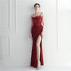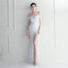 New York’s Fashion Off Shoulder Black Feather Long Sexy Slit Sequin Dress Floor Length Evening Party Maxi Celebrity Dress
