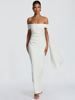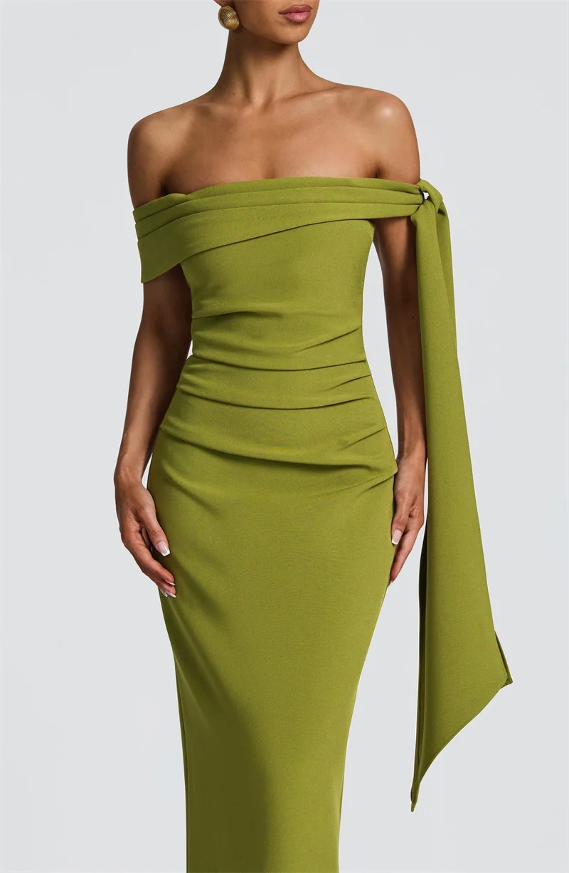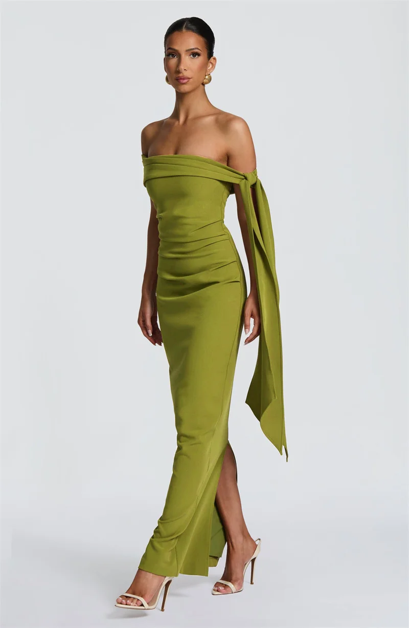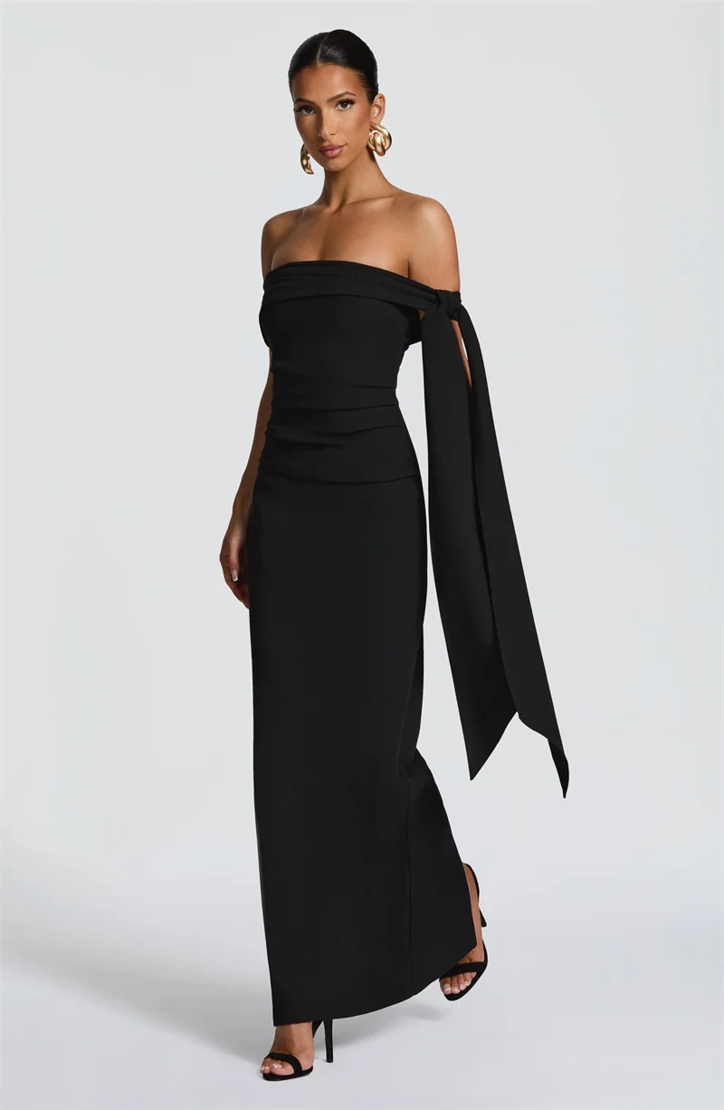 New York’s Fashion Off-shoulder Strapless Sexy Maxi Dress Women Elegant Sleeveless Backless Draped Ruched Bodycon Club Party Long Dresses