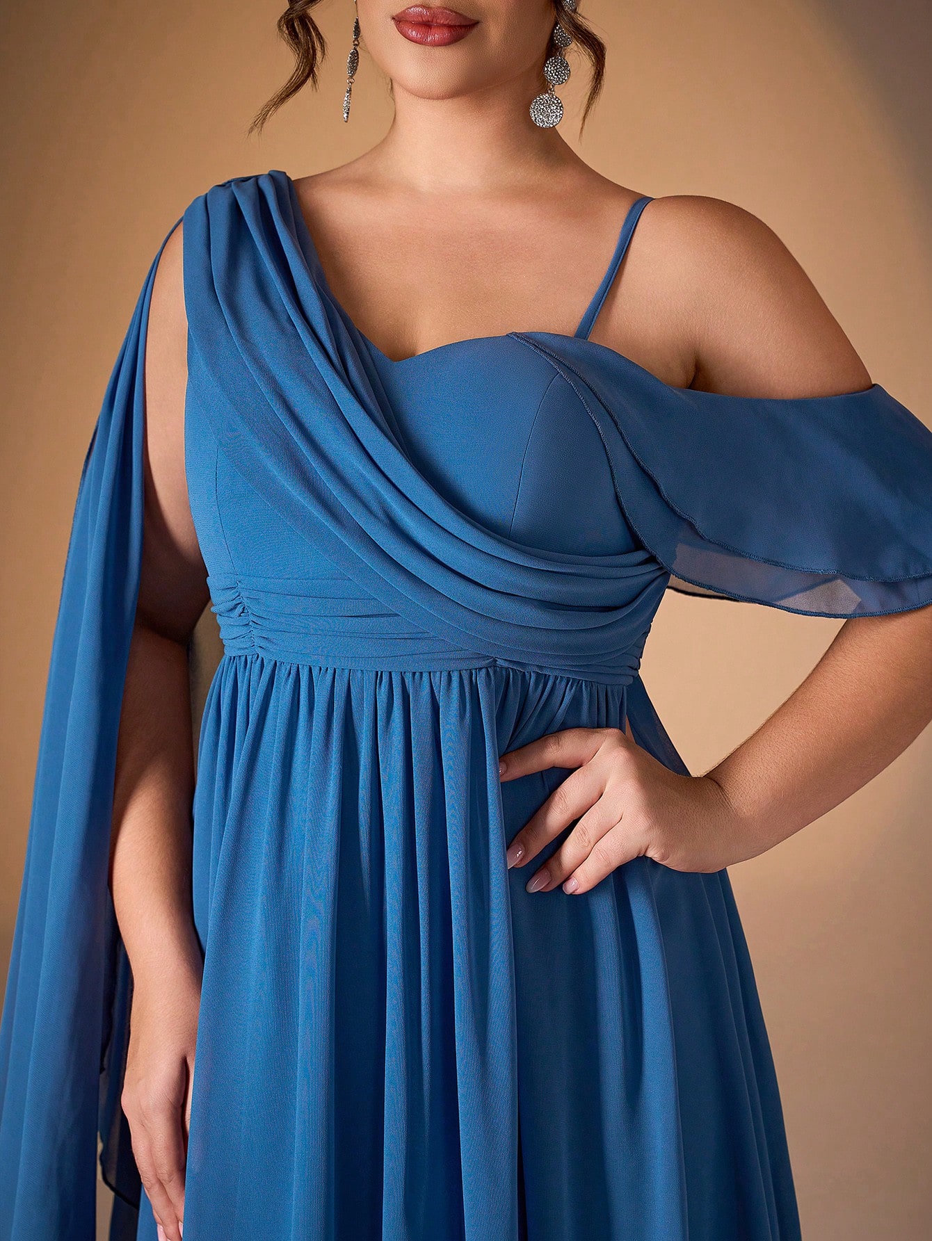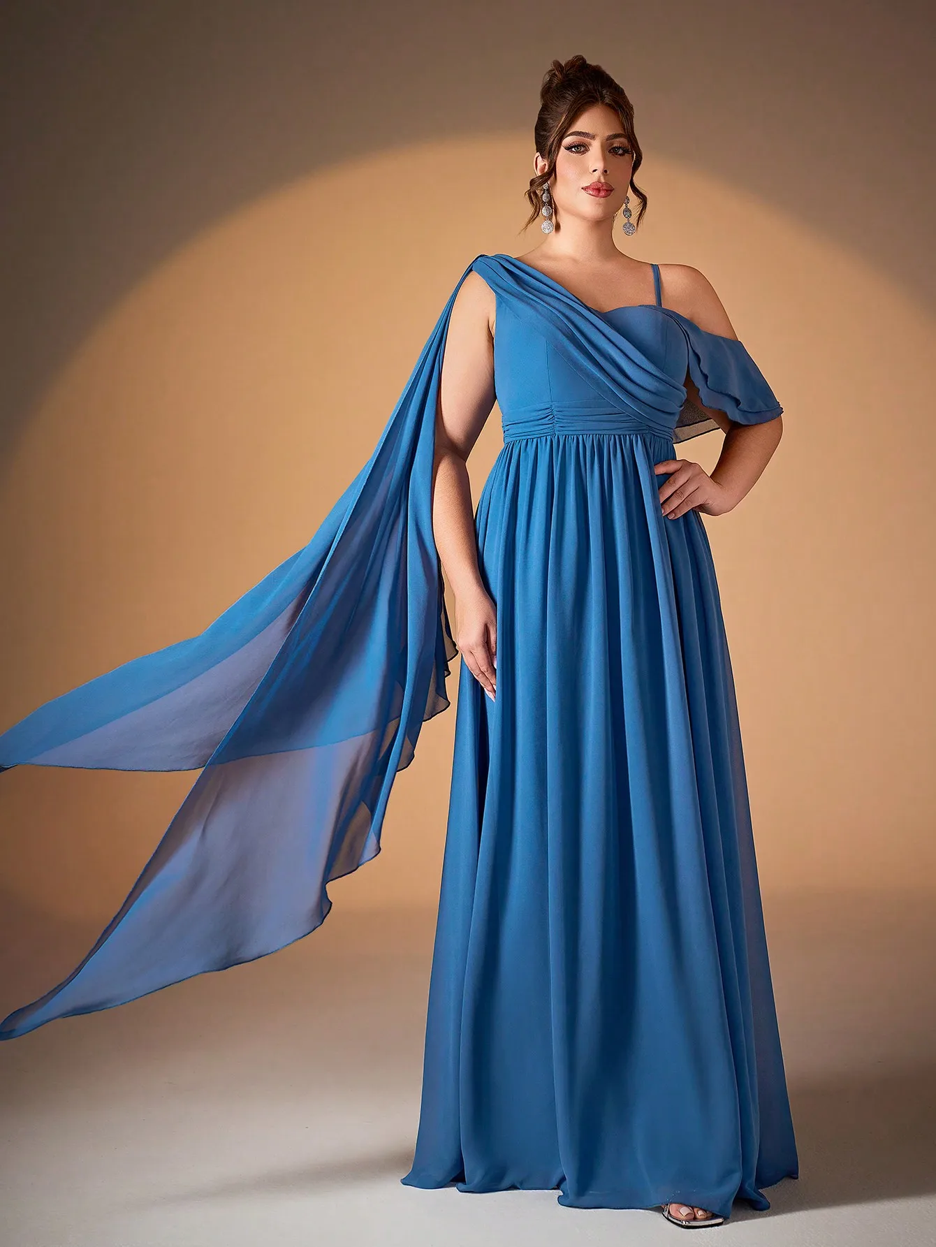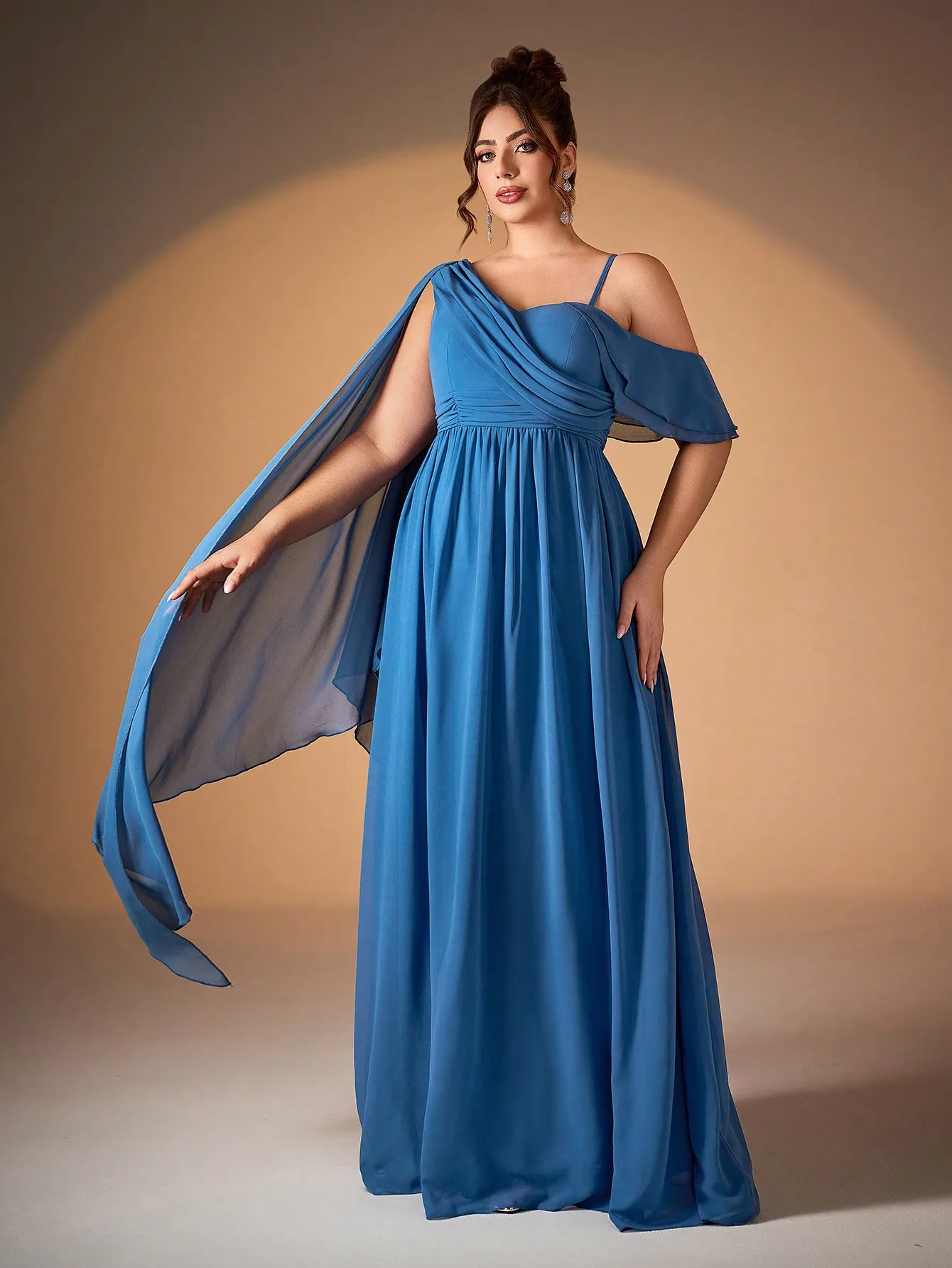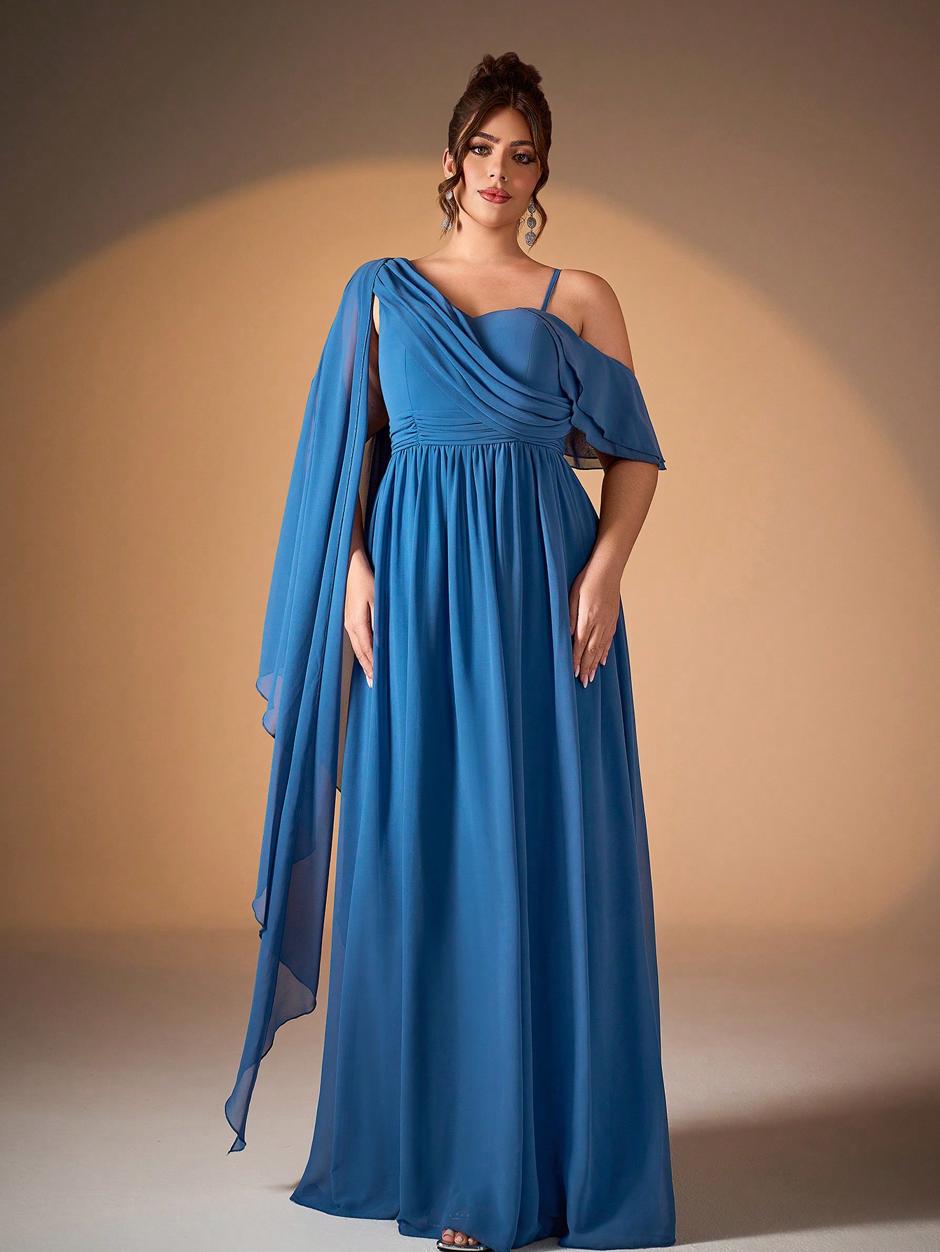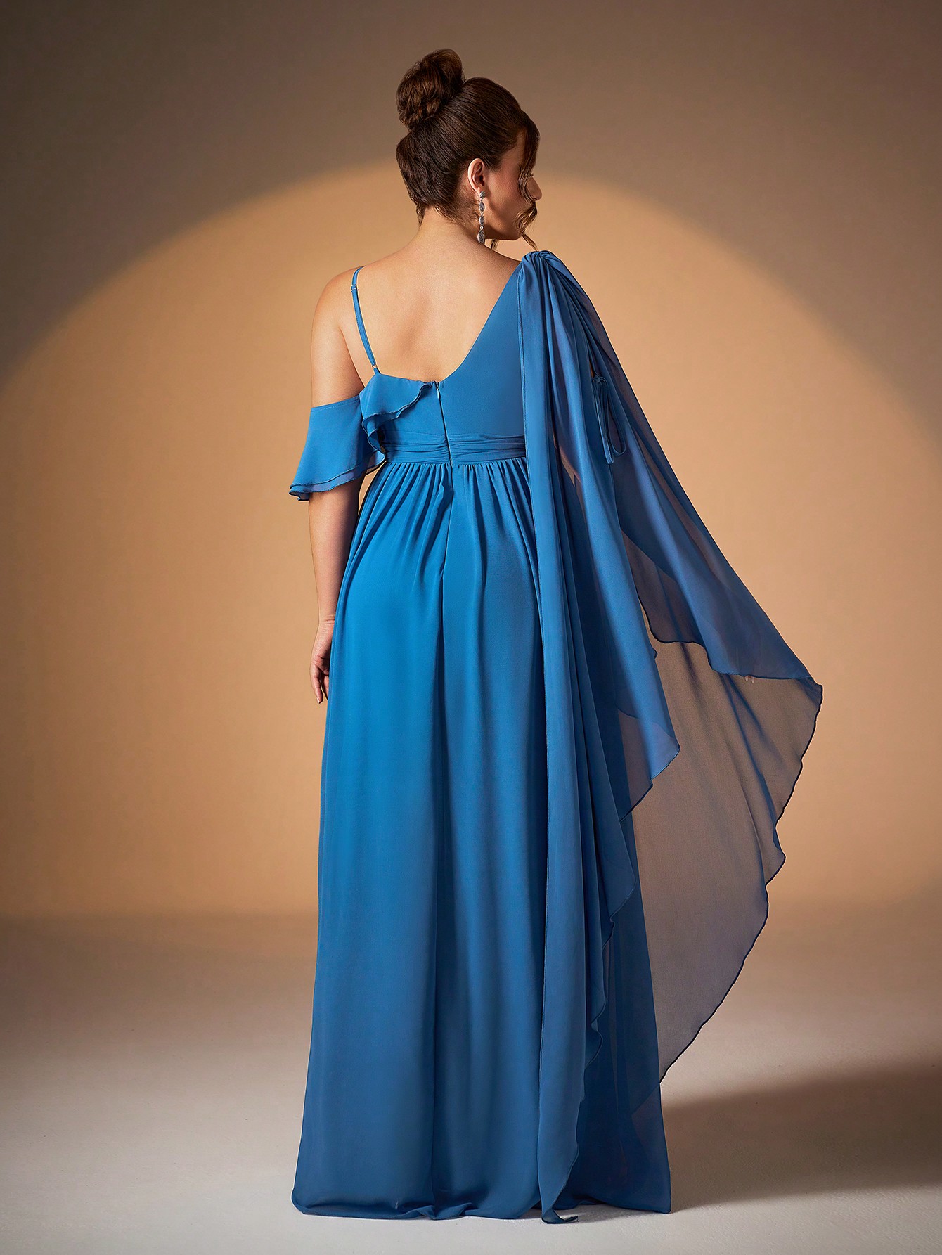 New York’s Fashion off-the-shoulder strappy pearl chiffon lotus leaf single-shoulder fluttered high-end evening dress