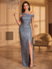 New York’s Fashion One Shoulder Sleeveless Glitter Sequin High Slit Draped Formal Party Evening Dress