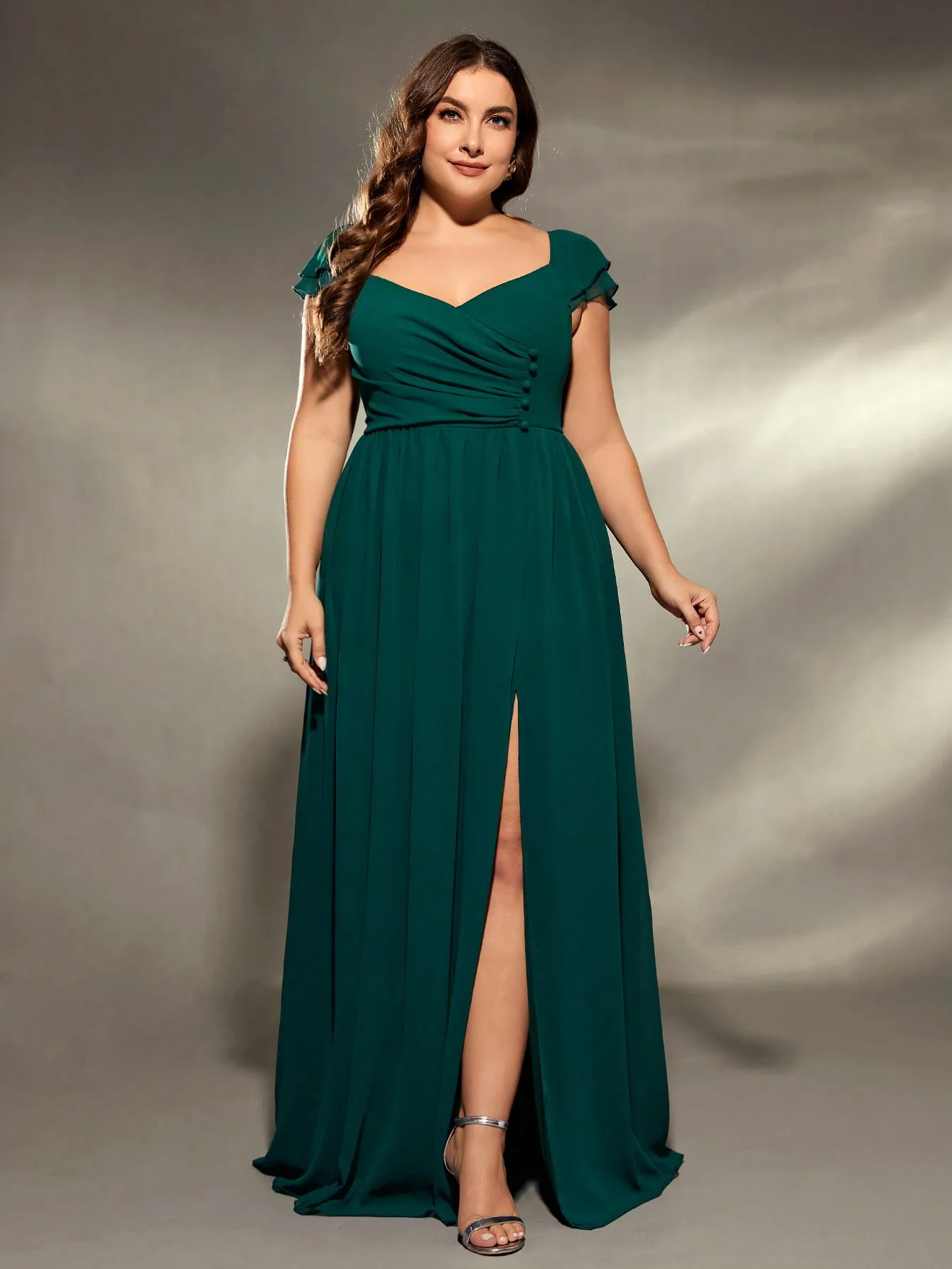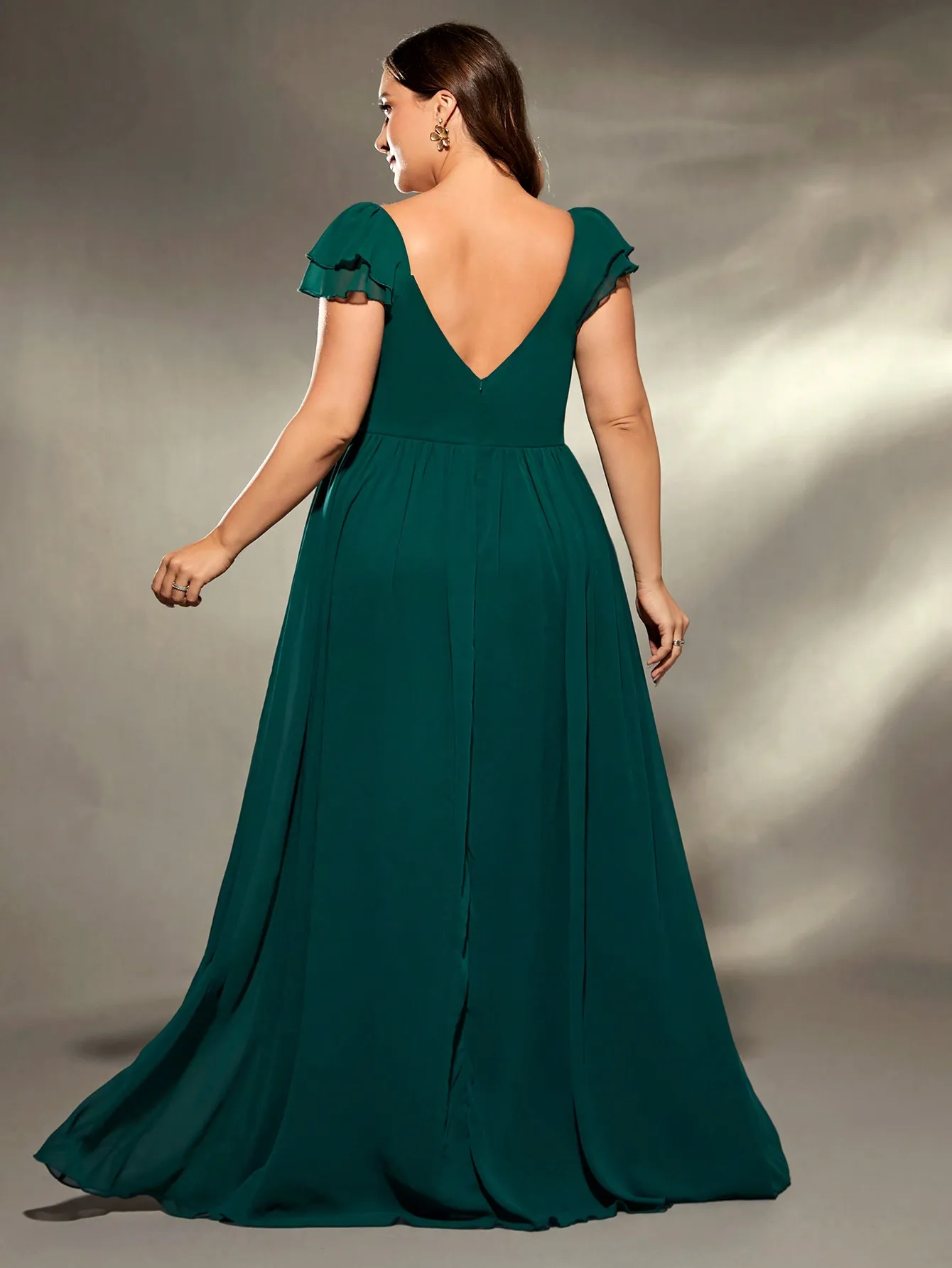 New York’s Fashion plus size V-neck irregular folding double layer lotus sleeve chiffon slit skirt Evening gown Ball dress Party dress